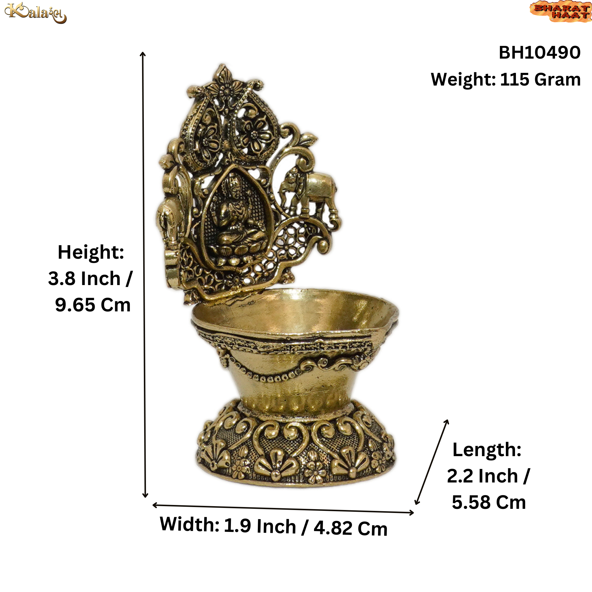 Made from high-quality solid brass, this diya features a fine antique finish and intricate detailing, making it a durable and aesthetically pleasing piece. Measuring 2.2 x 1.9 x 3.8 inches and weighing 115 grams, it is perfect for lighting during daily rituals or festive occasions such as Diwali, Lakshmi Puja, or Navratri.