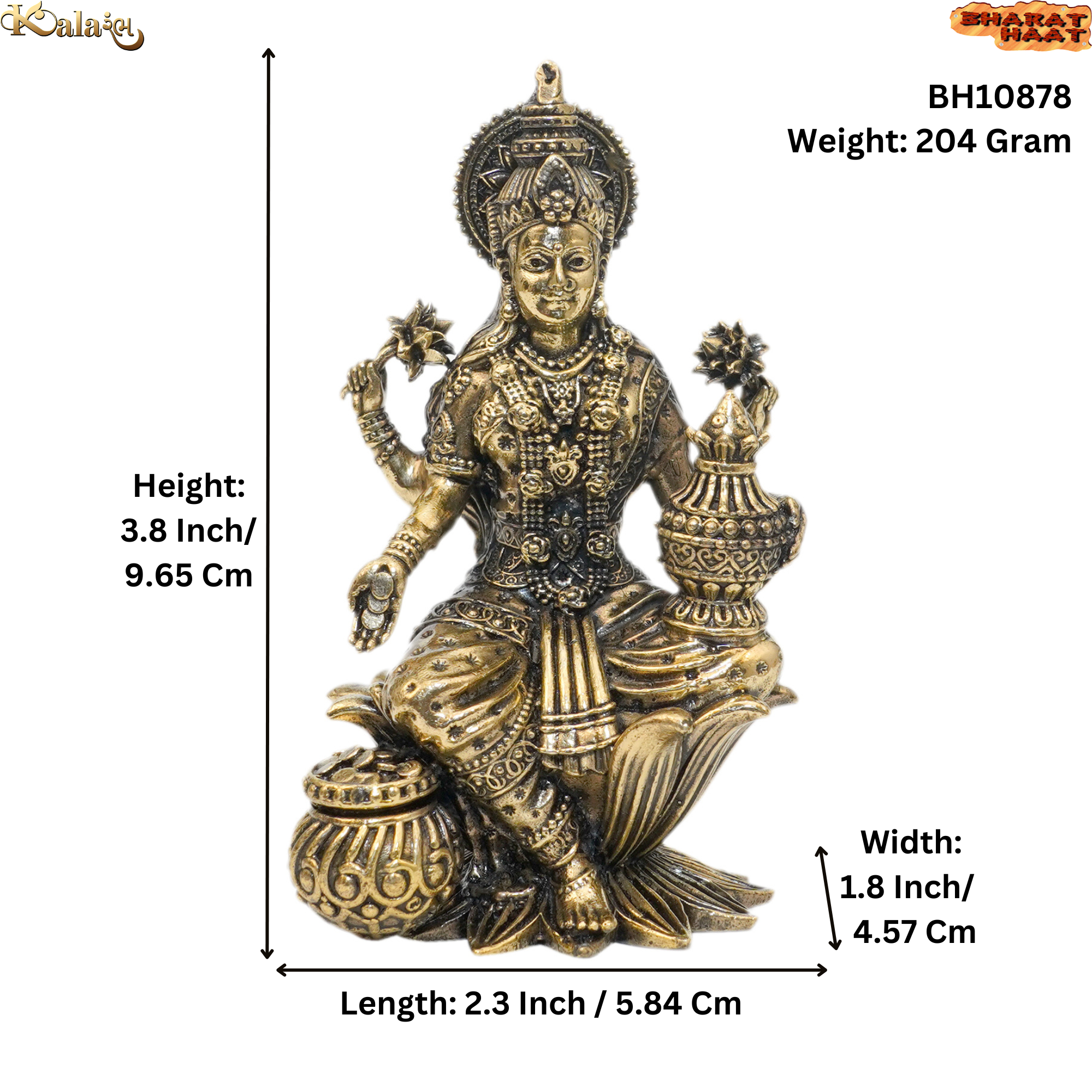 Elegant Brass Lakshmi Idol handcrafted with fine detailing, representing the goddess of wealth and prosperity. Dimensions: 2.3 x 1.8 x 3.8 Inch | Weight: 204g. Perfect for your pooja room, home décor, or as a spiritual gift.