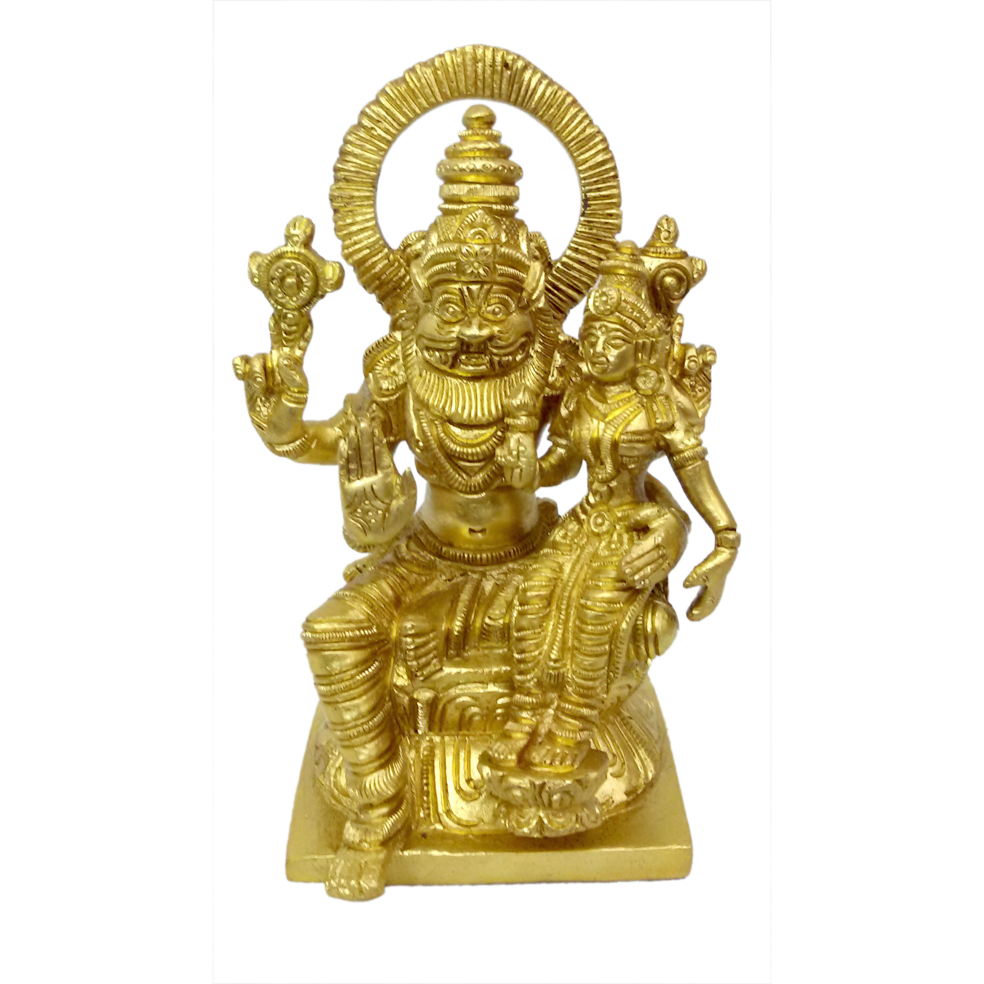 Design: Handcrafted in the form of Lord Narasimha with Goddess Lakshmi, symbolizing protection, prosperity, and spiritual strength, perfect for pooja rooms or temple décor