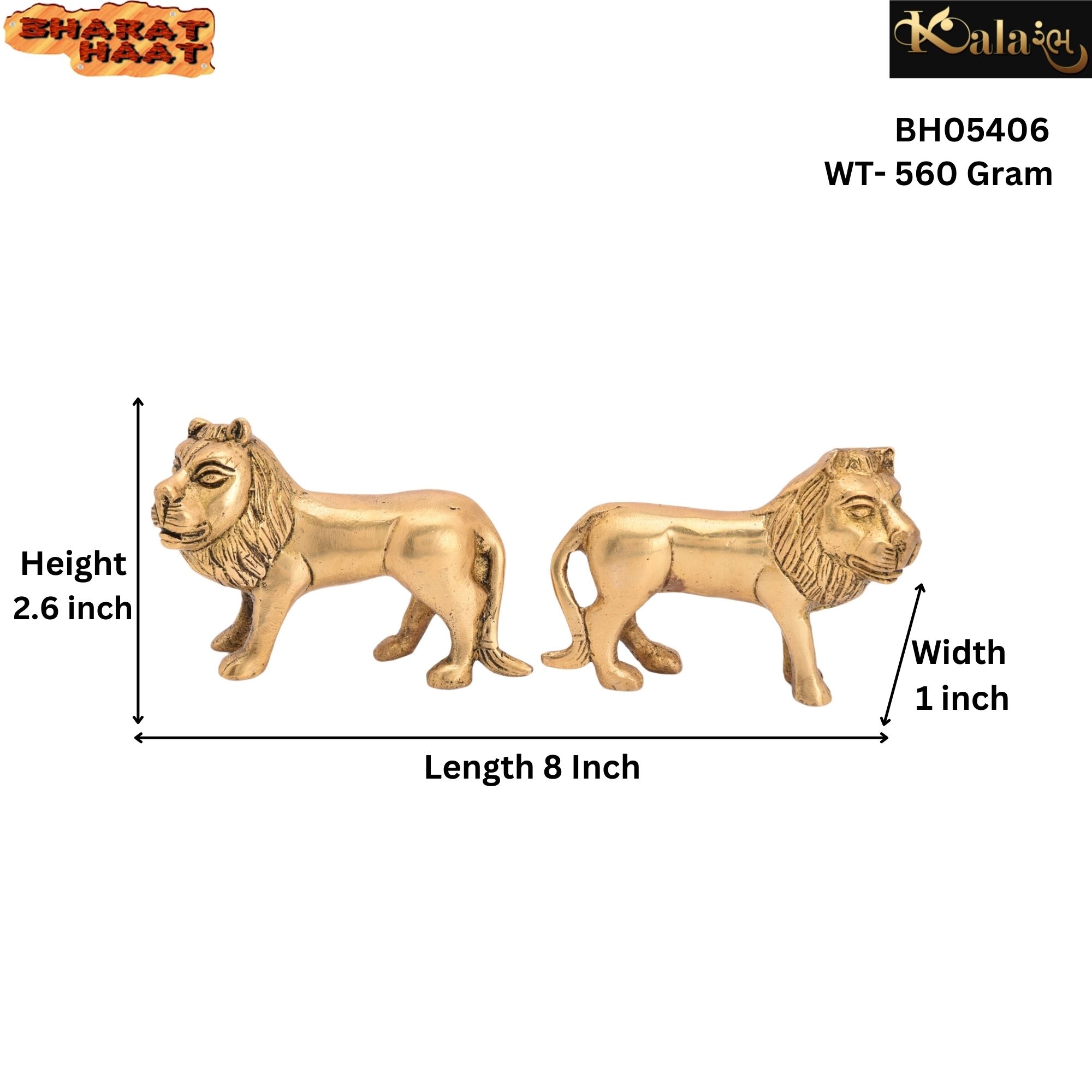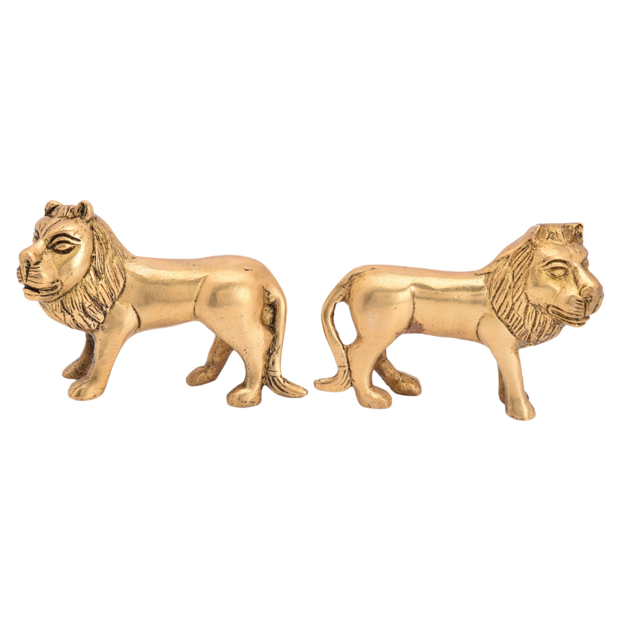Elegant Brass Lion Pair crafted with precision, symbolizing strength, courage, and leadership. Ideal decorative piece for living rooms, offices, and showcases.