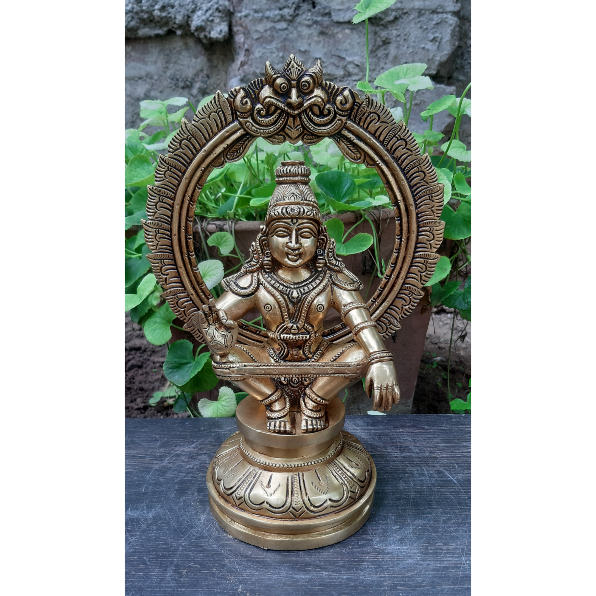 Brass Ayyappa Frame with dimensions 7.3 x 4.2 x 10 Inch and weight 2.91 Kg. A beautifully carved brass frame featuring Lord Ayyappa, perfect for puja rooms and home décor.