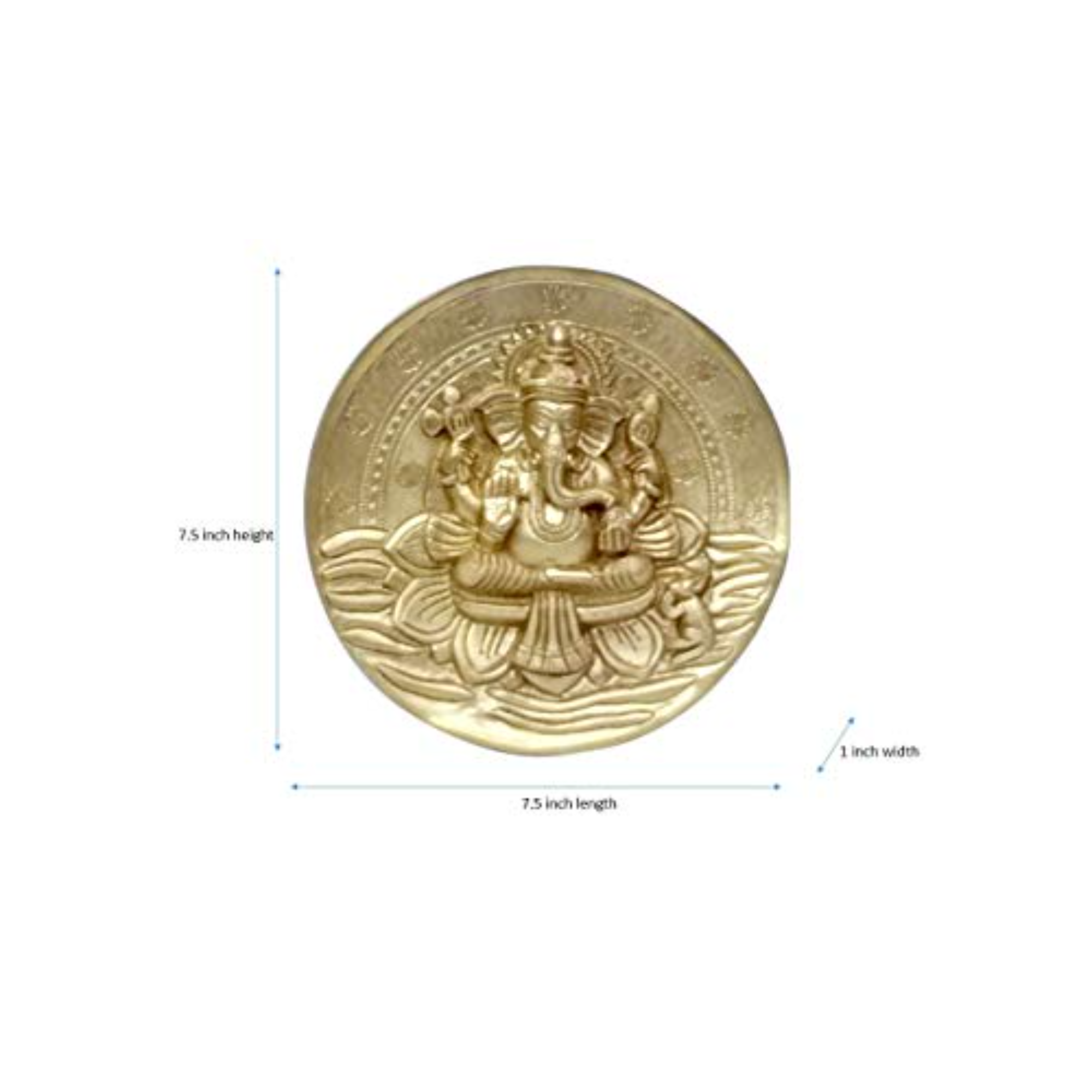 Handcrafted Brass Ganesha Wall Hanging made from premium brass for spiritual and decorative use. Ideal for homes, temples, or gifting. Size: 7.5 x 1 x 7.5 Inch, Weight: 1.19 Kg, 1 Pc.