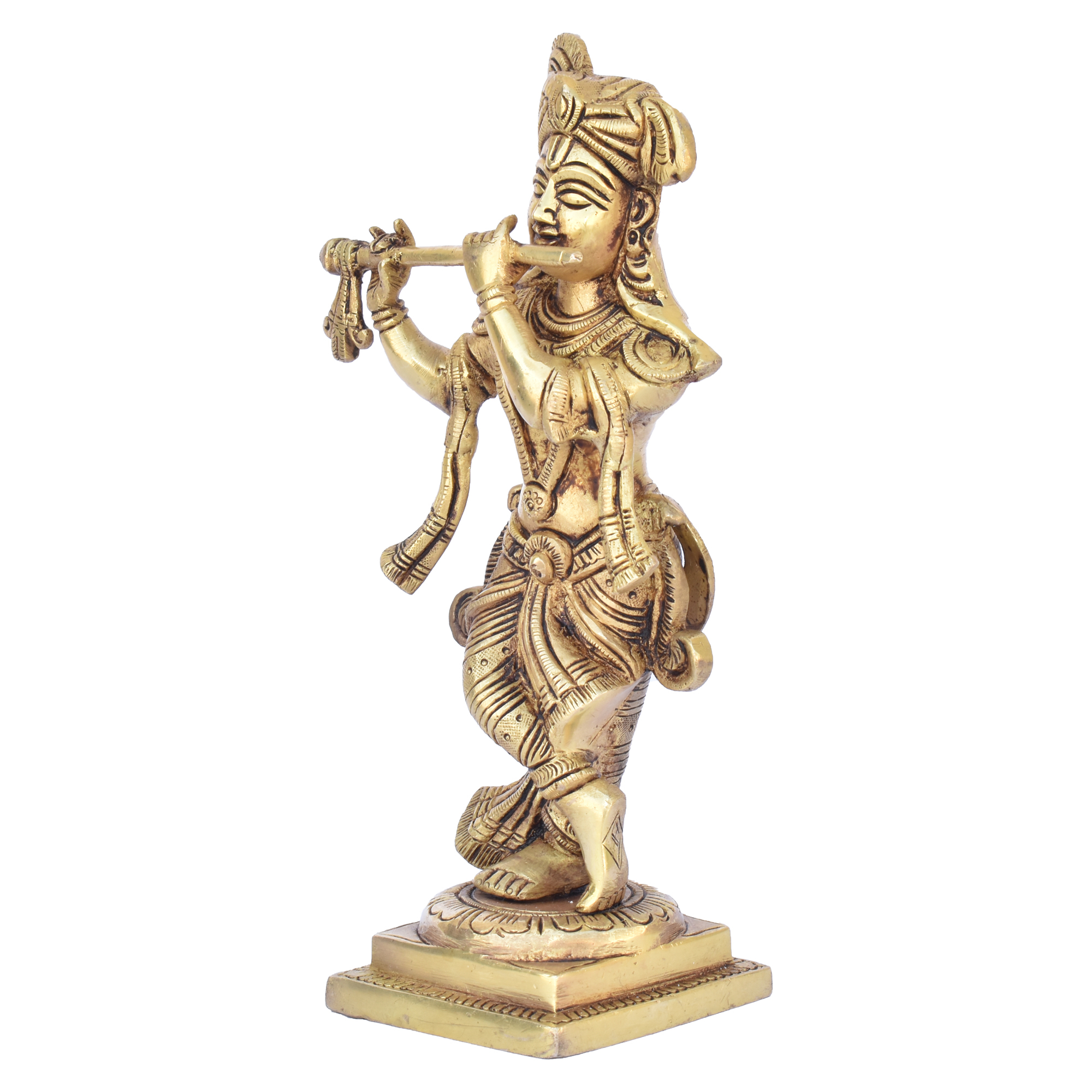 Design: Beautifully crafted idol of Lord Krishna standing with flute, symbolizing love, peace, and devotion.