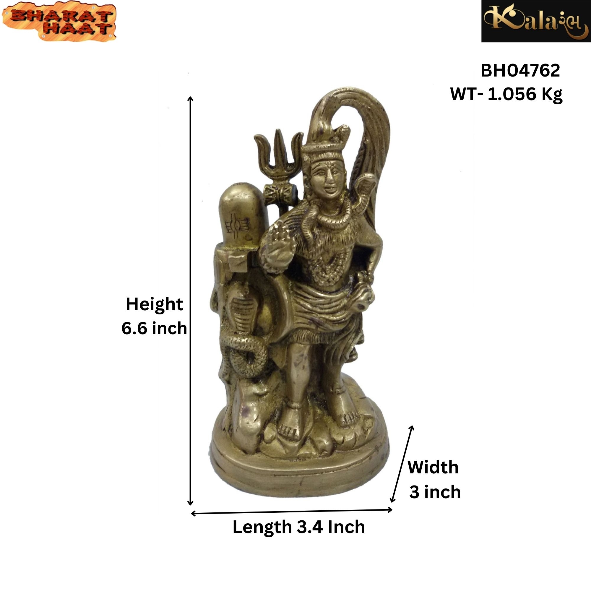Design: Beautifully crafted Brass idol of Lord Shiv standing beside the sacred Shivling, symbolizing power, creation, and divine energy