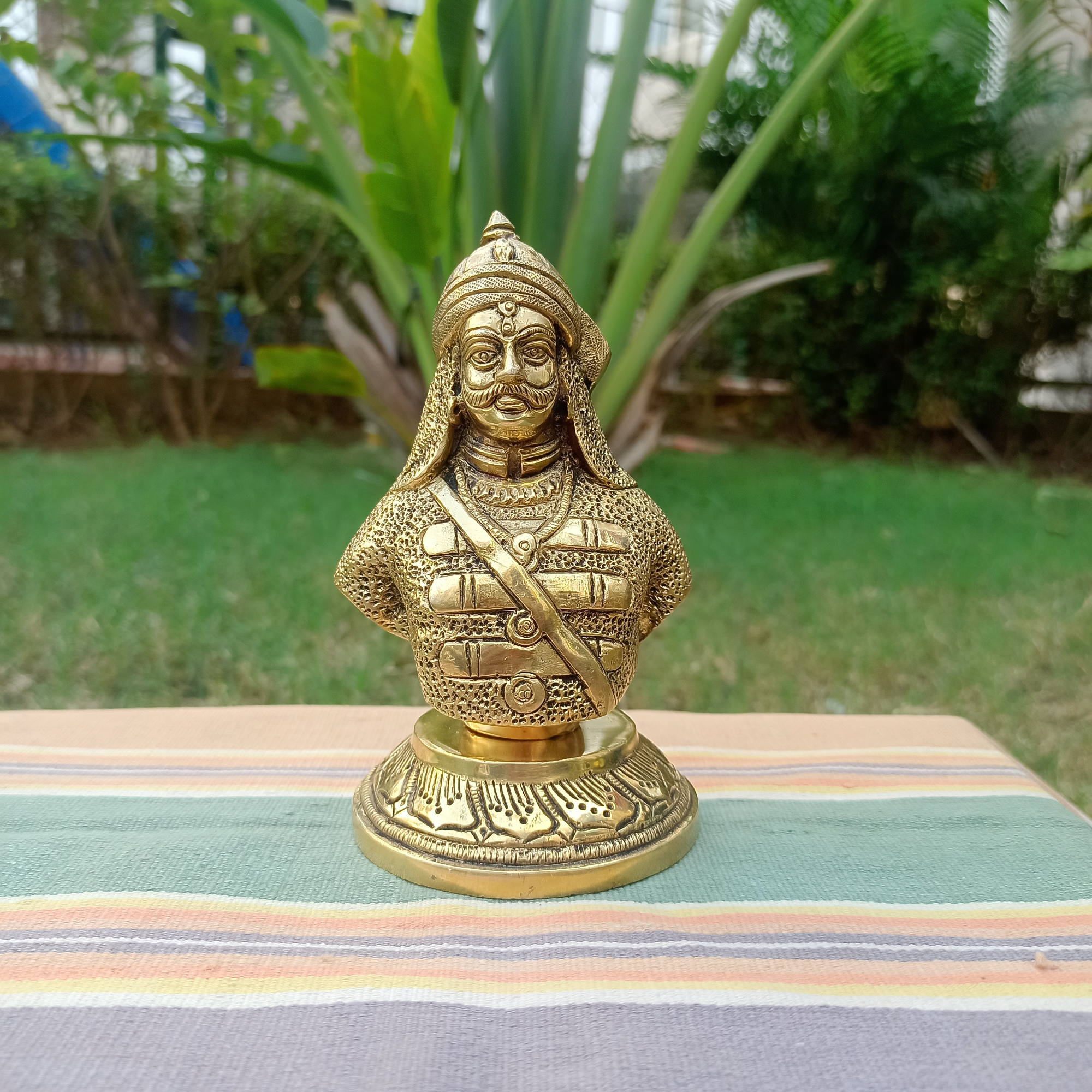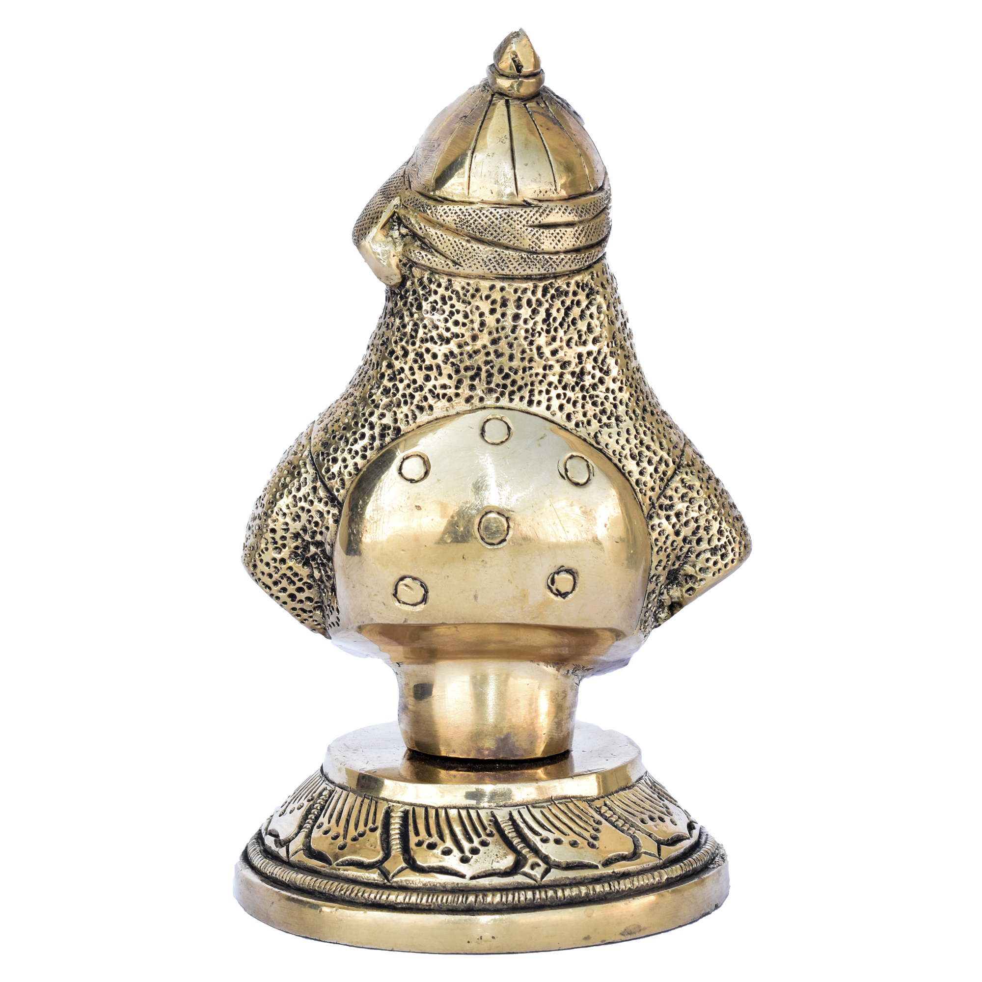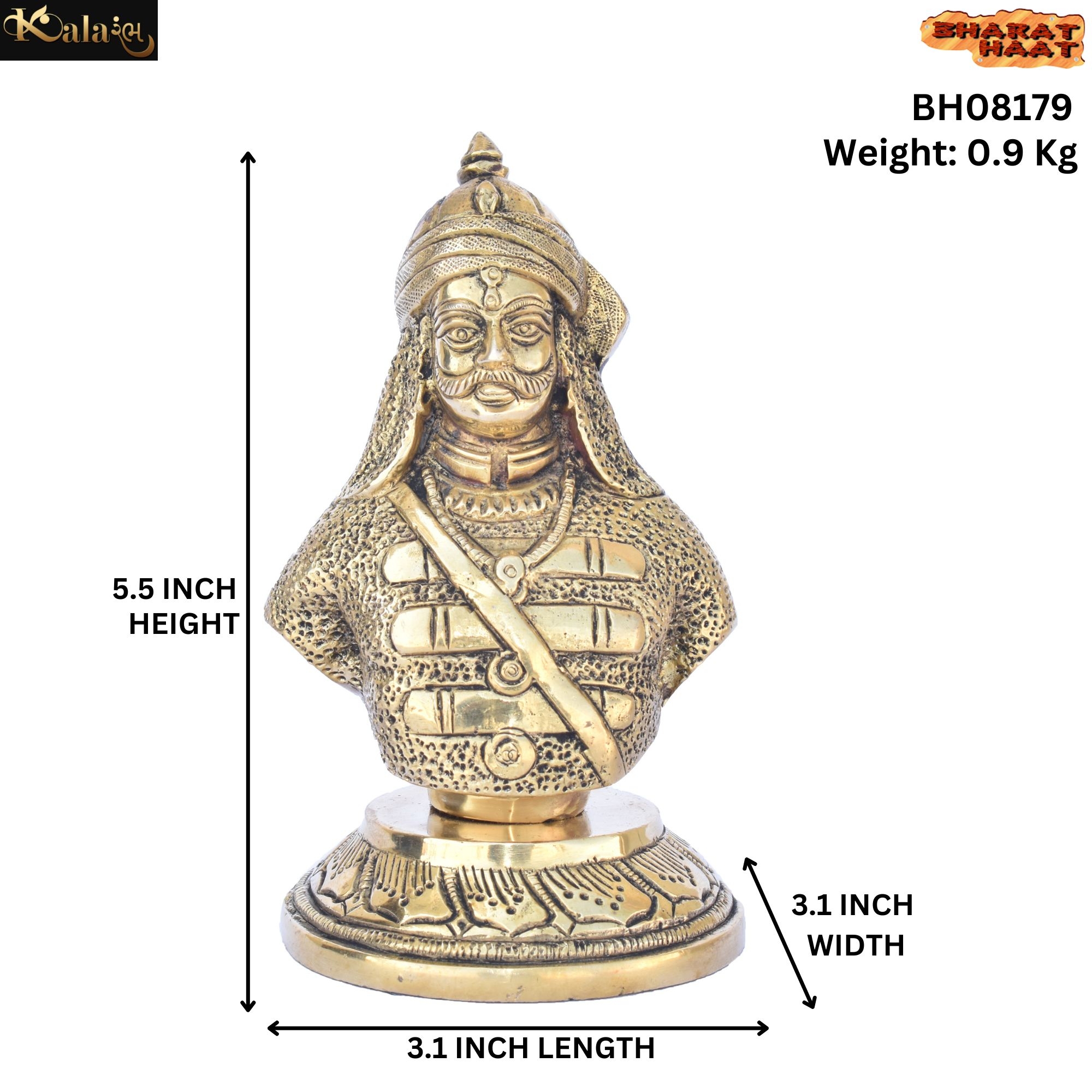 This Brass Maharana Pratap idol measures 3.1 x 3.1 x 5.5 inches (7.87 x 7.87 x 13.97 cm) and weighs 900 grams. A finely crafted statue celebrating the legendary Rajput warrior. Ideal for home décor, offices, or as a collectible gift, this brass piece adds historical and artistic charm to any space.