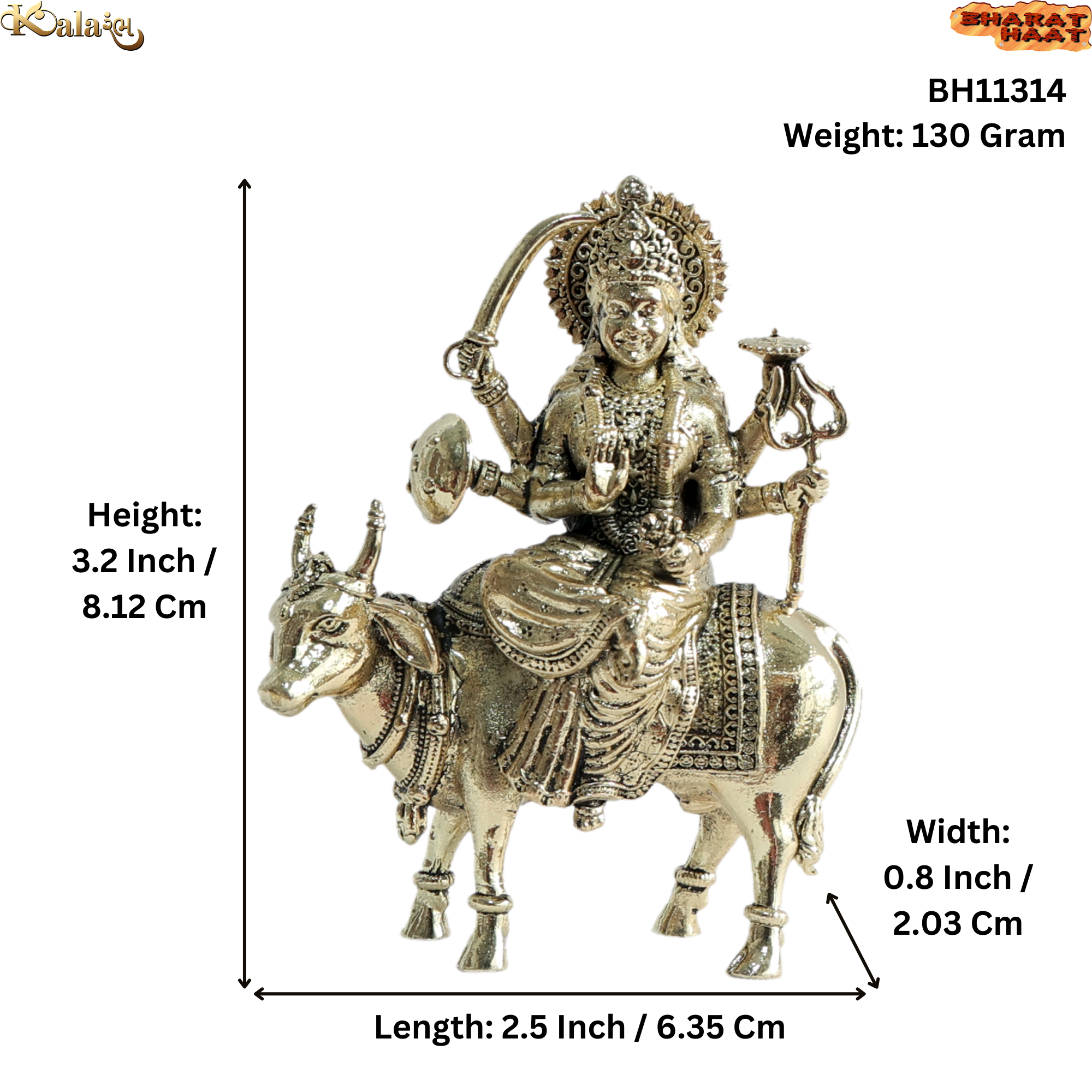 Strong and durable in build, this brass idol is ideal for daily worship and long-term use. It is also a thoughtful gift for housewarming, Navratri, religious functions and festive occasions.