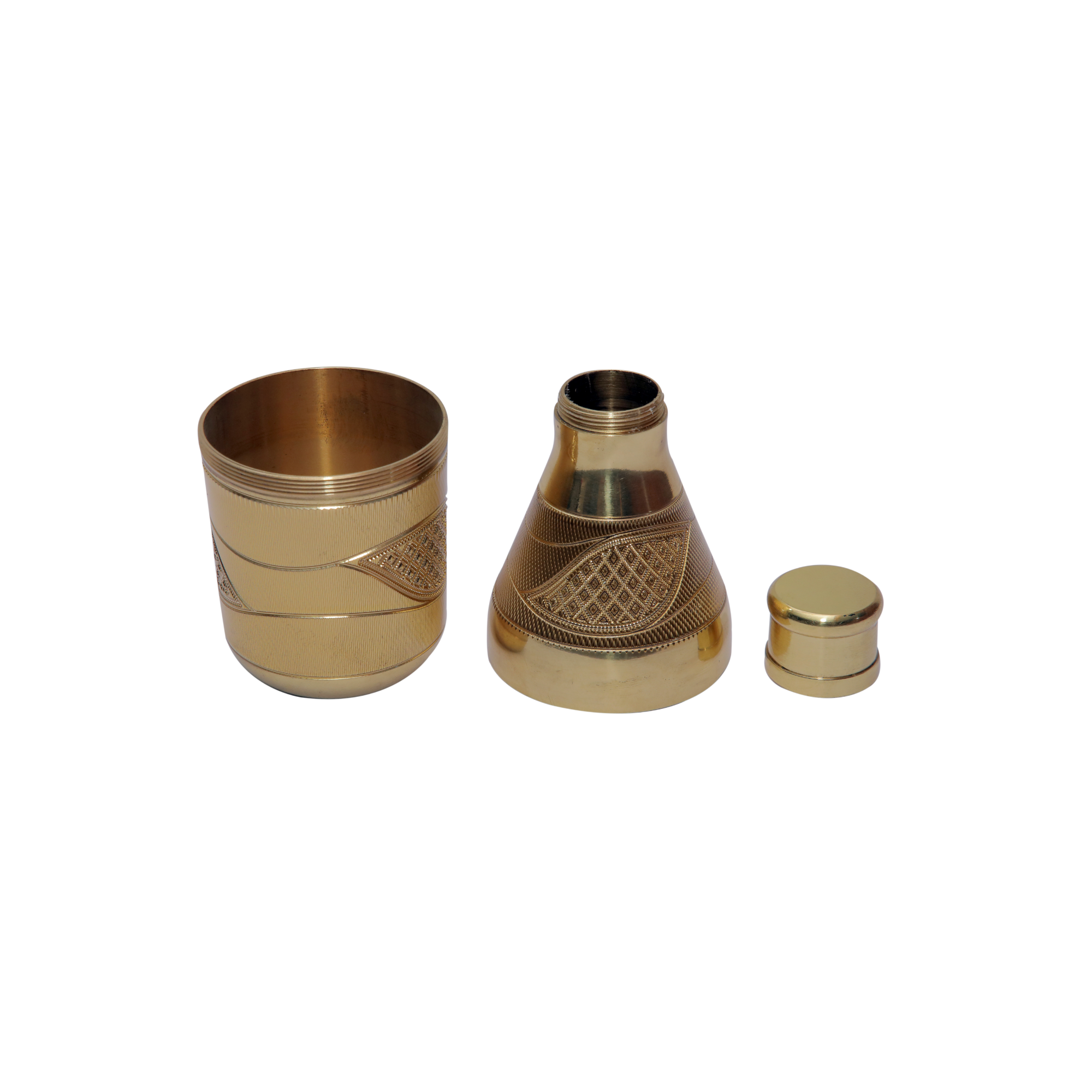 This Brass Mukhwas Bottle is a beautifully handcrafted container made of premium brass. Measuring 2 x 2 x 5.5 inches and weighing 180 grams, it is ideal for storing mouth fresheners, dry fruits, or spices. A perfect blend of utility and traditional Indian design.