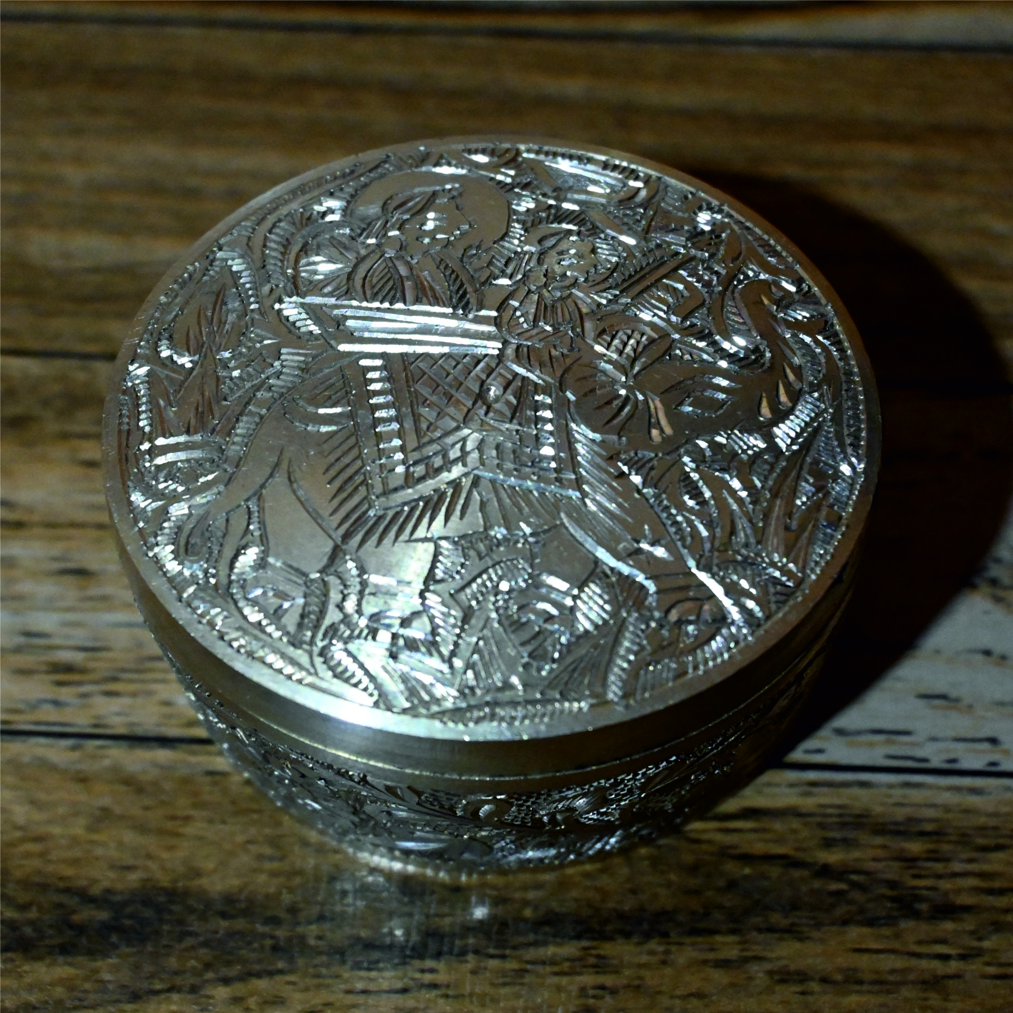 Add a touch of timeless elegance to your rituals with our Brass Nakkashi Work Sindur Box. Crafted by master artisans,