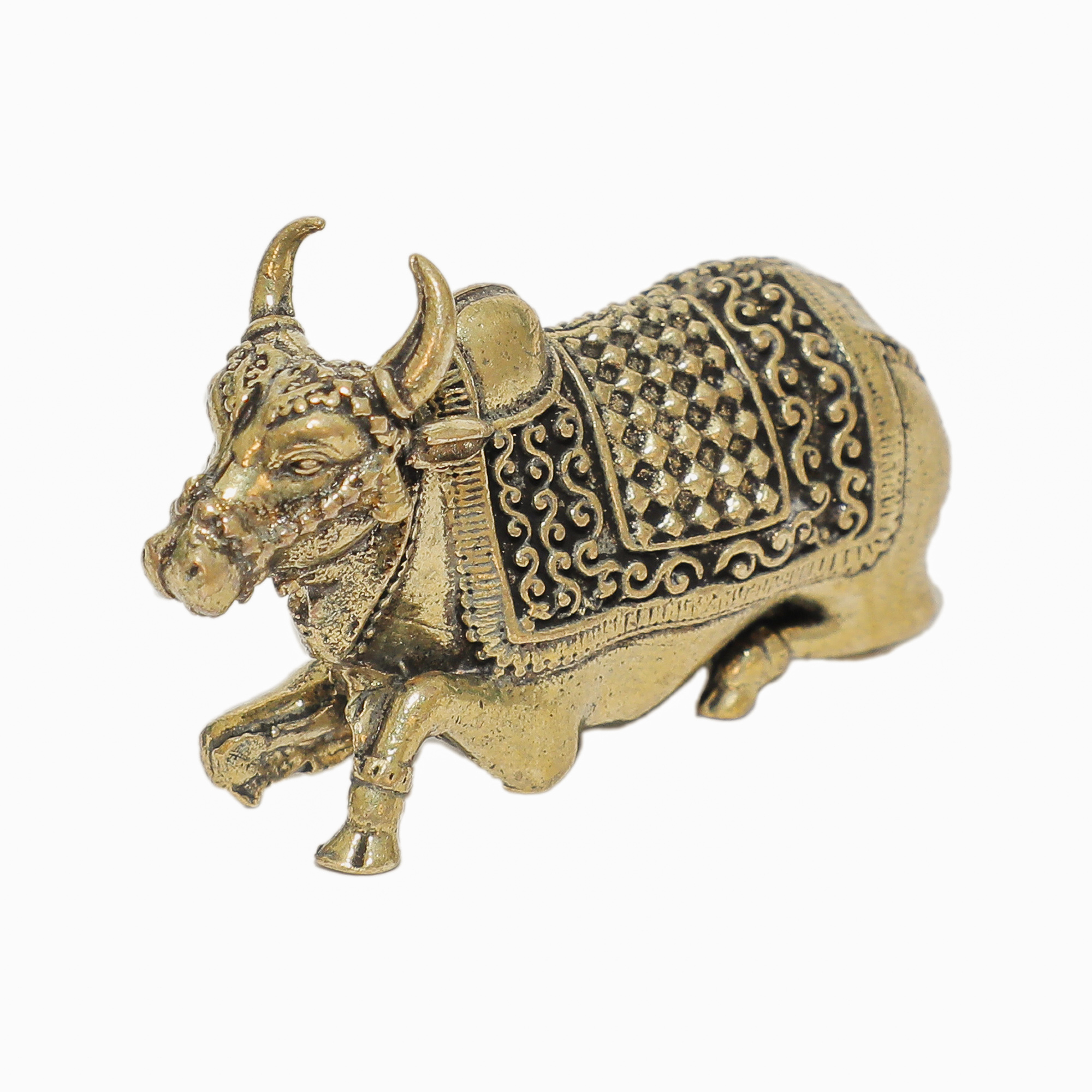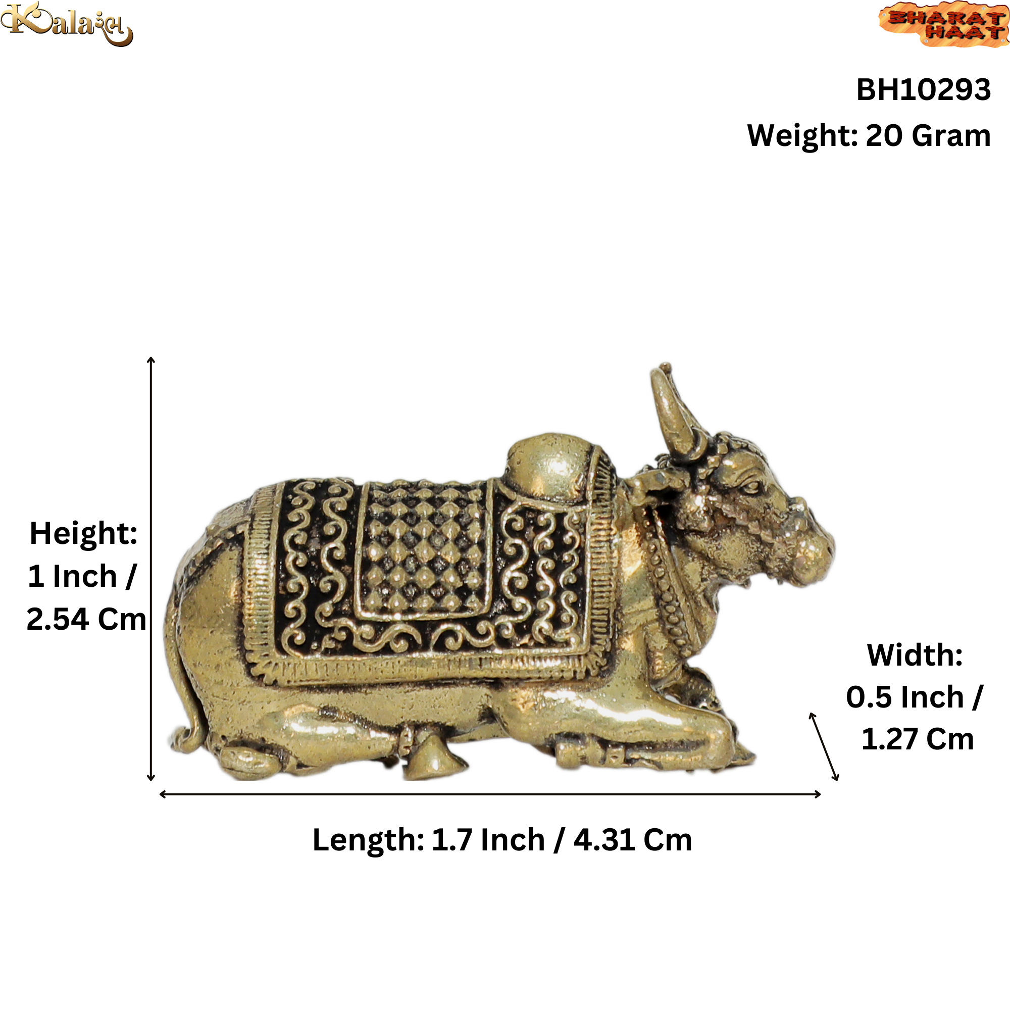 Tiny Handcrafted Brass Nandi Idol | Mini Bull Statue for Home Temple & Puja Décor | Pure Brass Murti | 1 Inch, Bring divine blessings into your home with this Tiny Handcrafted Brass Nandi Idol. Made from high-quality solid brass, this miniature statue depicts Nandi, the loyal bull and vehicle of Lord Shiva, symbolising devotion, protection, and spiritual strength. Measuring 1.7 x 0.5 x 1 inches and weighing 20 grams, it is perfectly suited for compact home temples, small pooja spaces, or office altars.