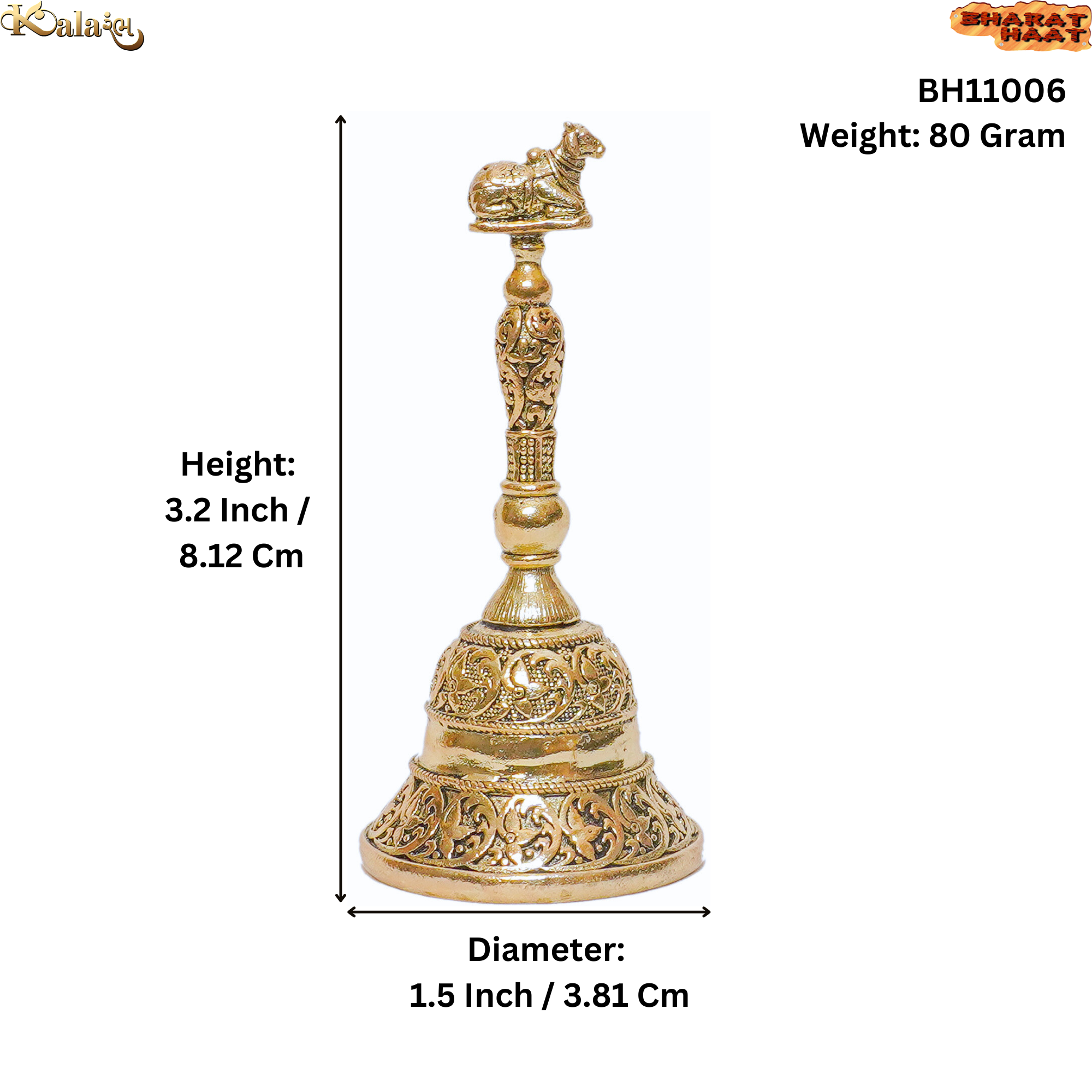 Brass Nandi Bell | Handcrafted Hanging Temple Bell with Nandi Design (1.5 x 1.5 x 3.2 Inch, 80 Gram), This Brass Nandi Bell is a beautifully handcrafted temple accessory, featuring a divine Nandi design at the top. Made from premium quality brass, it is durable, compact, and perfect for daily pooja, temple rituals, and meditation practices. The bell produces a clear and soothing sound, believed to invite positivity, remove negative energies, and create a spiritual atmosphere.
