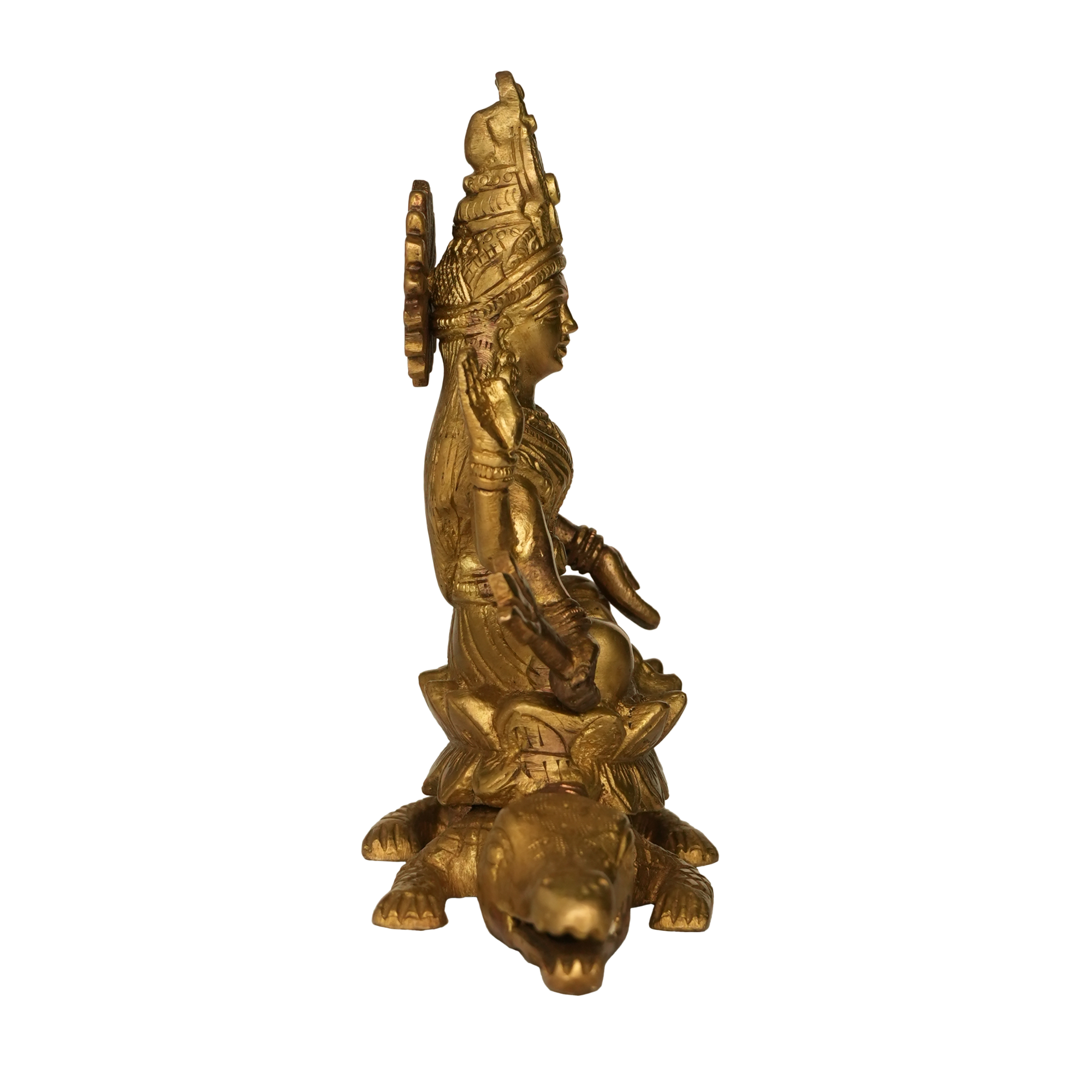 Made from 100% pure brass, this idol features intricate artistry with beautiful facial expressions, ornaments, and a flowing posture that reflects serenity and devotion. The antique gold finish enhances its spiritual radiance and makes it a perfect centrepiece for your home temple, pooja room, or meditation area.