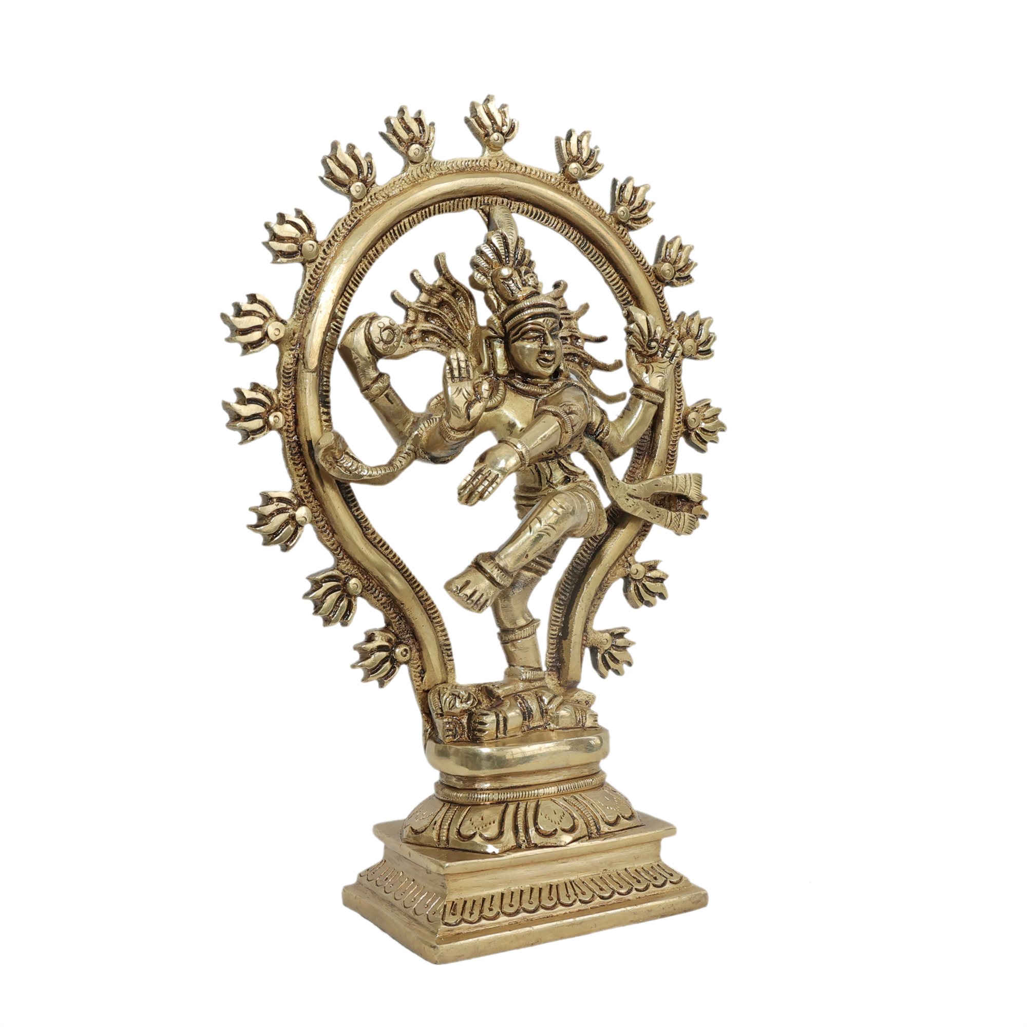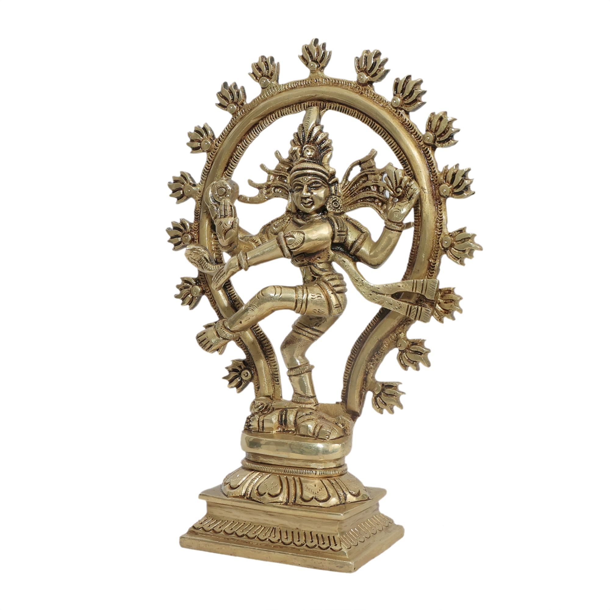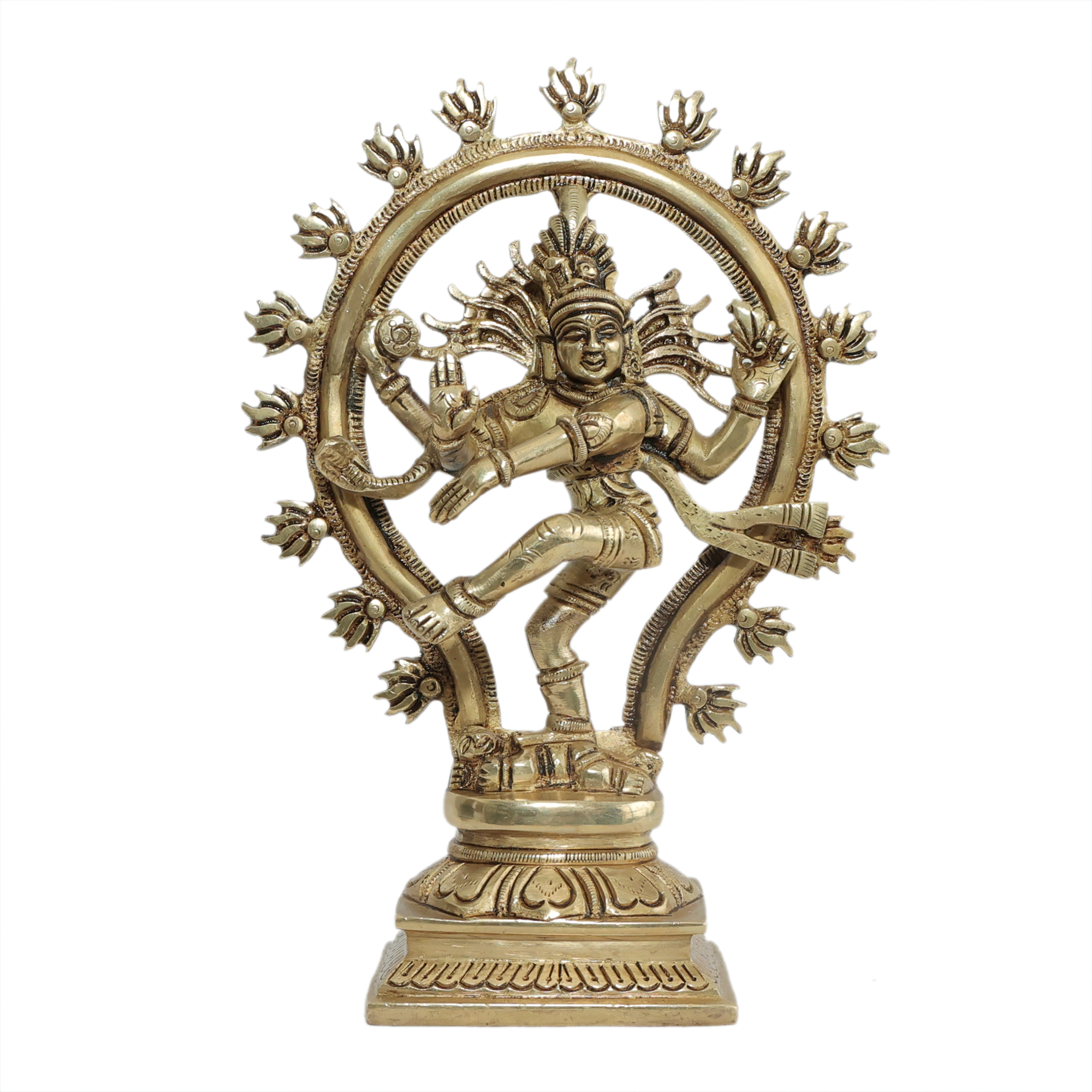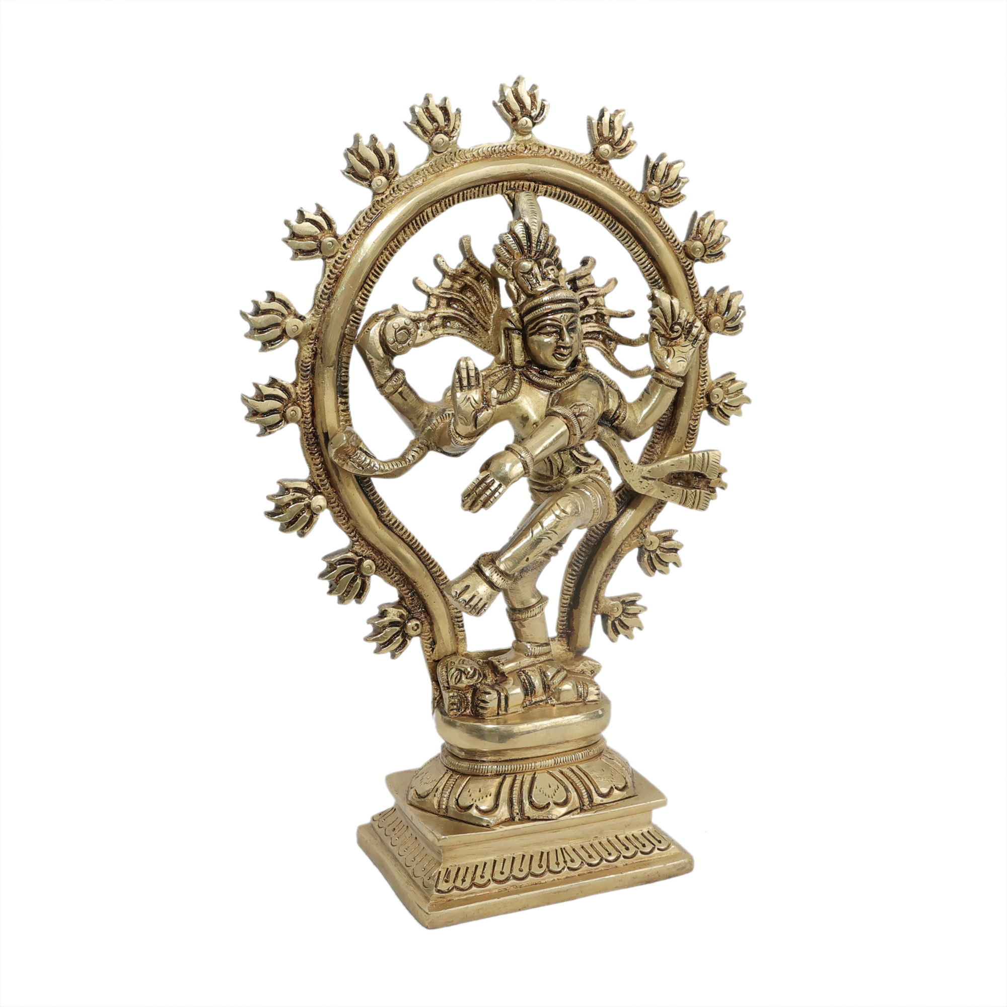 This authentic brass dancing Shiva statue represents creation, preservation, and destruction in perfect harmony. Perfect for daily worship, meditation, and Maha Shivratri celebrations. The graceful Nataraja symbolizes rhythm of universe and brings peace, wisdom, and divine protection. Essential temple statue for Shiva devotees seeking cosmic consciousness, blessed atmosphere,