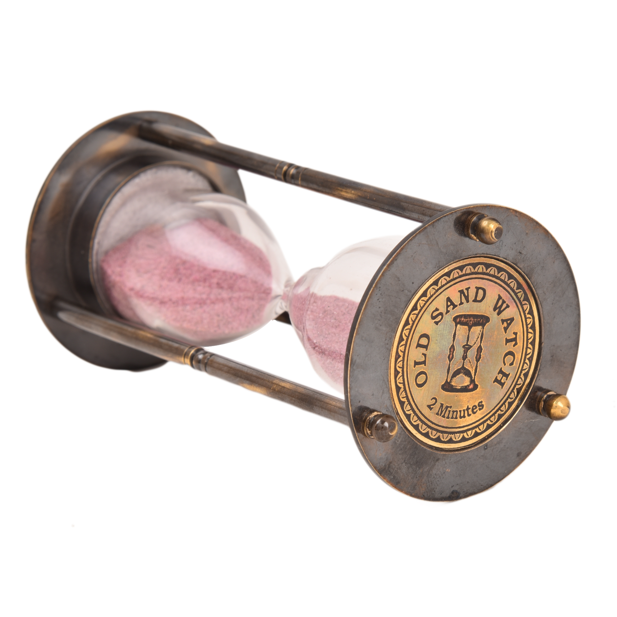 This Brass Old Sand Timer is a finely handcrafted antique-style hourglass made from durable brass. Its classic look makes it a perfect accent for vintage lovers and nautical décor enthusiasts.