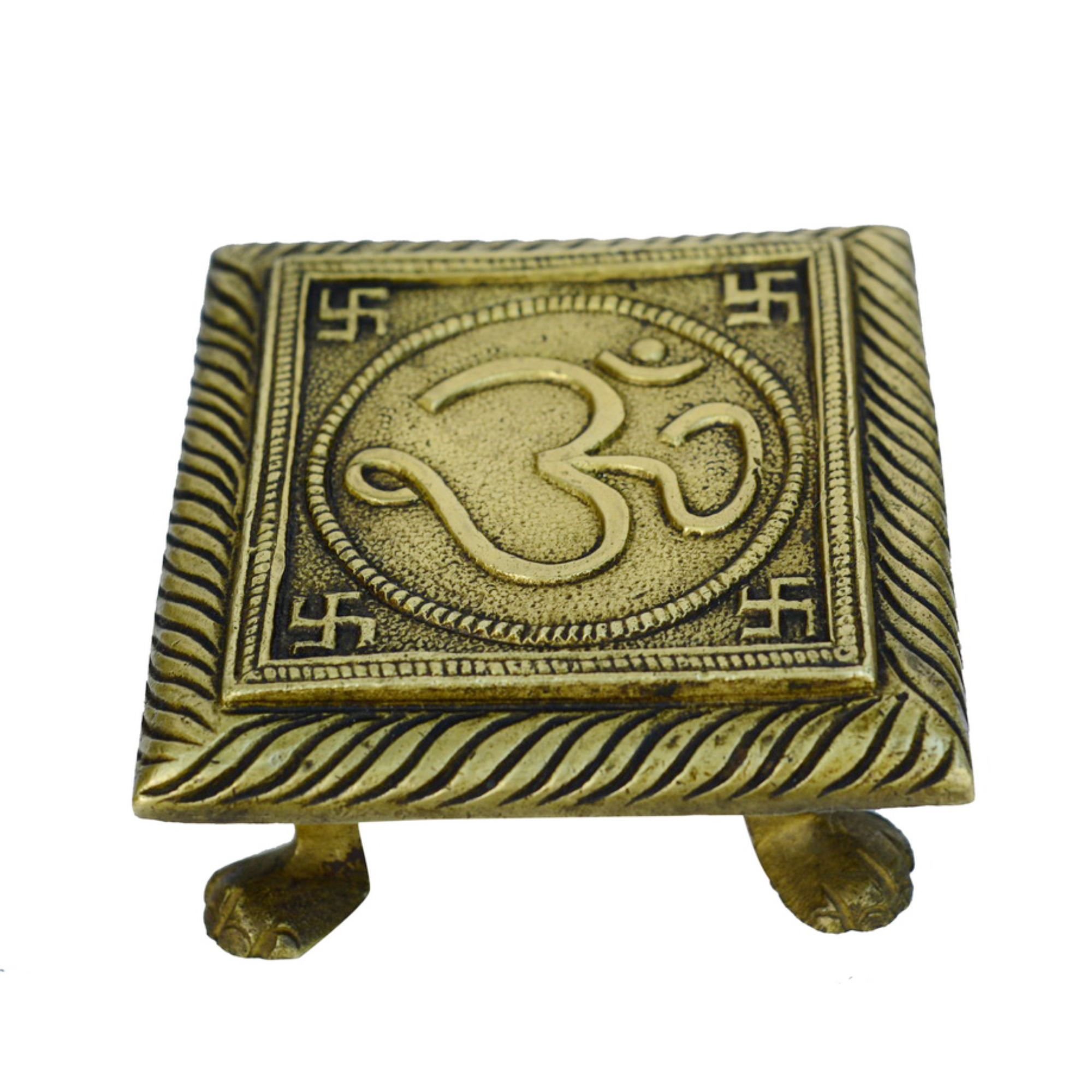 Handcrafted Brass Om Bajath designed with fine detailing and traditional artistry — perfect for placing idols or enhancing spiritual decor.