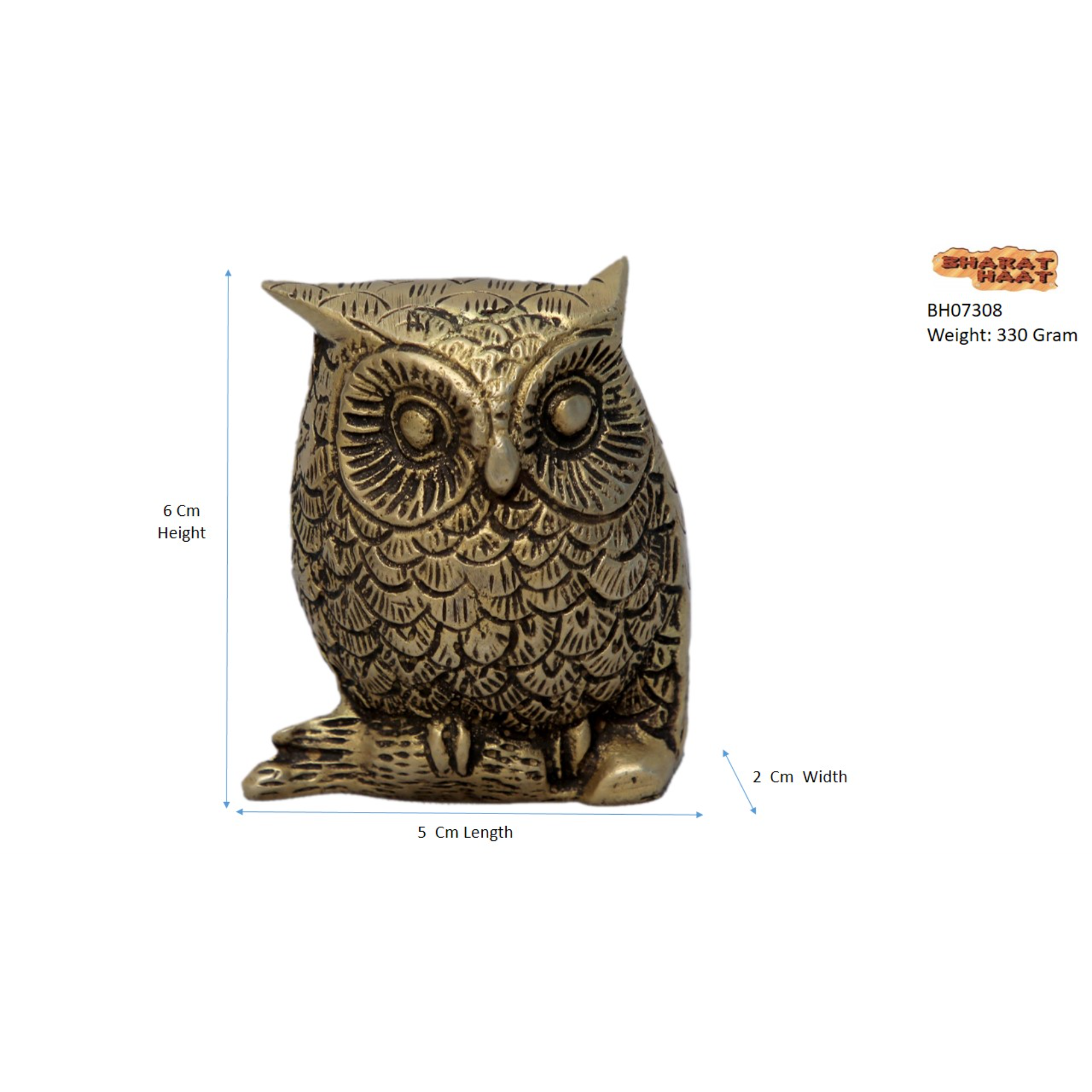 Beautifully crafted Brass Owl with dimensions 2 x 1.1 x 2.7 Inch and weight 330 grams. A compact and elegant décor piece for home, office, or gifting.