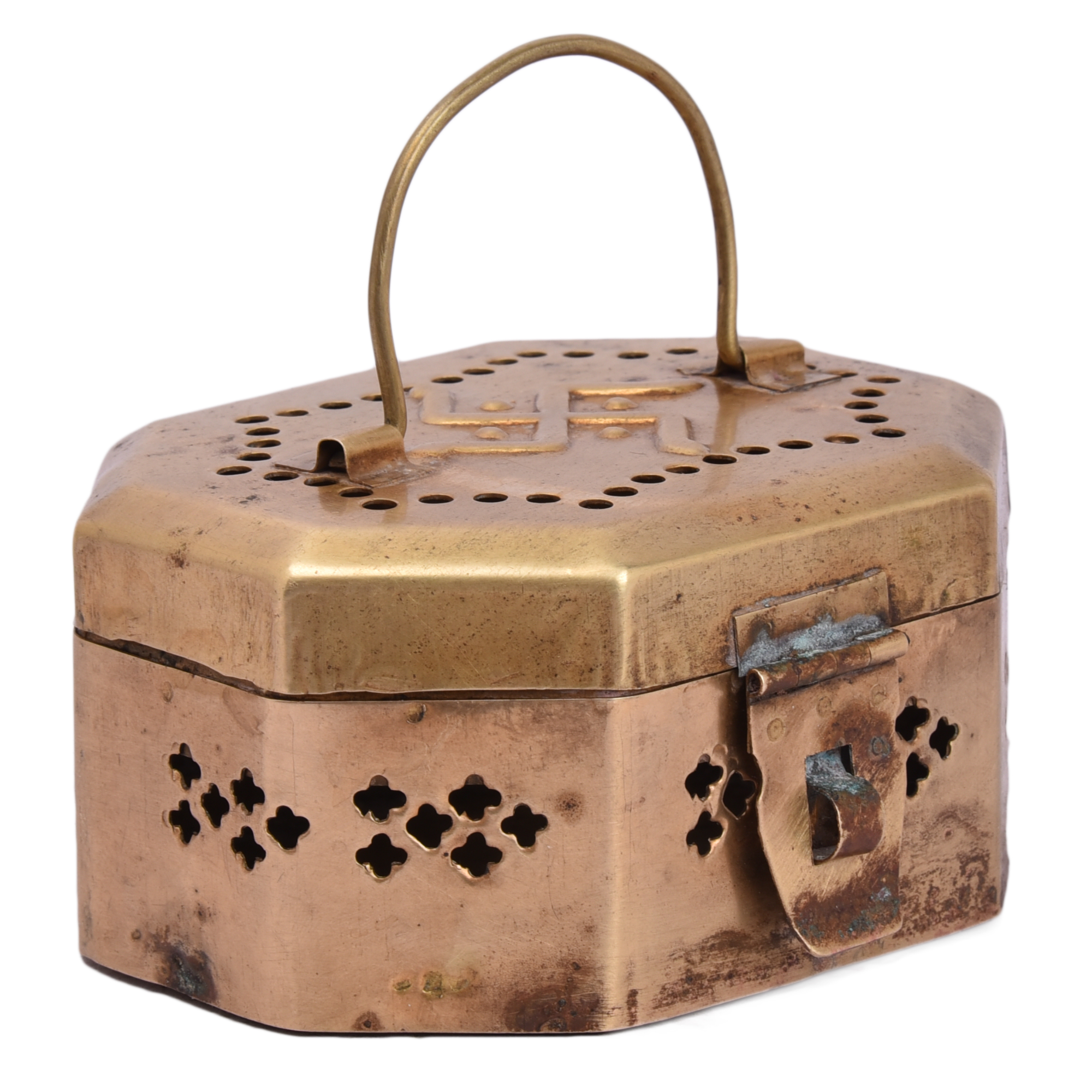 Small yet stylish, this Brass Pan Box is ideal for storing betel leaves or ornaments. Its handcrafted design and polished finish add a touch of vintage Indian charm.