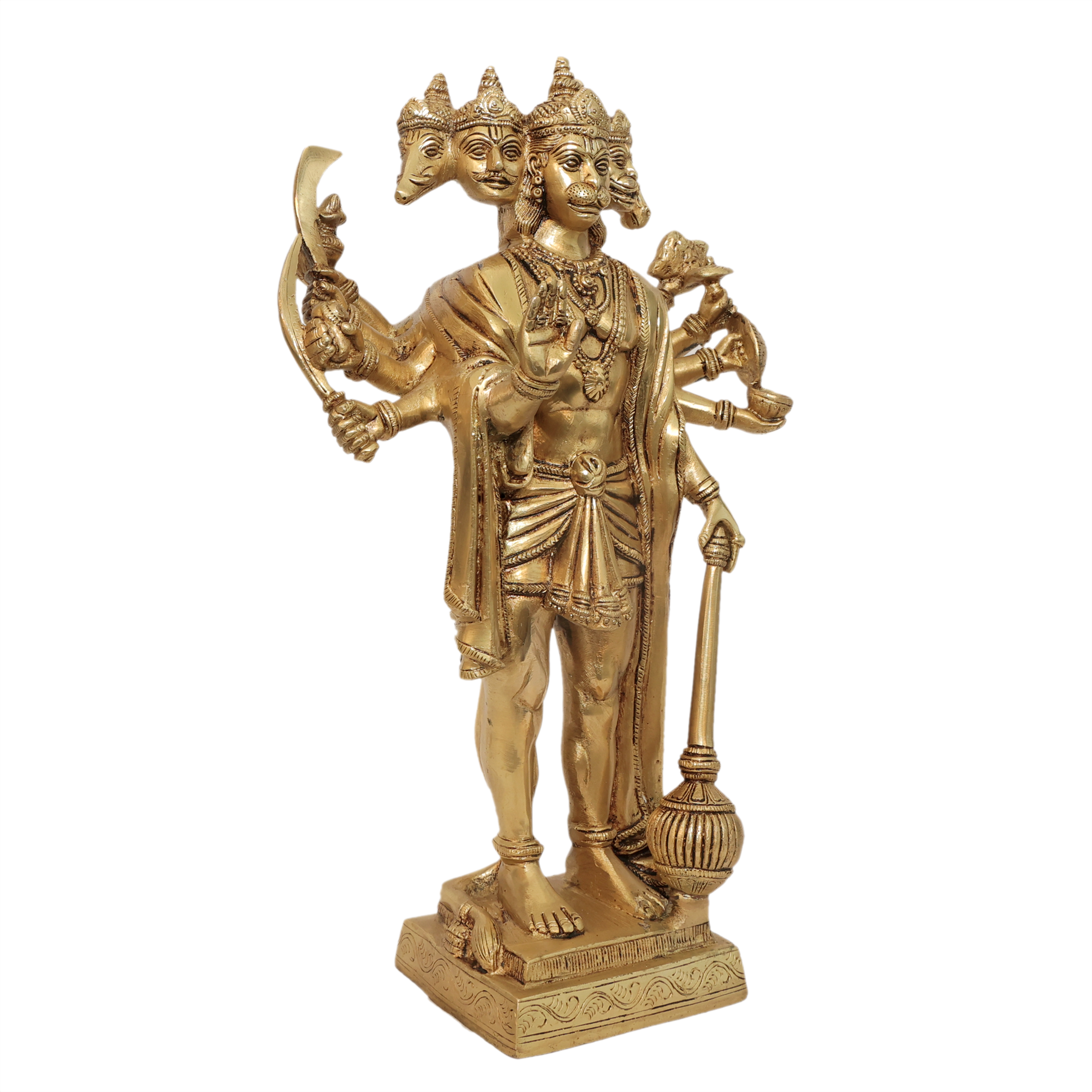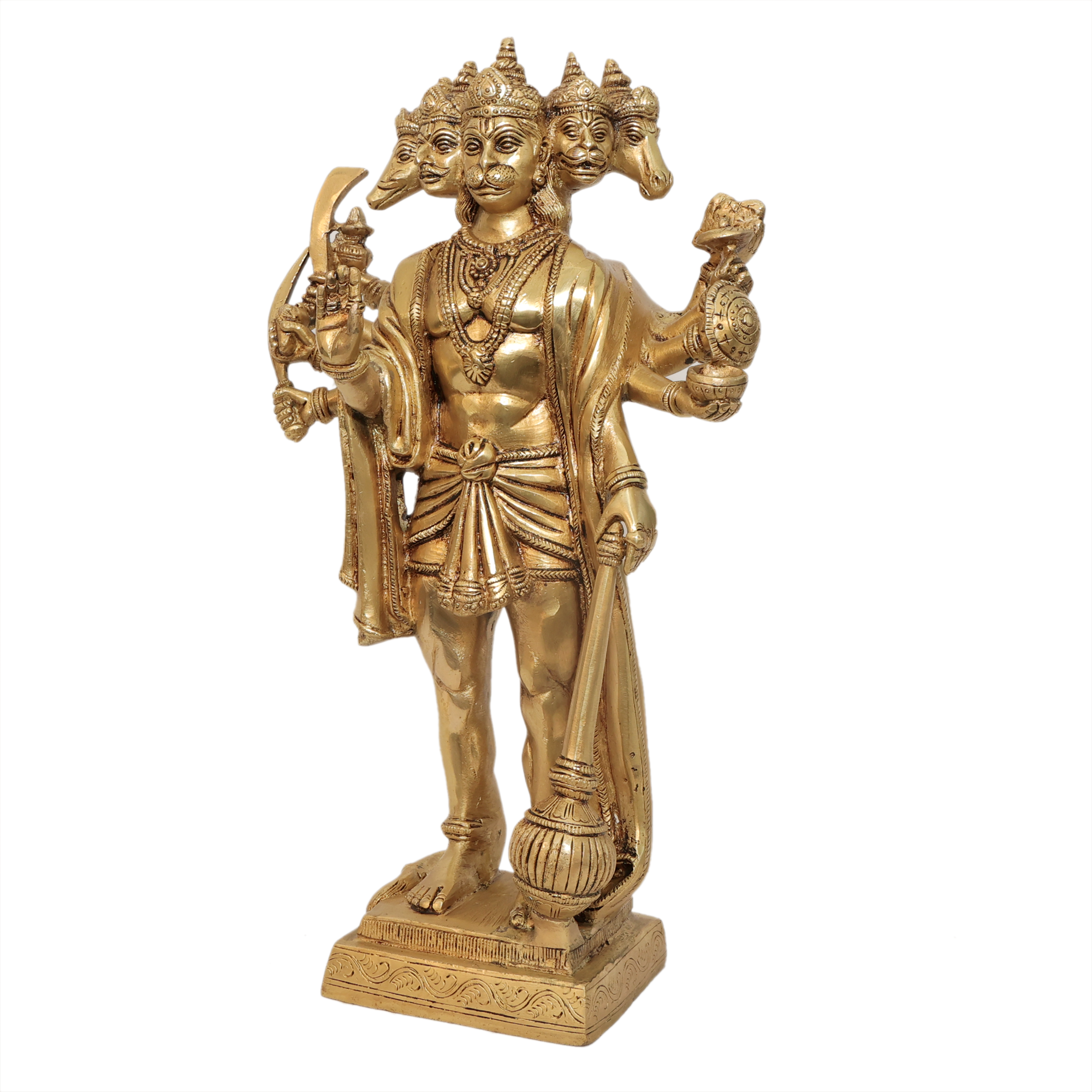 Brass Panchmukhi Hanuman Idol - Five Face Bajrangbali Statue for Home & Temple