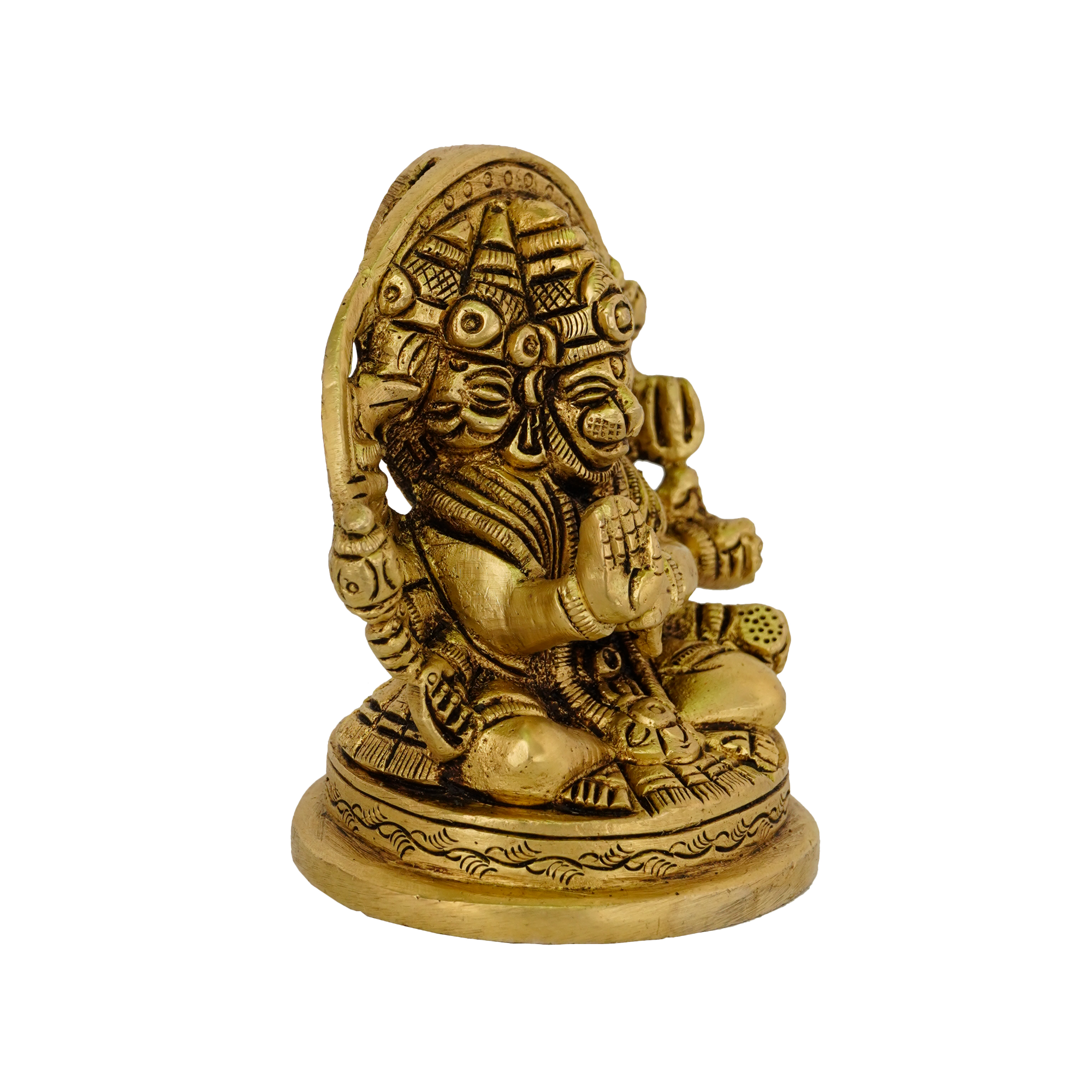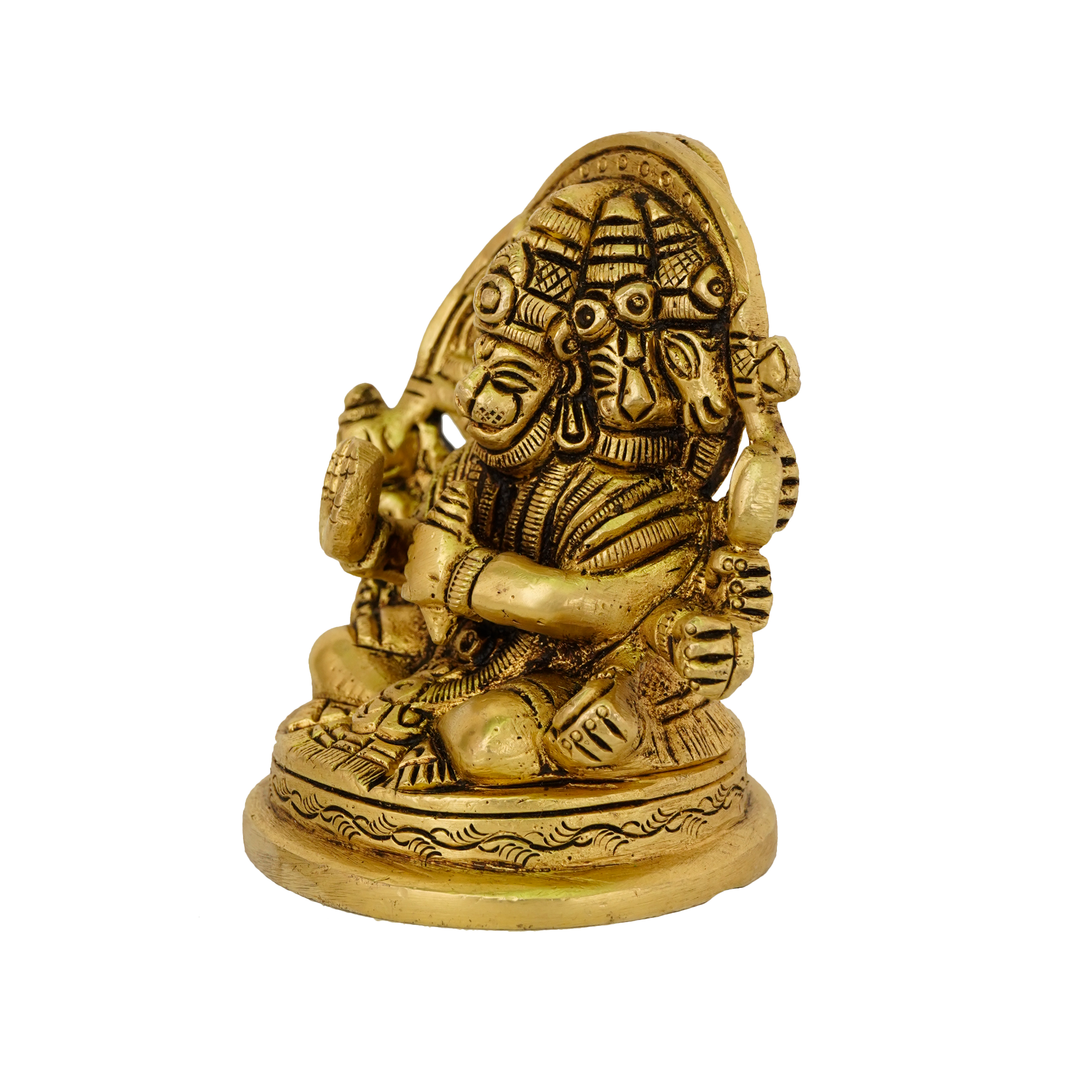 Design: Handcrafted brass idol of Panchmukhi Hanuman with intricate detailing of five faces and divine posture