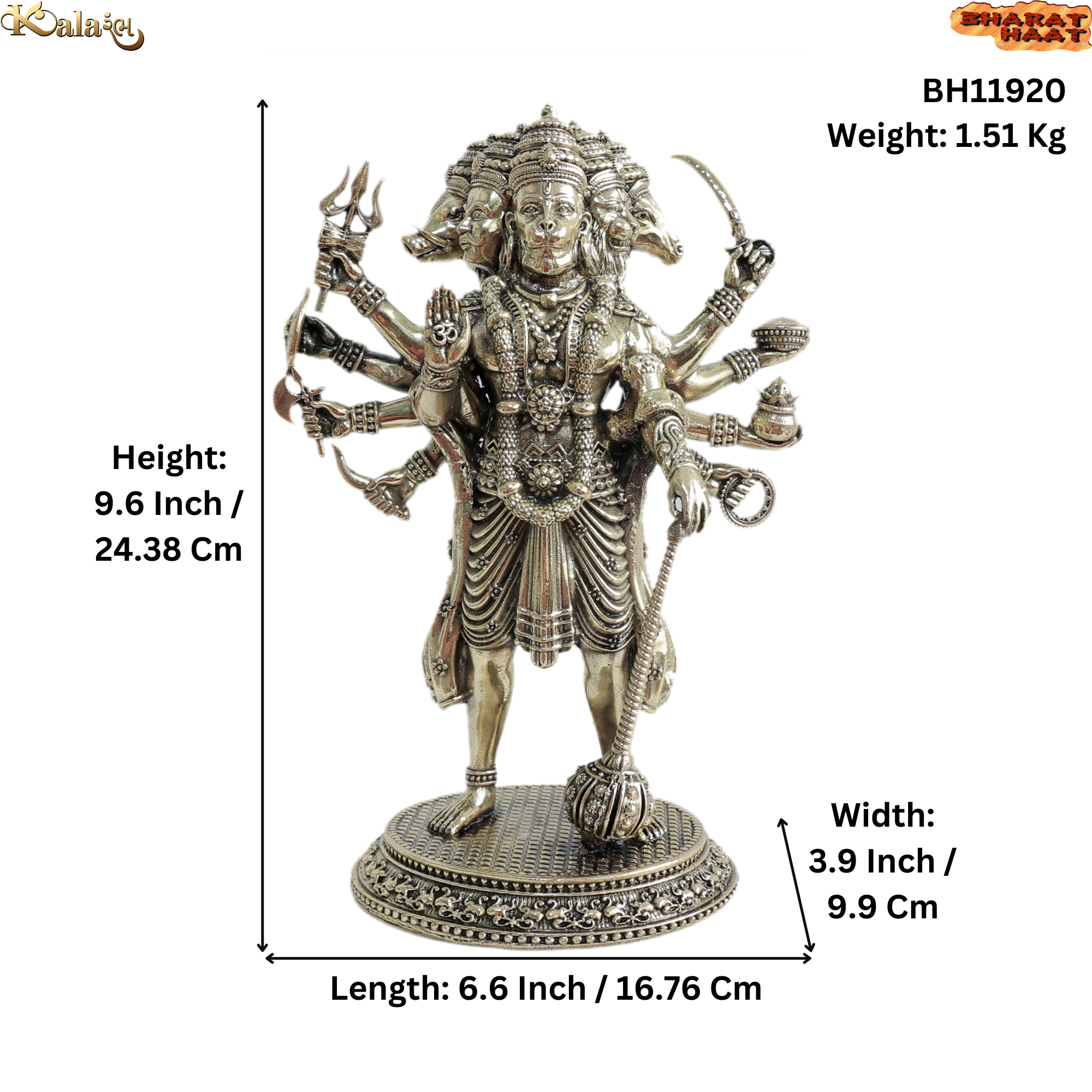 • Premium solid brass Panchmukhi Hanuman idol