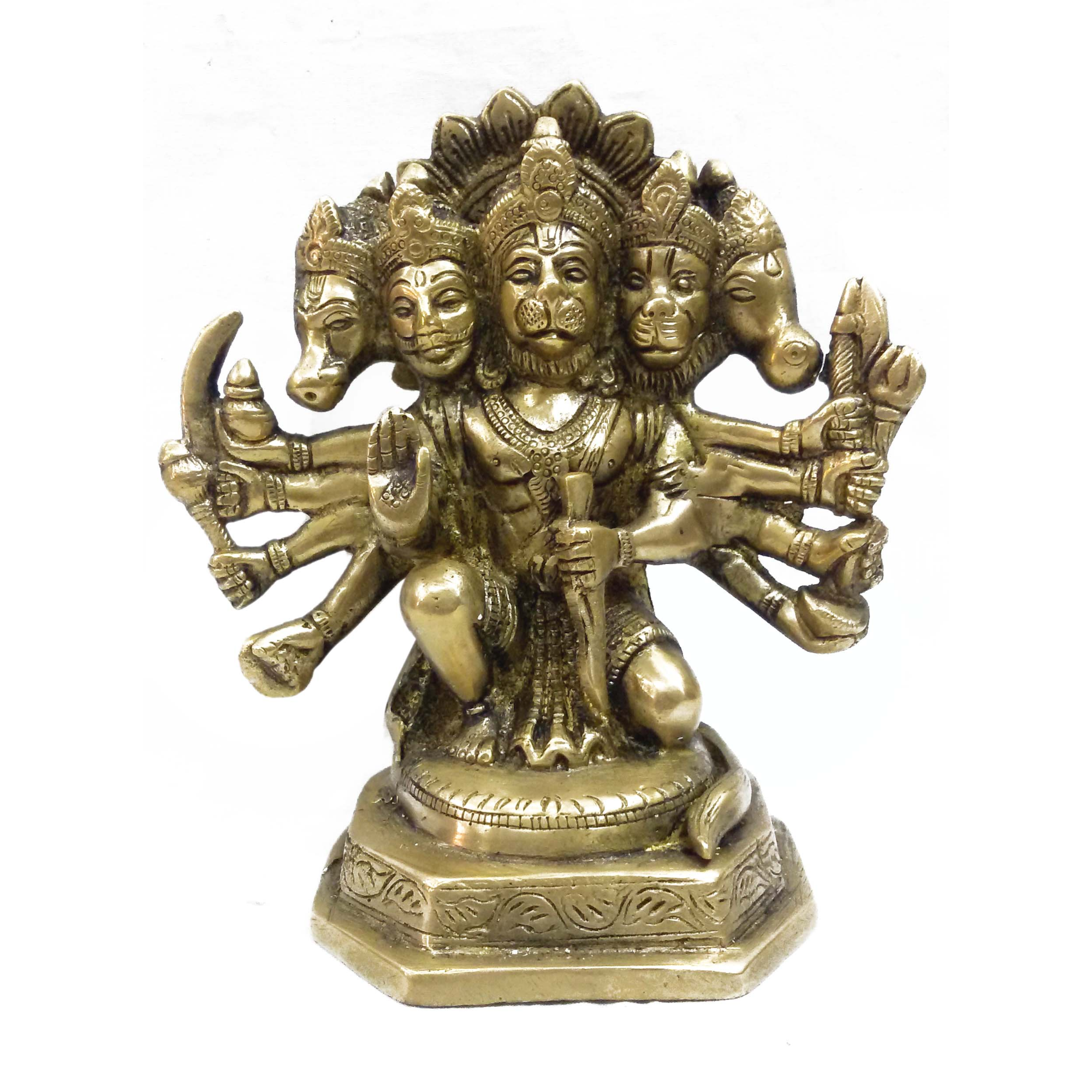 • Design: Exquisitely crafted five-faced Lord Hanuman brass statue, symbolizing strength, protection, and divine blessings