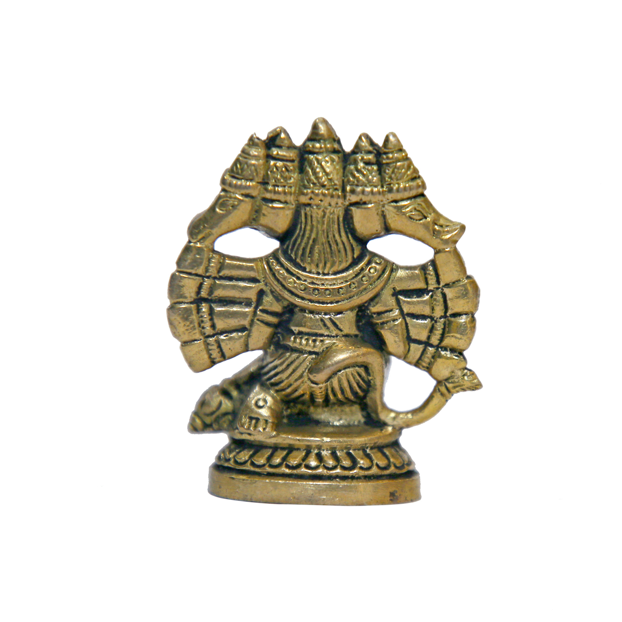 Compact and divine Small Brass Panchmukhi Hanuman Idol featuring five sacred faces and detailed craftsmanship. Size: 2 x 1 x 2.4 Inch, Weight: 161 Gram, 1 Piece.