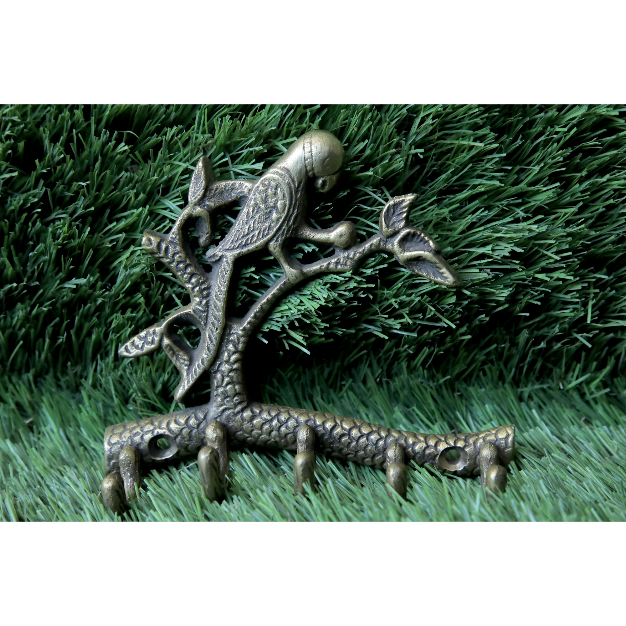 Design: Beautiful Parrot-themed brass keyholder with fine handcrafted detailing