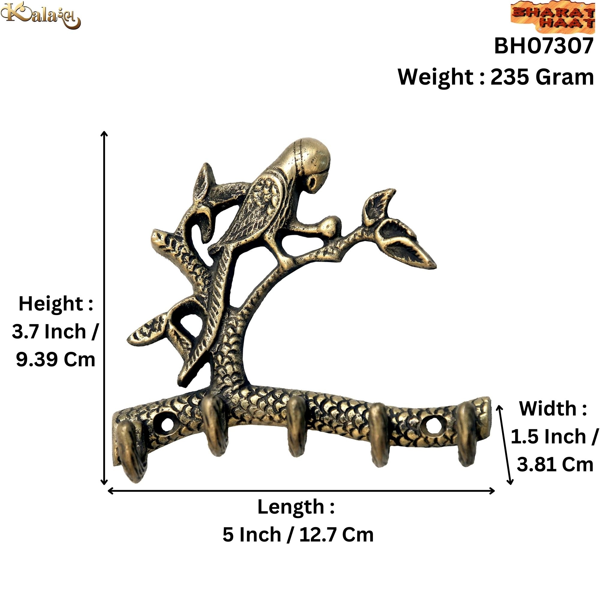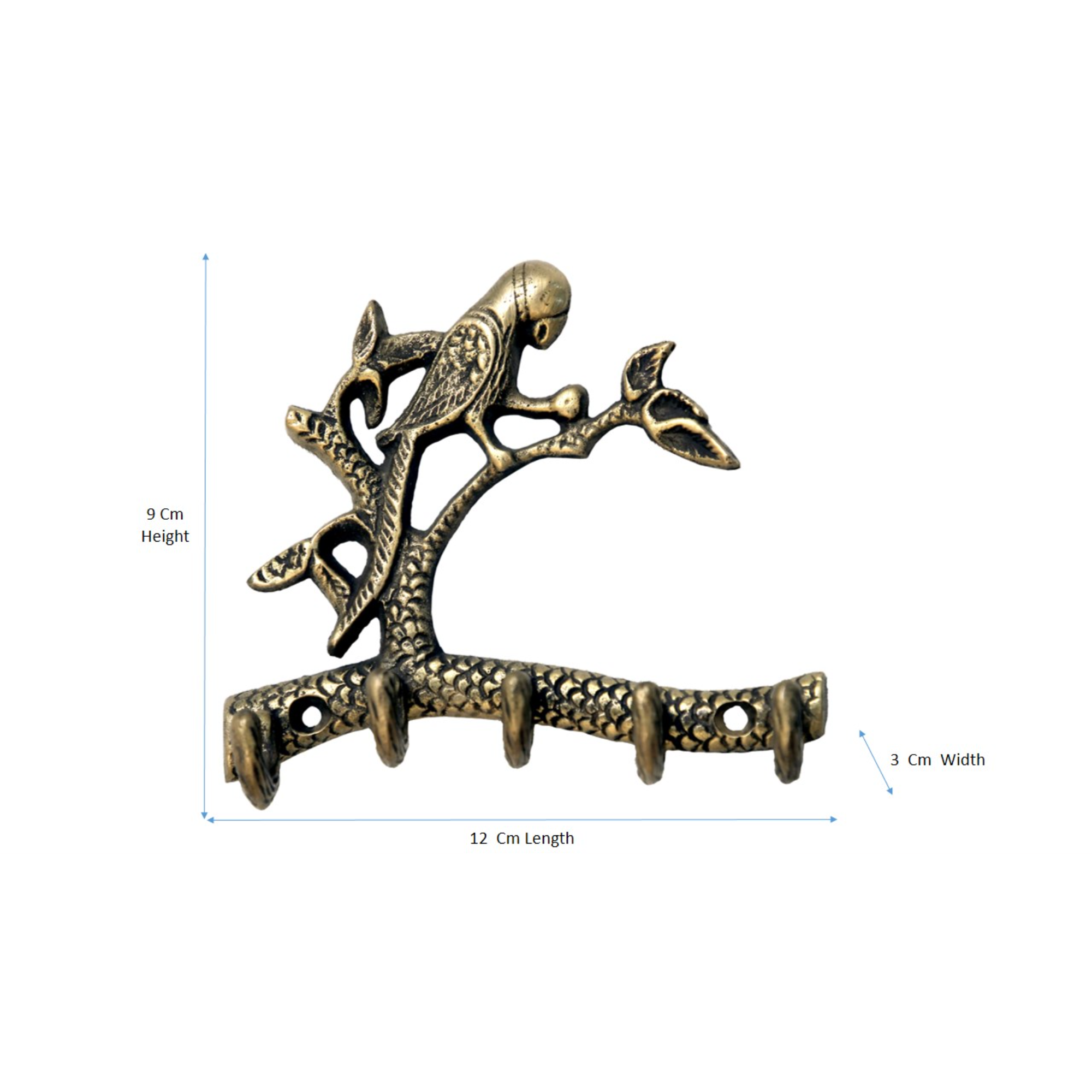 Brass Parrot Design Keyholder with detailed craftsmanship, measuring 5 x 1.5 x 3.7 Inch and weighing 235 grams. Perfect for organized and decorative key storage.