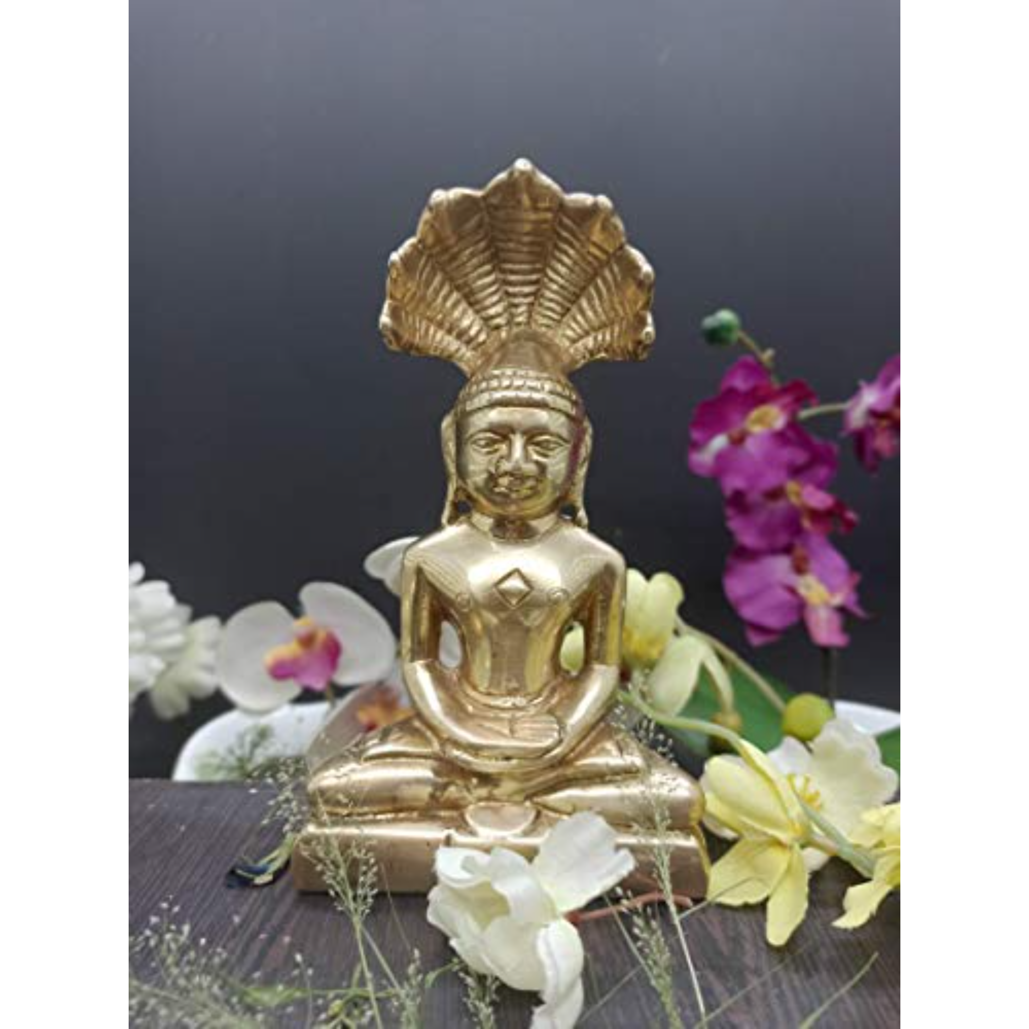 Finely crafted Brass Parshvanath Idol representing the revered Jain Tirthankara, symbolizing peace, purity, and spiritual enlightenment — a sacred addition to your home or temple.