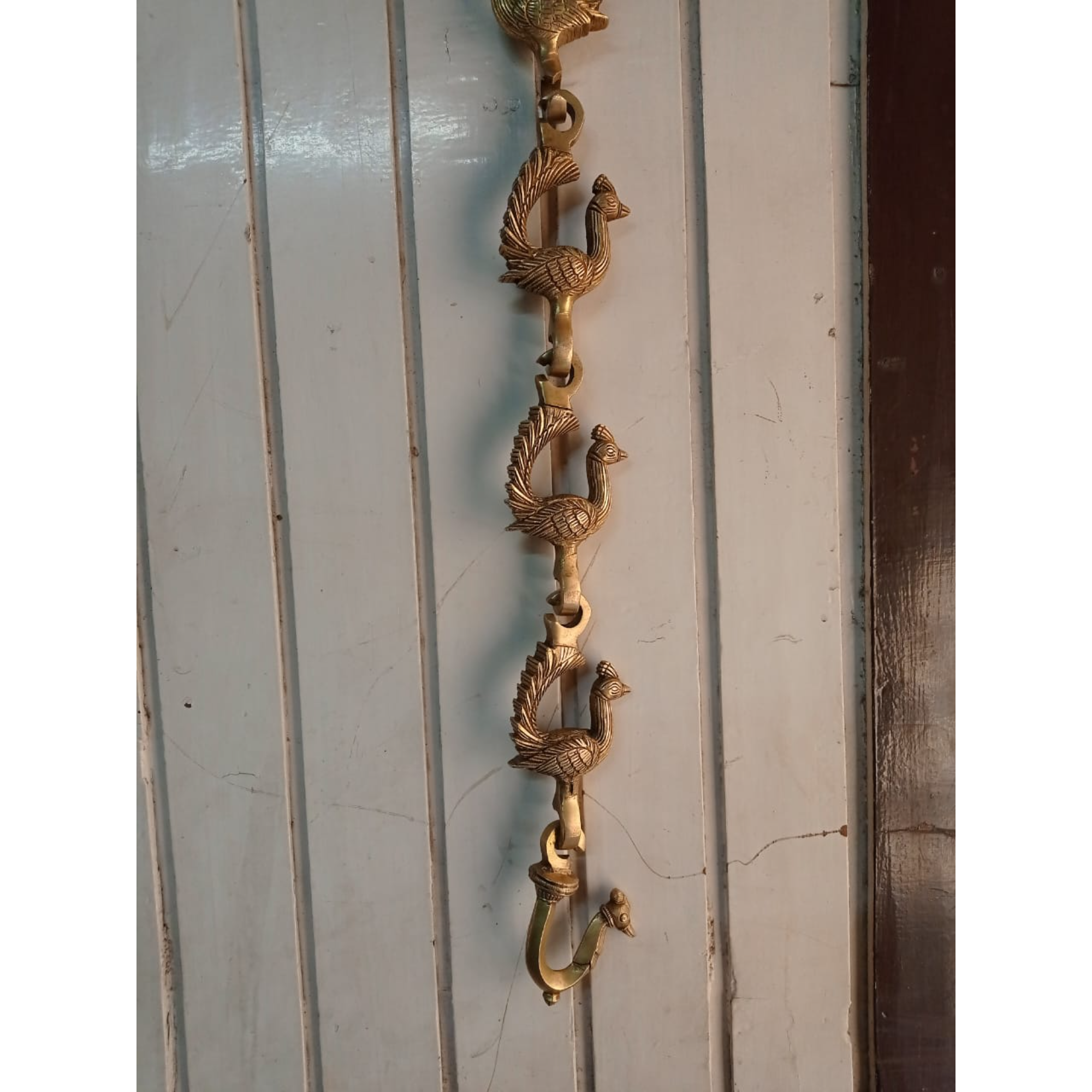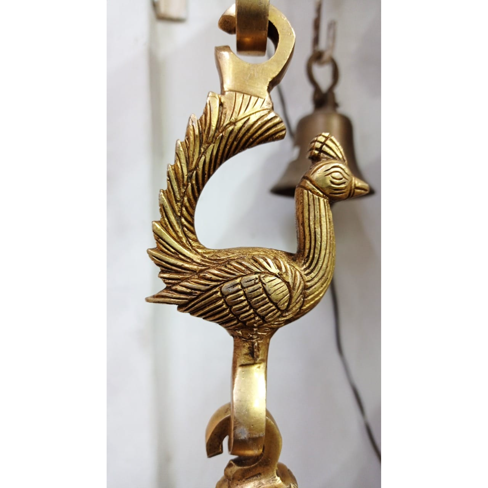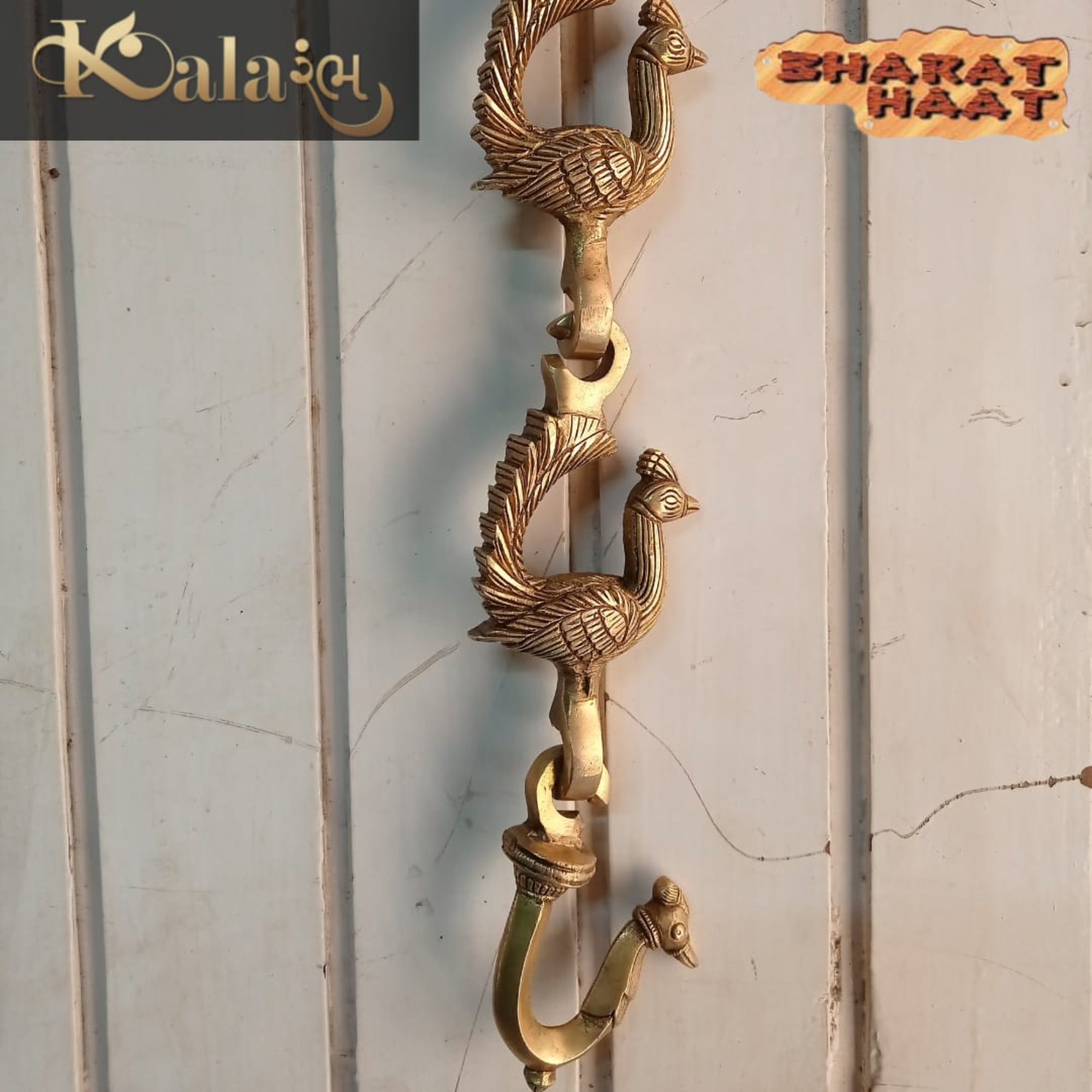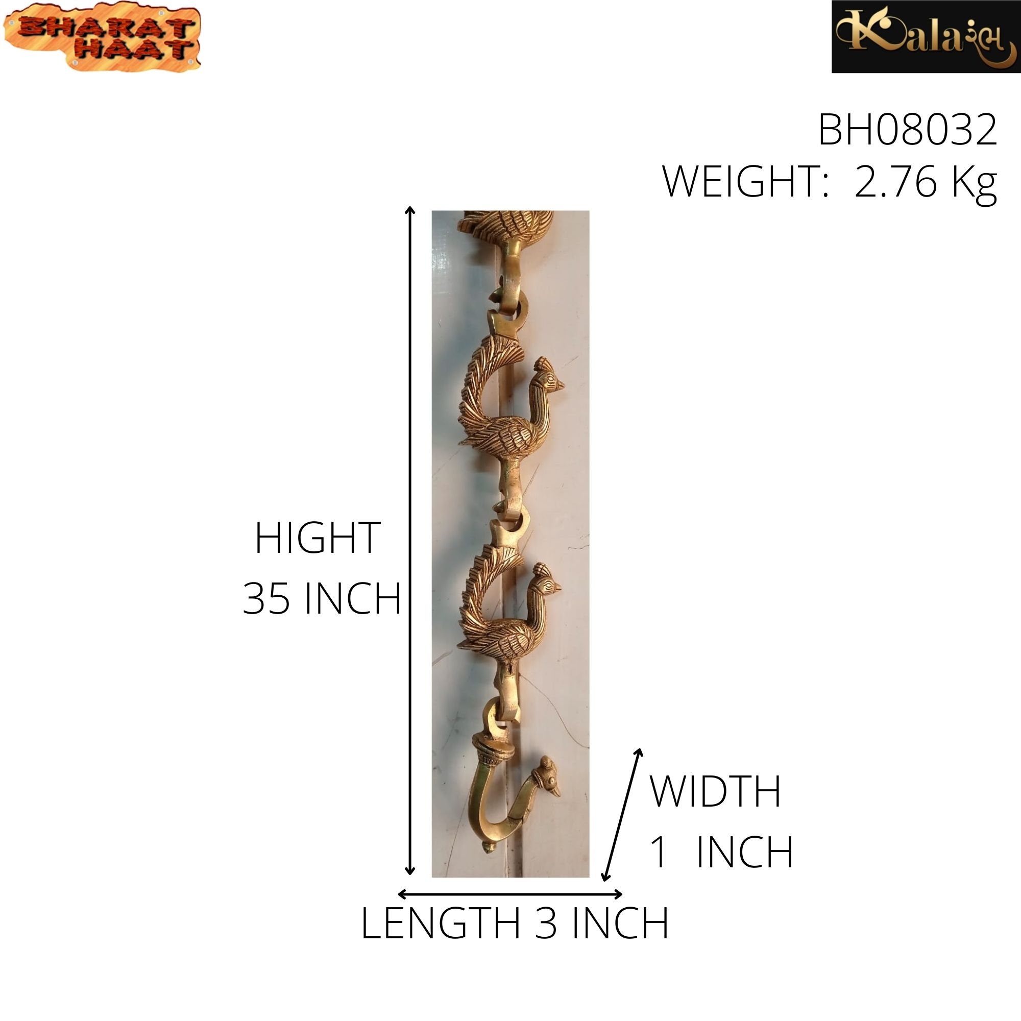 Design: Beautifully handcrafted brass chain featuring intricate peacock motifs symbolizing grace, beauty, and prosperity.