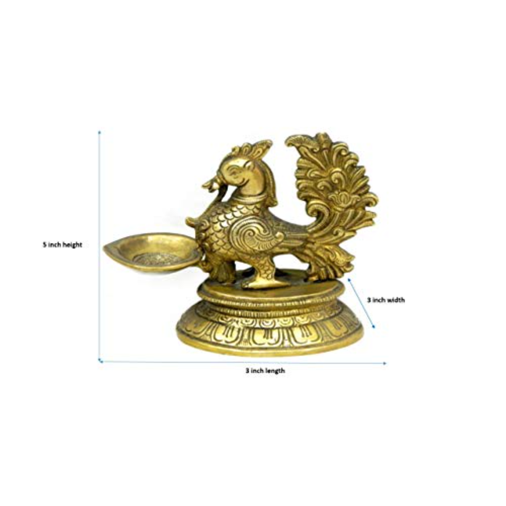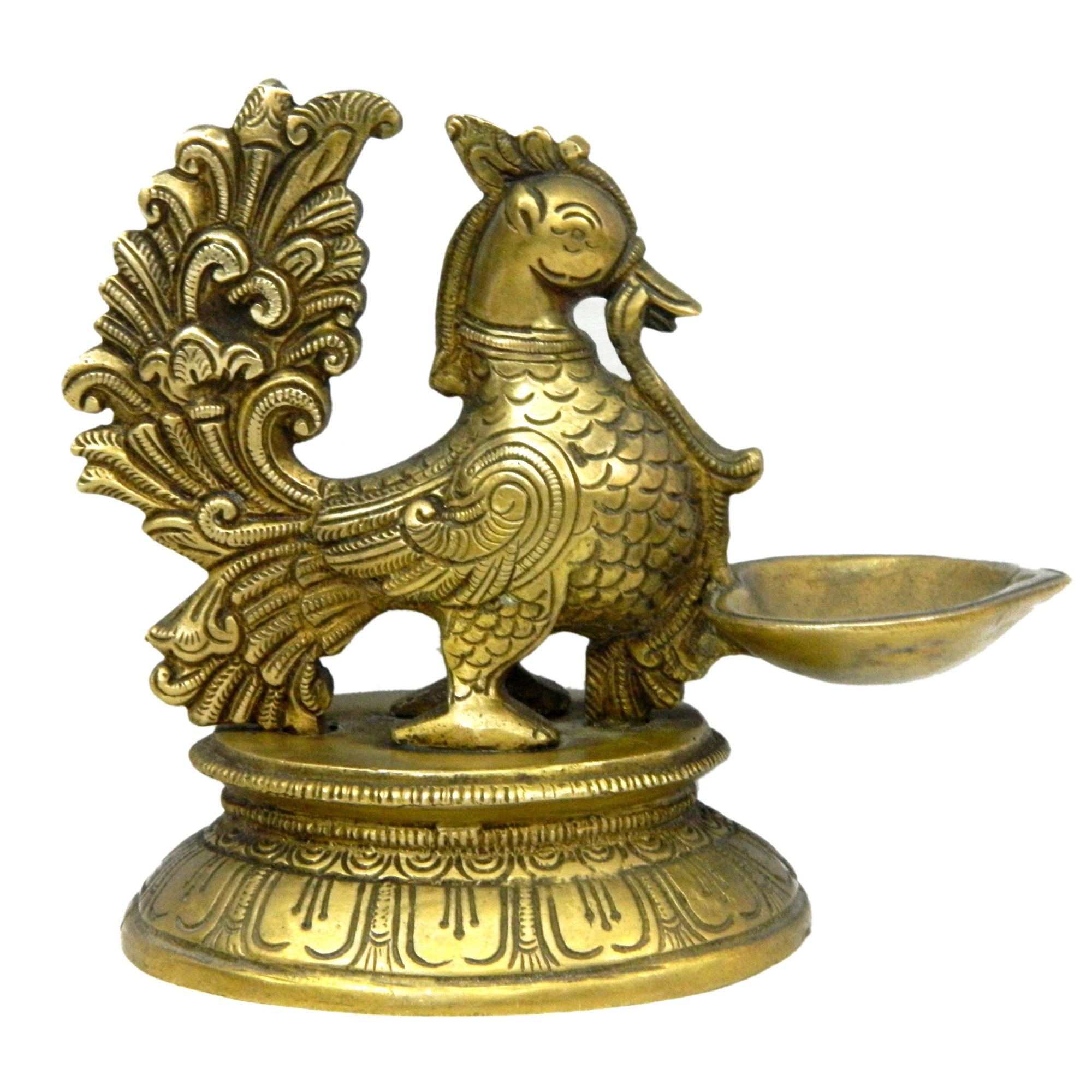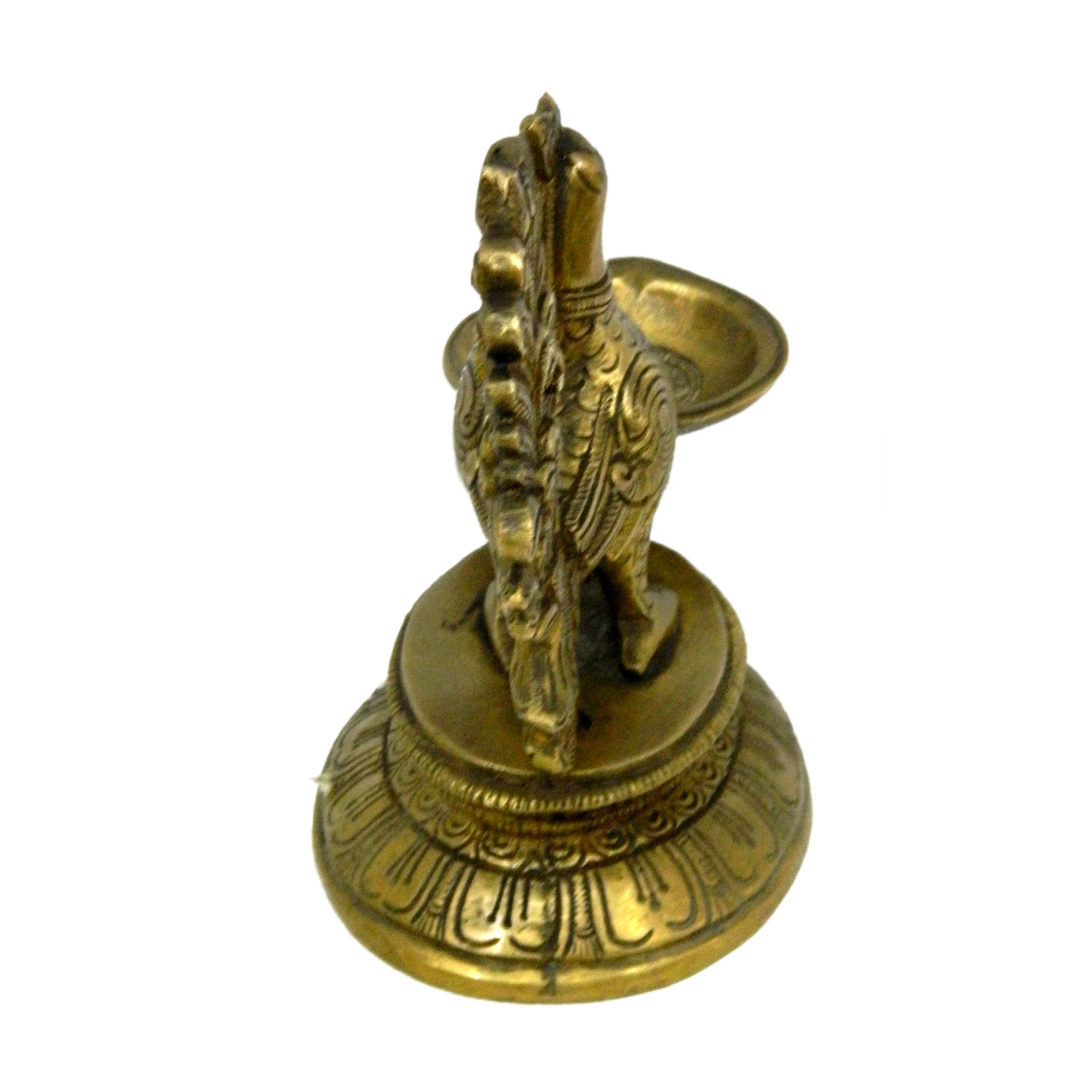 This handcrafted Brass Peacock Divi features a graceful peacock motif symbolizing beauty and spirituality. Made from solid brass with fine detailing and a rich antique finish, it is perfect for pooja rituals, temple decor, or as a decorative accent in your home.