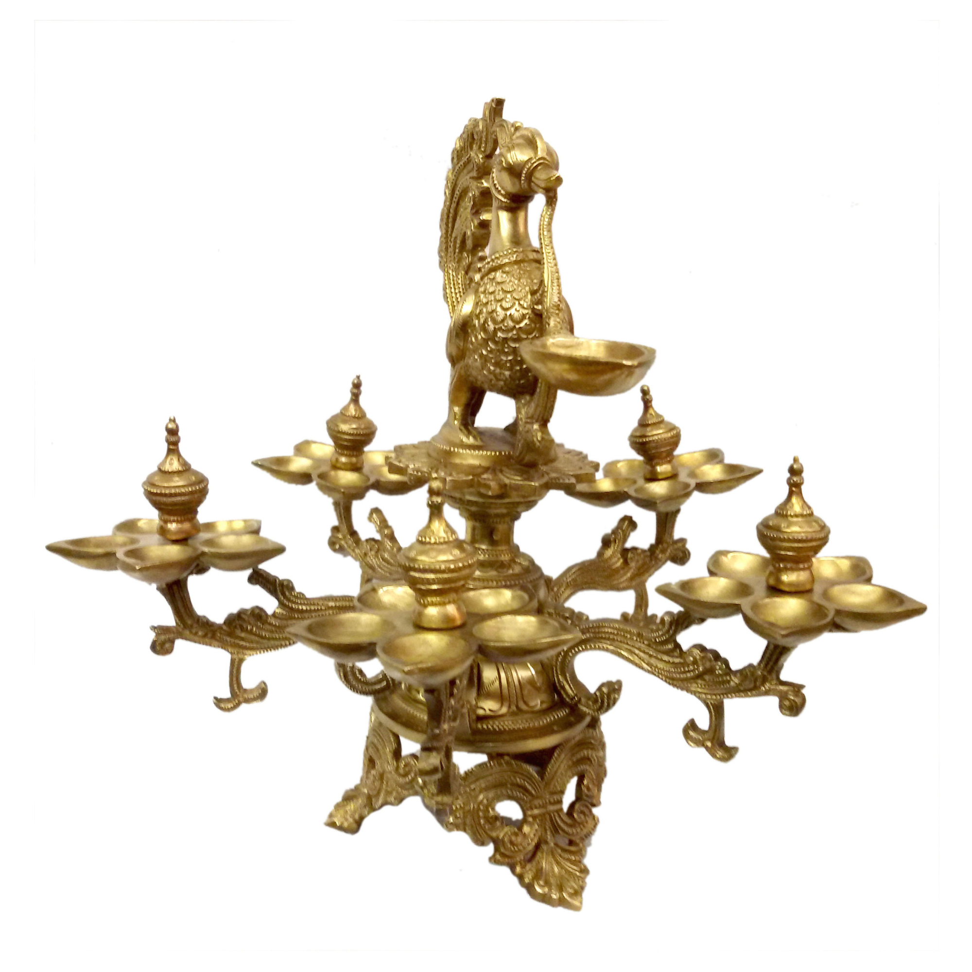 Elegant Brass Peacock Divi (oil lamp) with fine detailing
