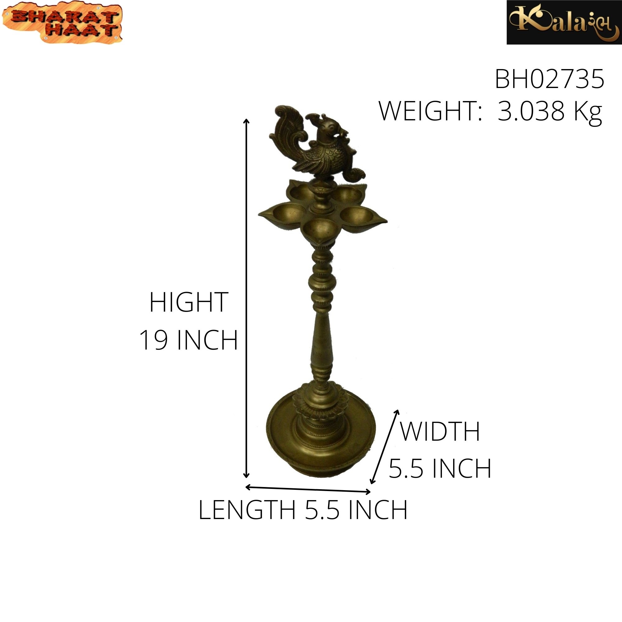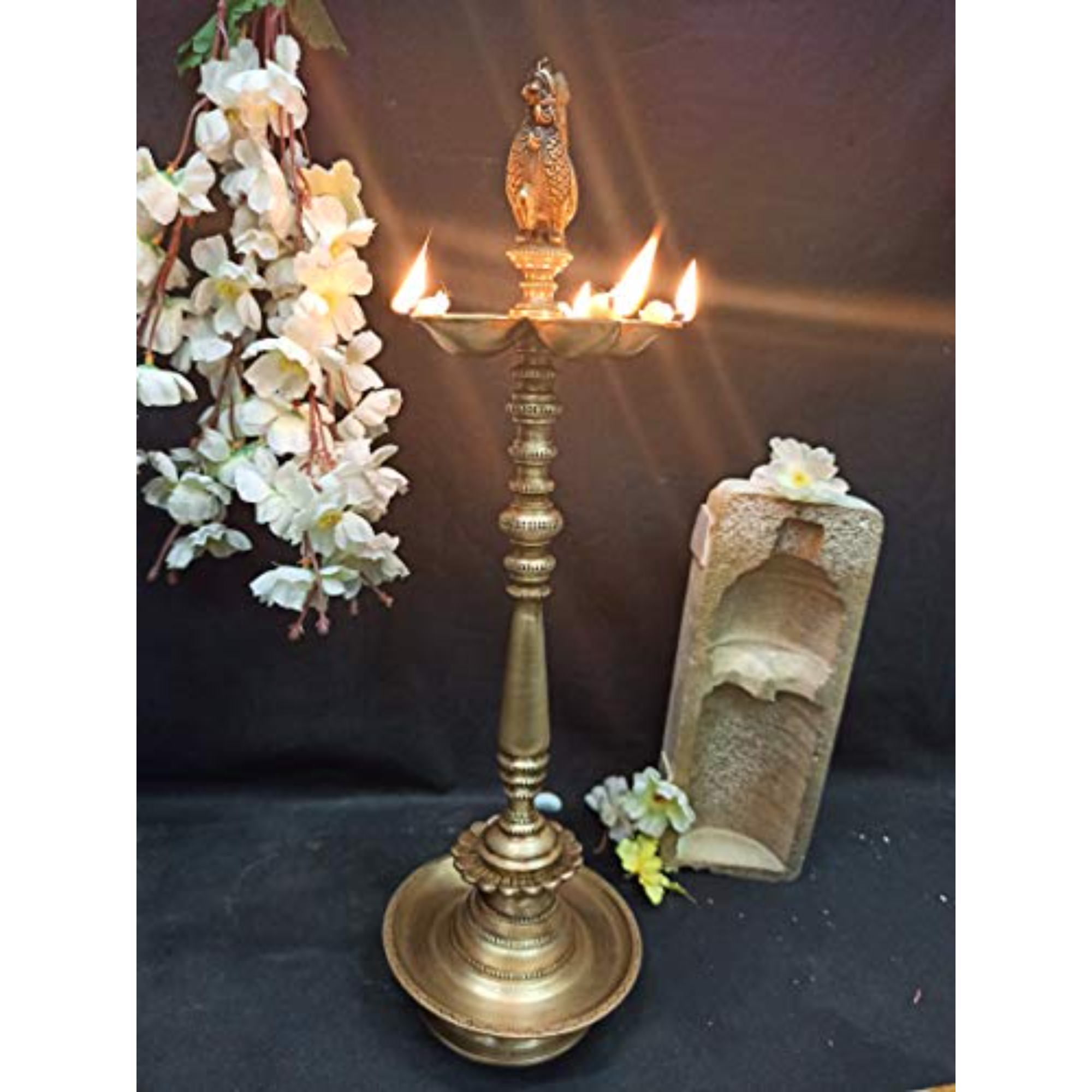 Design: Features a majestic peacock on a divi (oil lamp), intricately handcrafted with exquisite detailing to highlight traditional artistry.