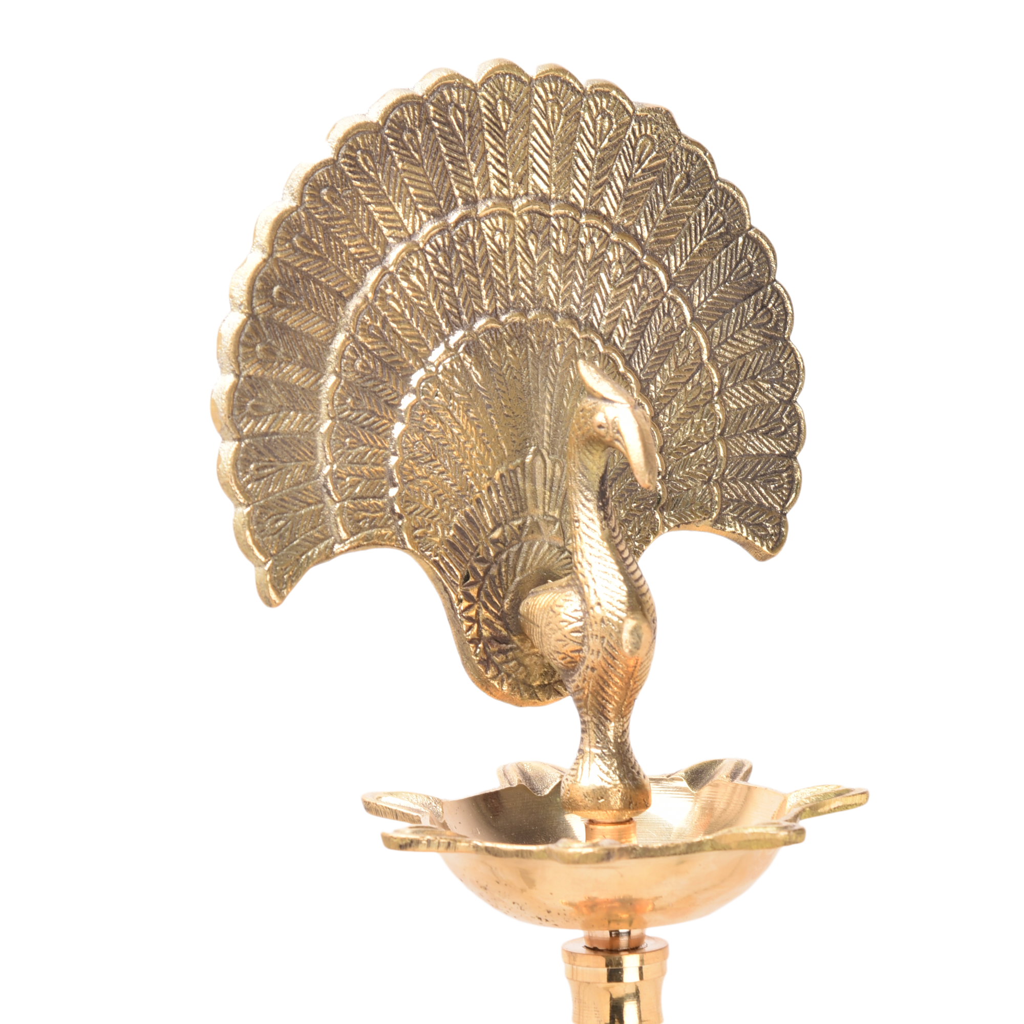 The Brass Peacock Five Step Divi is an exquisite handcrafted oil lamp designed with traditional artistry. Its five-step arrangement and elegant peacock motif make it a perfect addition for temples, festive rituals, or classic home décor.