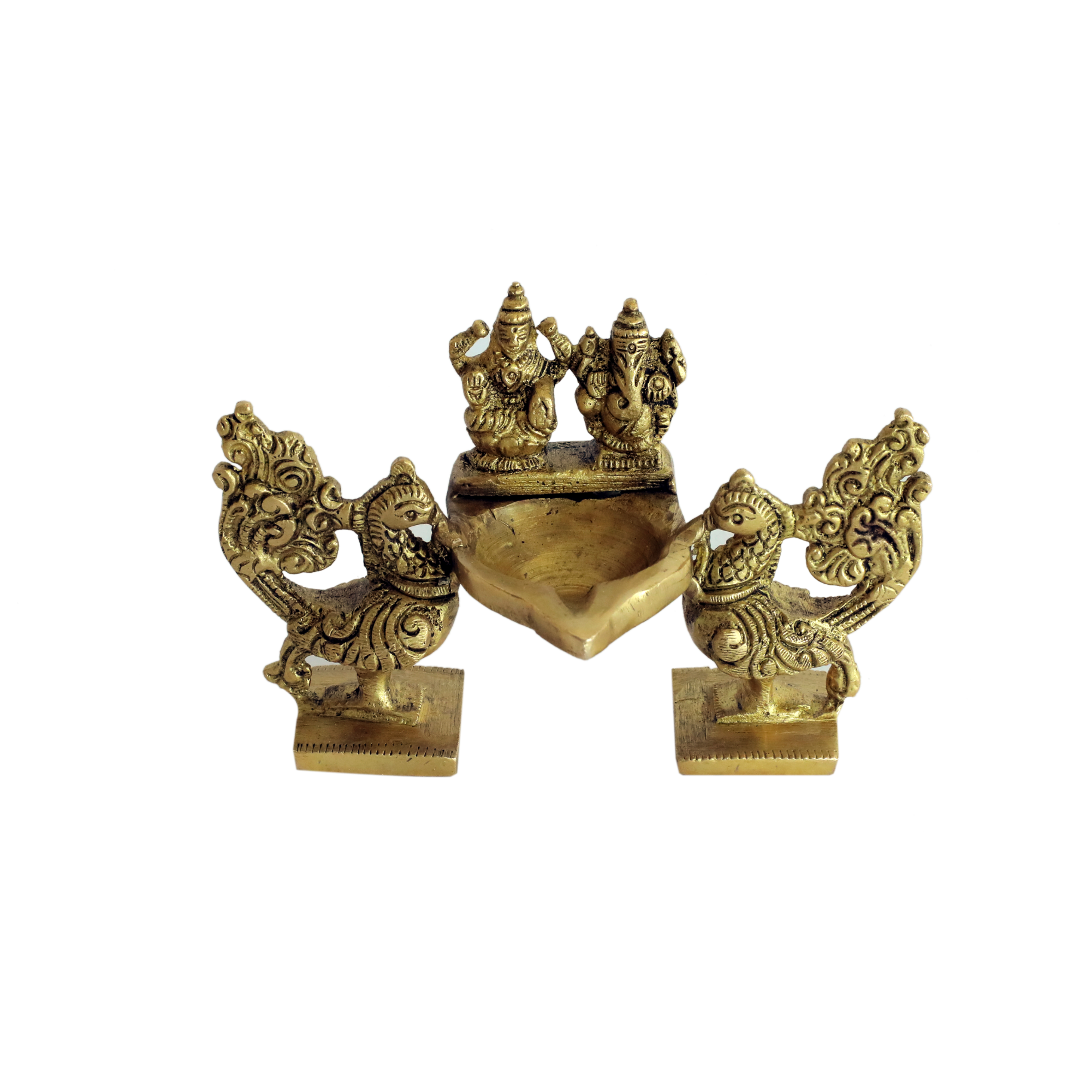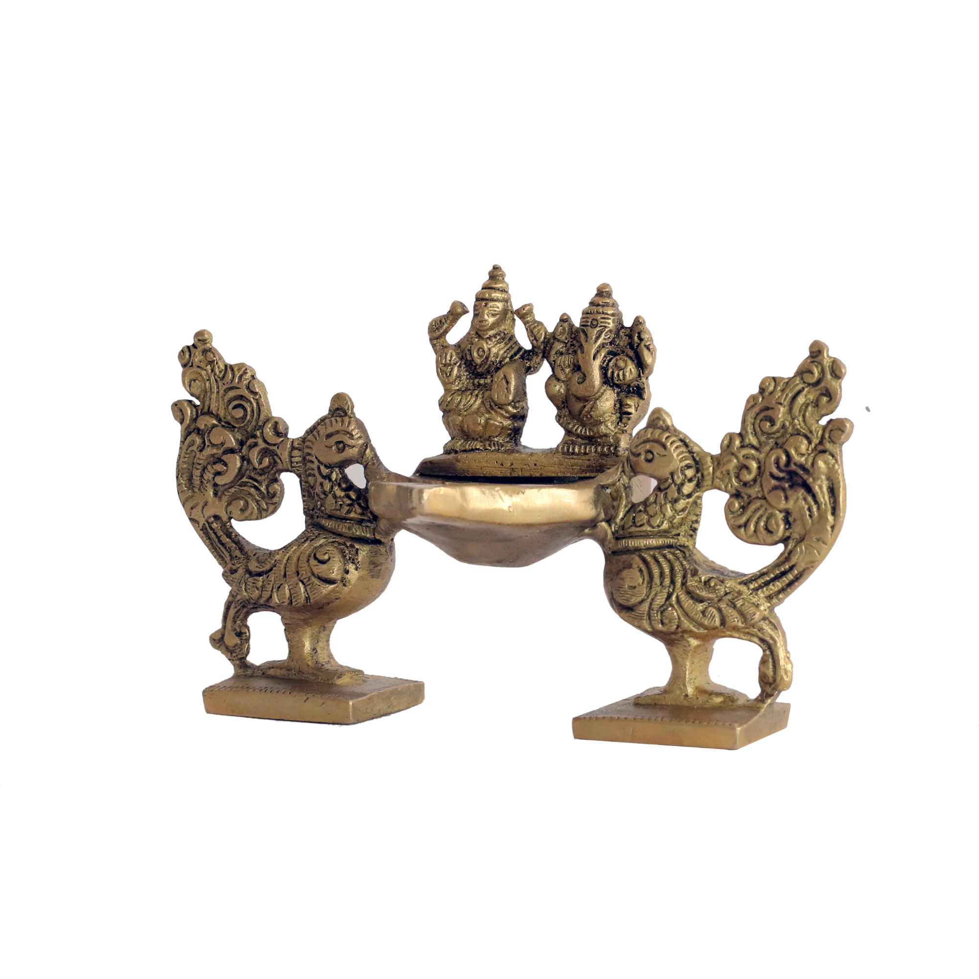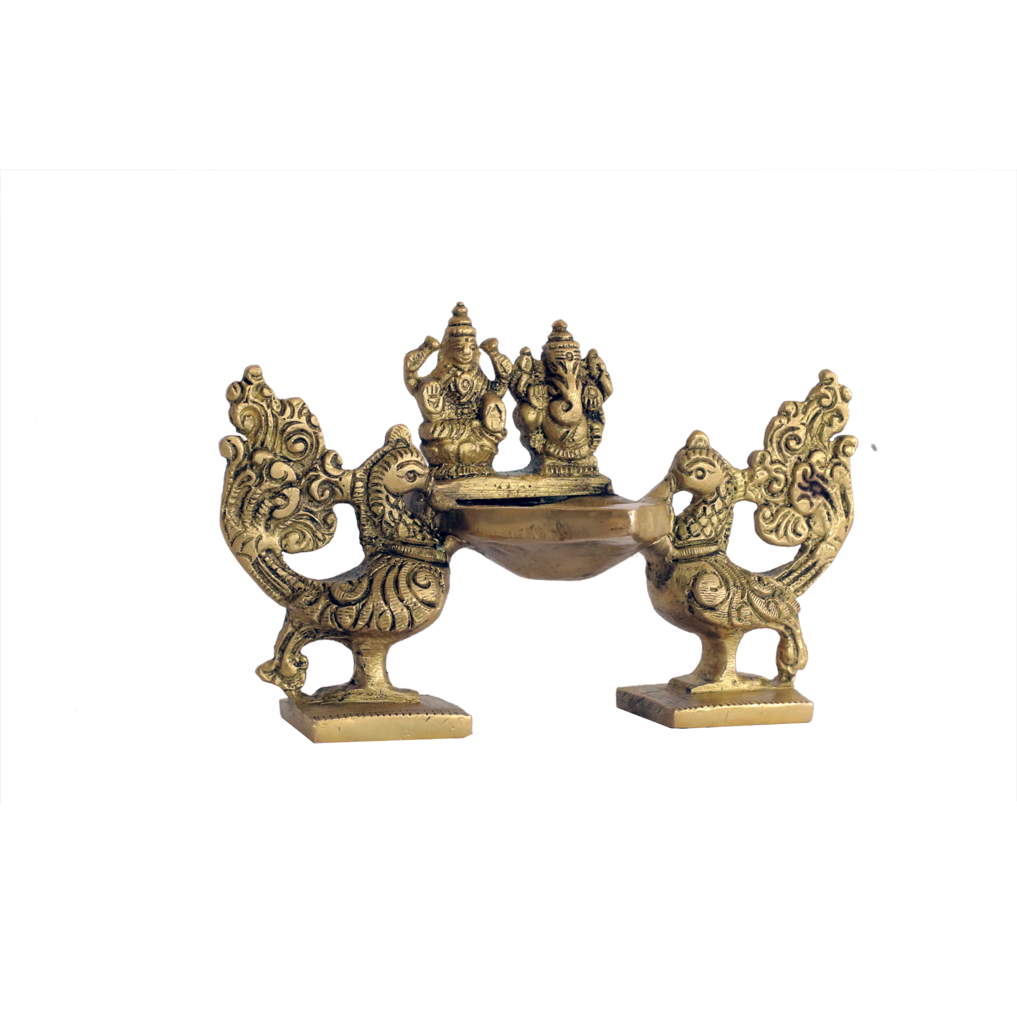 Brass Peacock Ganesha Laxmi Divi KBH00818