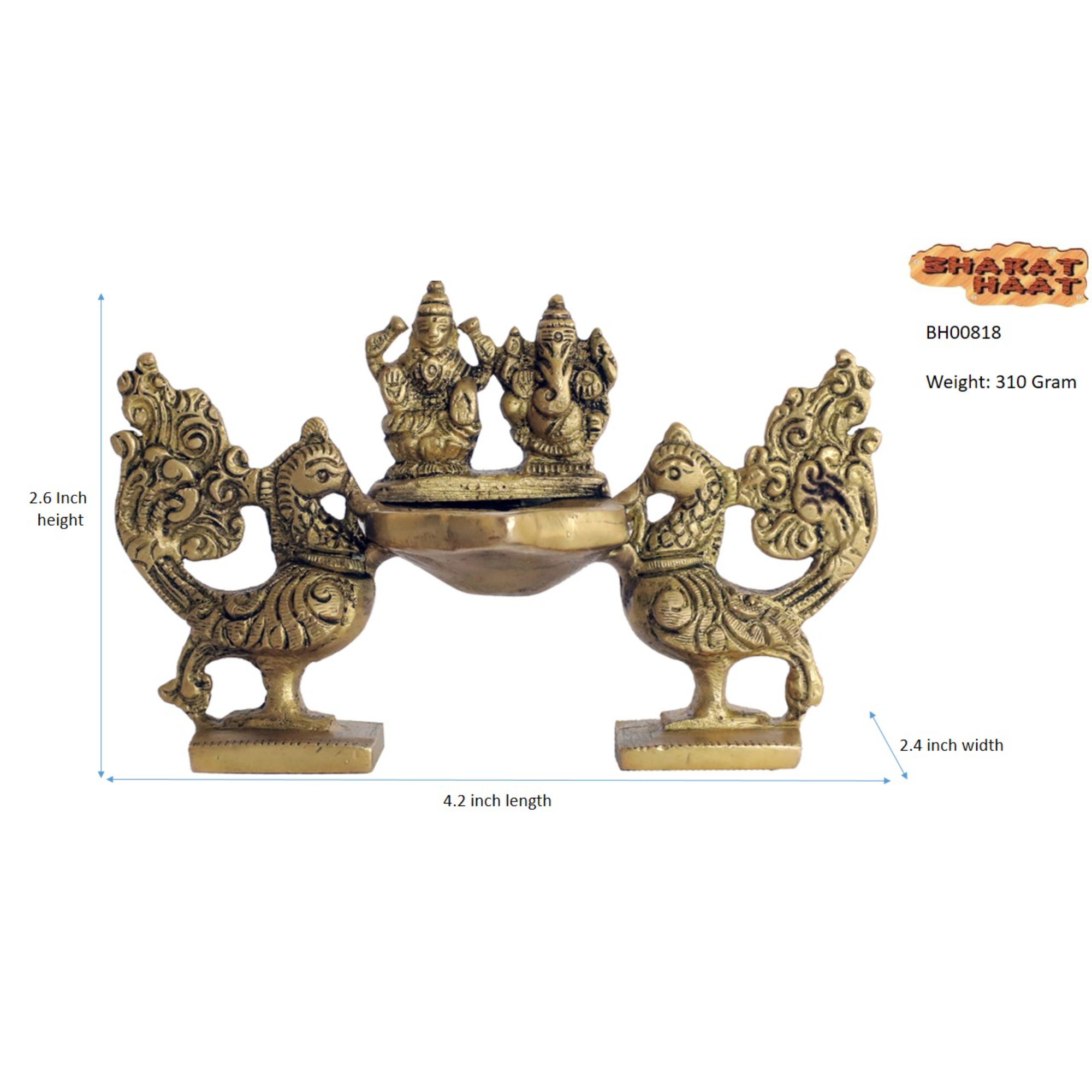 Beautifully crafted Brass Peacock Ganesha Laxmi Divi with fine carving. A symbol of prosperity and good fortune, perfect for temples and home decor.