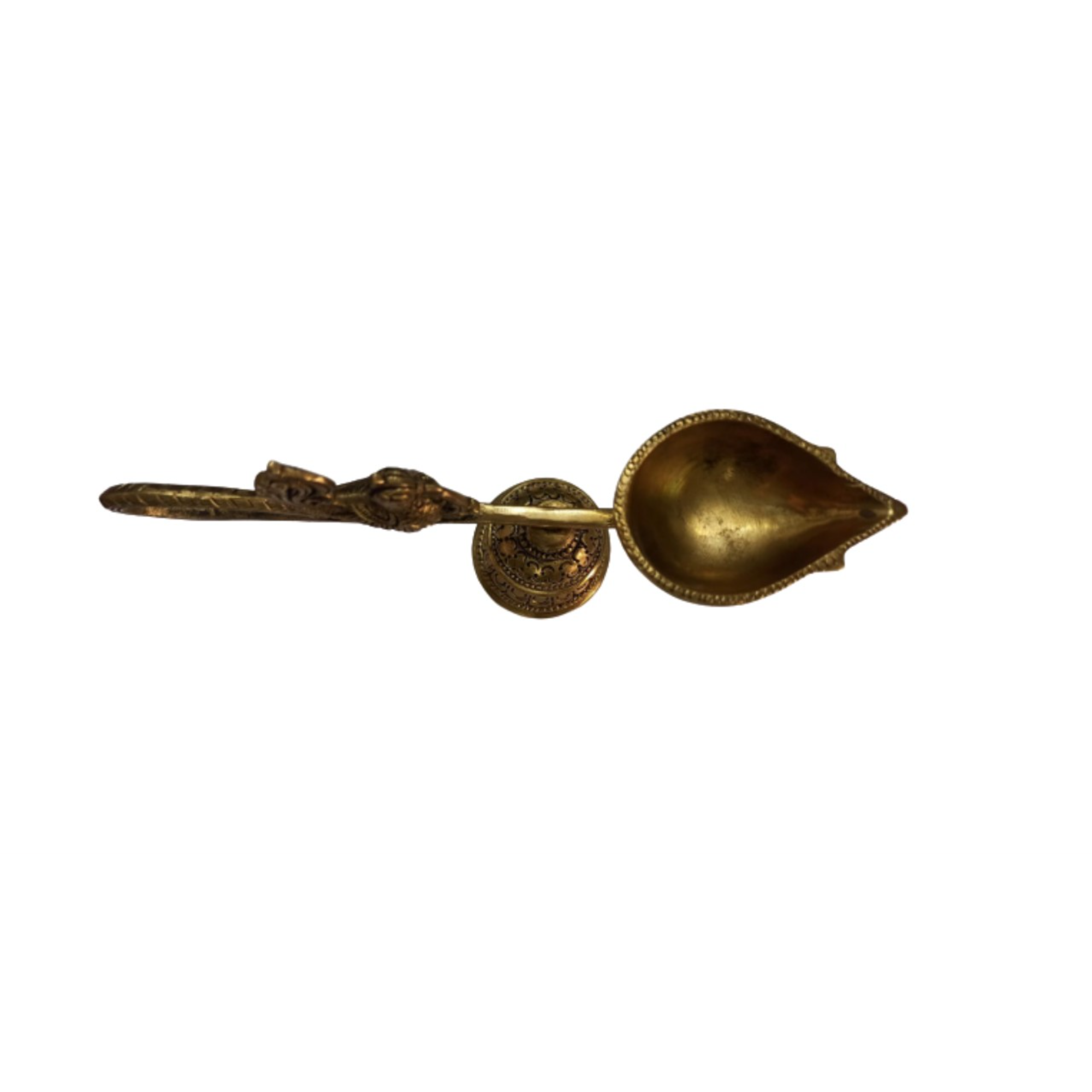 This Brass Peacock Handle Divi is a beautifully handcrafted oil lamp made from solid brass. Measuring 8.5 x 2 x 3.5 inches and weighing 490 grams, it features an elegant peacock design, perfect for pooja rooms, home décor, or gifting.