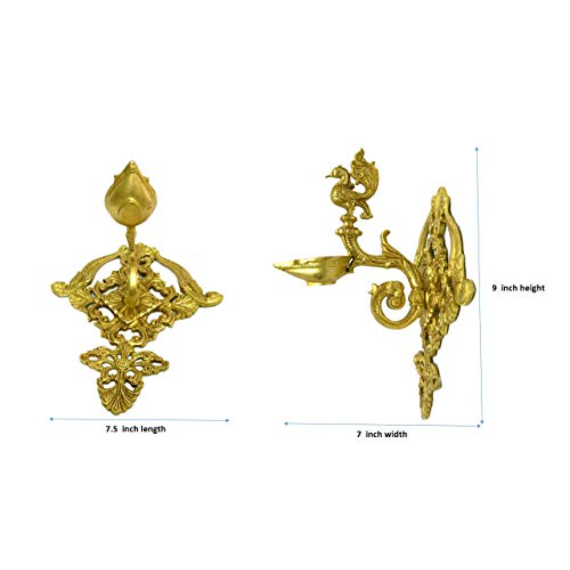 Handcrafted Brass Peacock Hanging Divi for elegant home décor and spiritual spaces. Size: 7.5 x 7 x 9 inches, weight: 1.05 Kg, featuring a beautifully detailed peacock design.