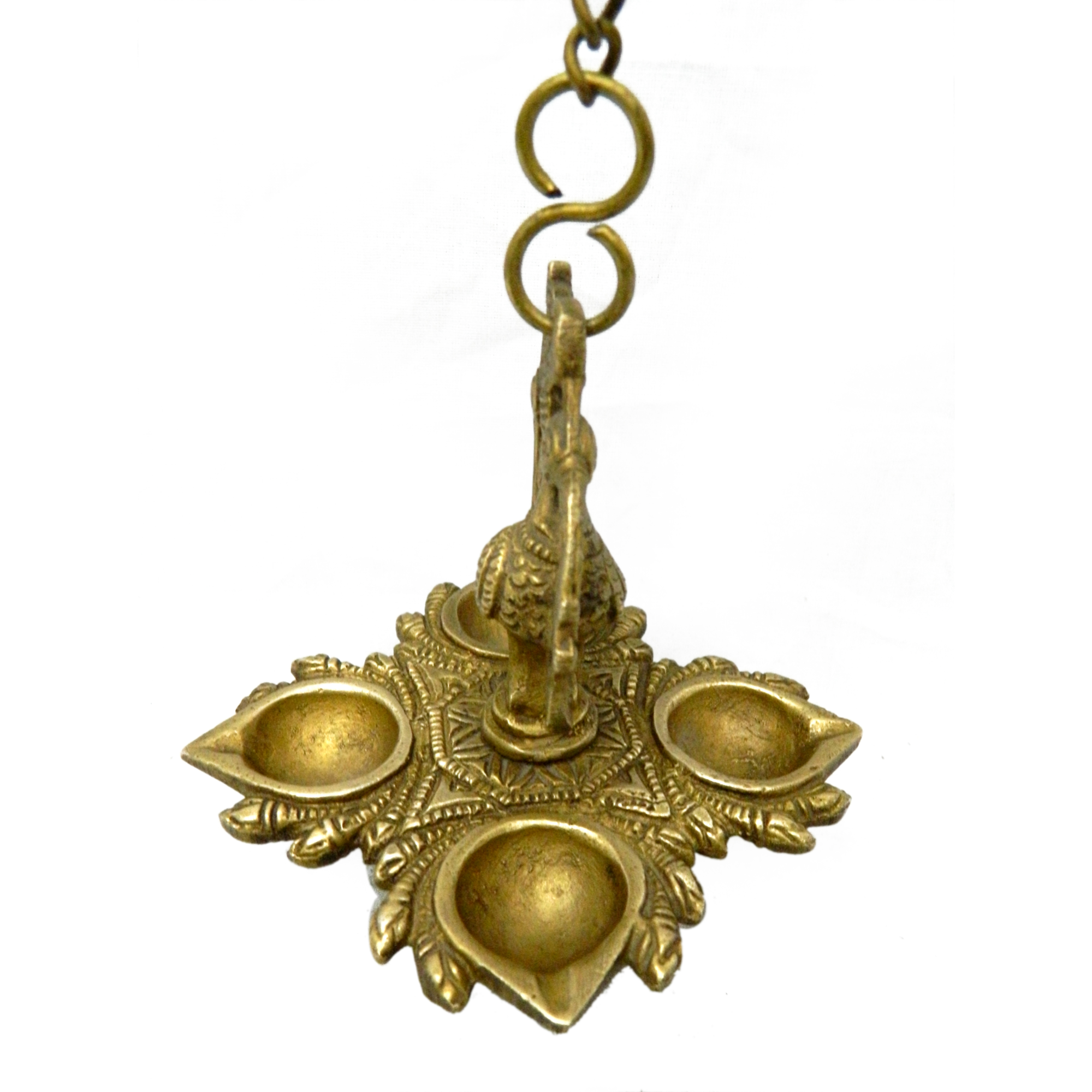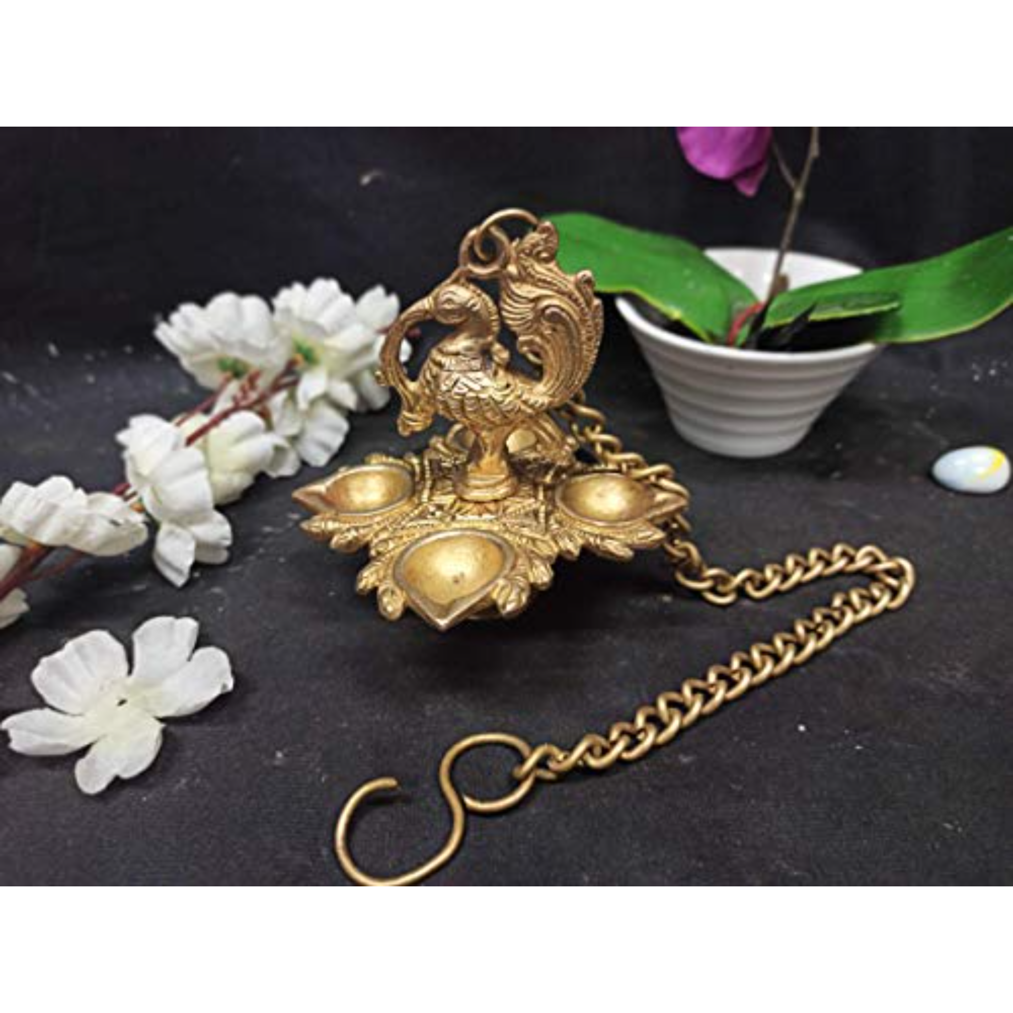 Handcrafted Brass Peacock Hanging Divi with detailed peacock design, perfect for enhancing the aesthetic and elegance of walls in any space.