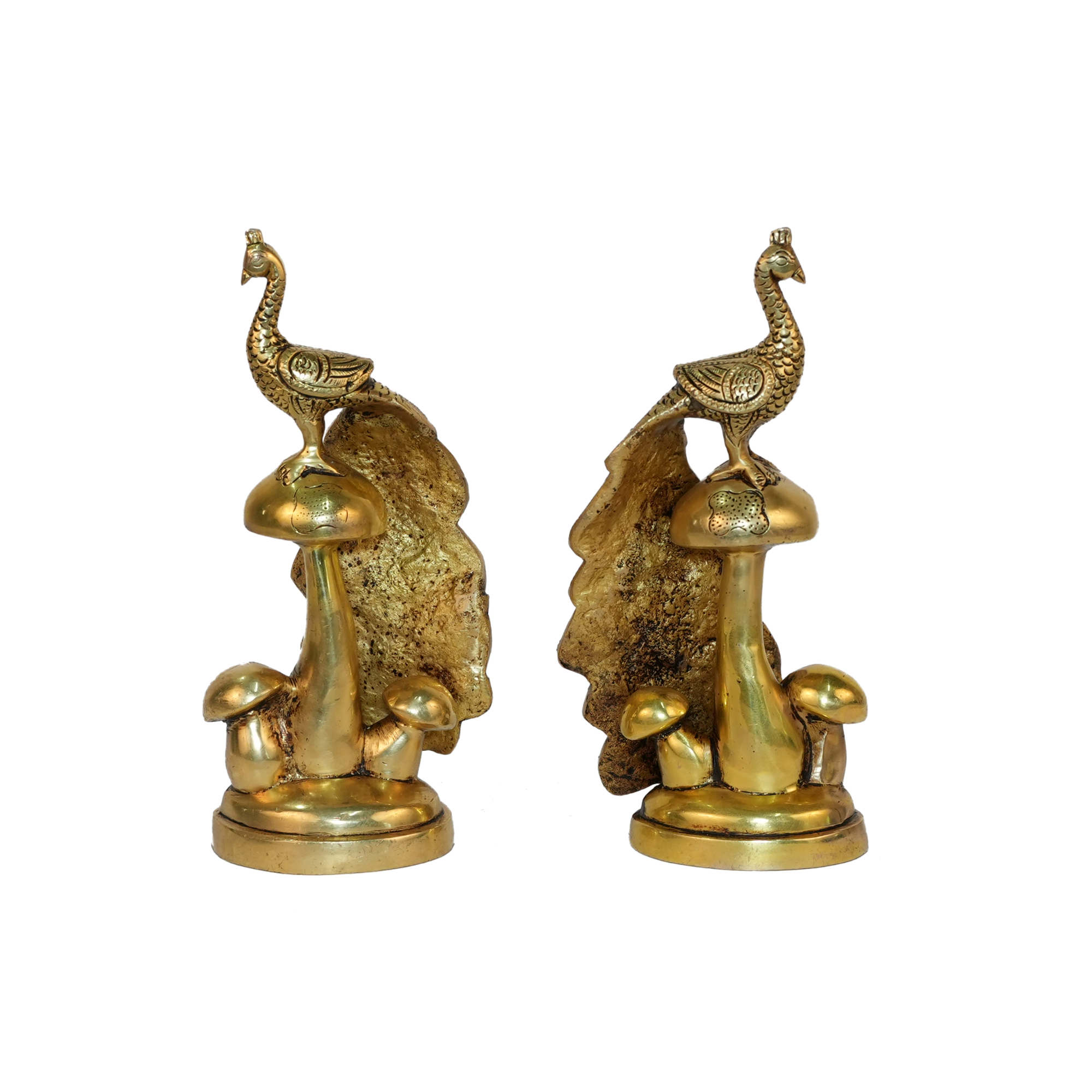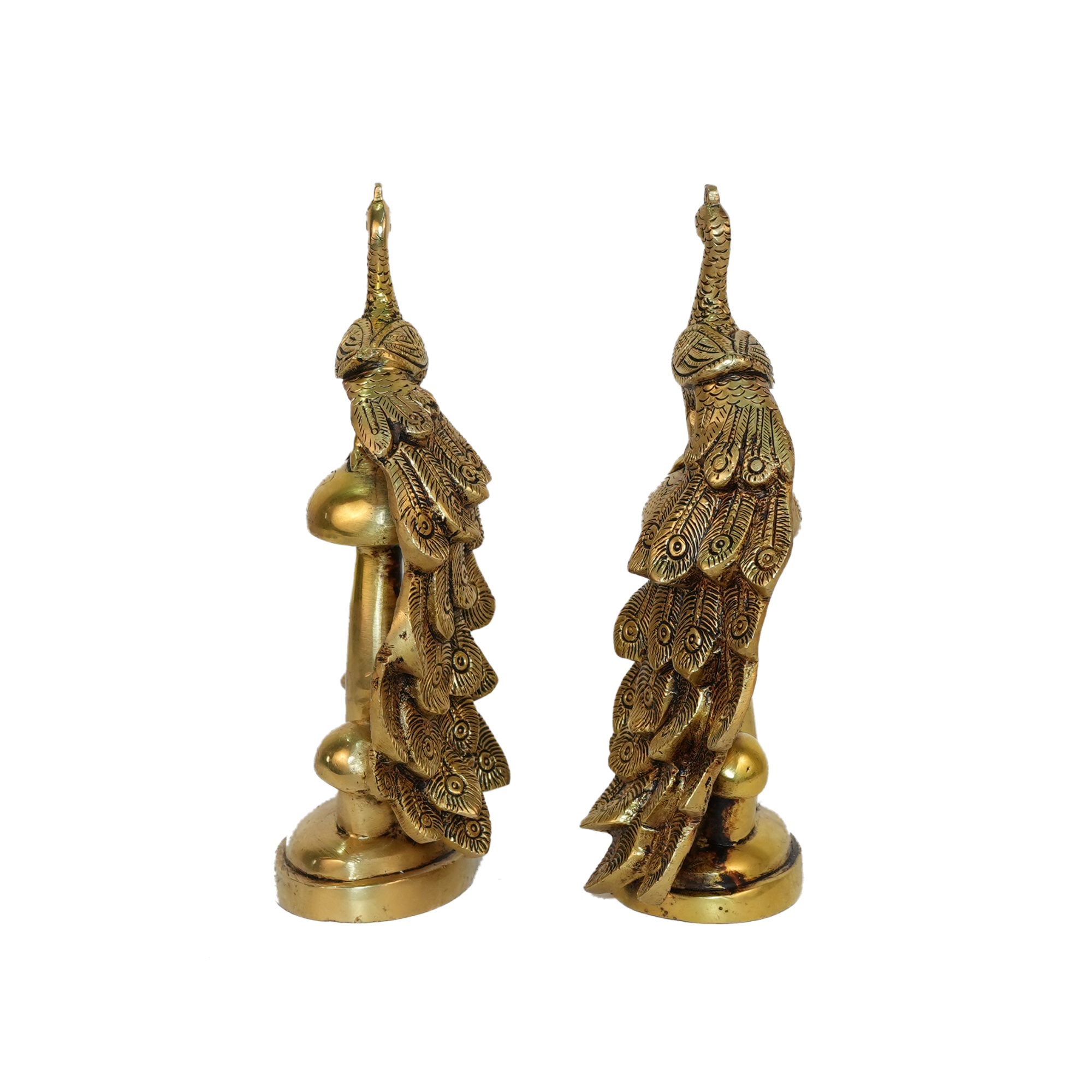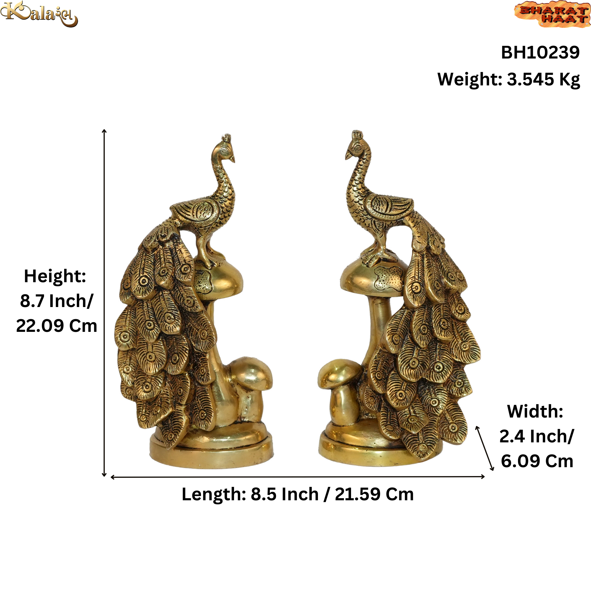 Elegant Brass Peacock Pair statue, 1 Pc, size 8.5 x 2.4 x 8.7 Inch, 3.55 Kg. Ideal for shelves, living rooms, or as a decorative gift piece.