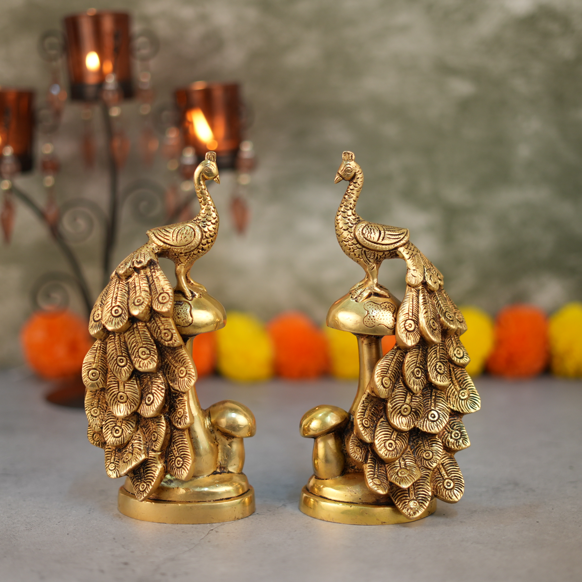 Design: Exquisitely crafted peacock pair showcasing intricate feather detailing and graceful poses