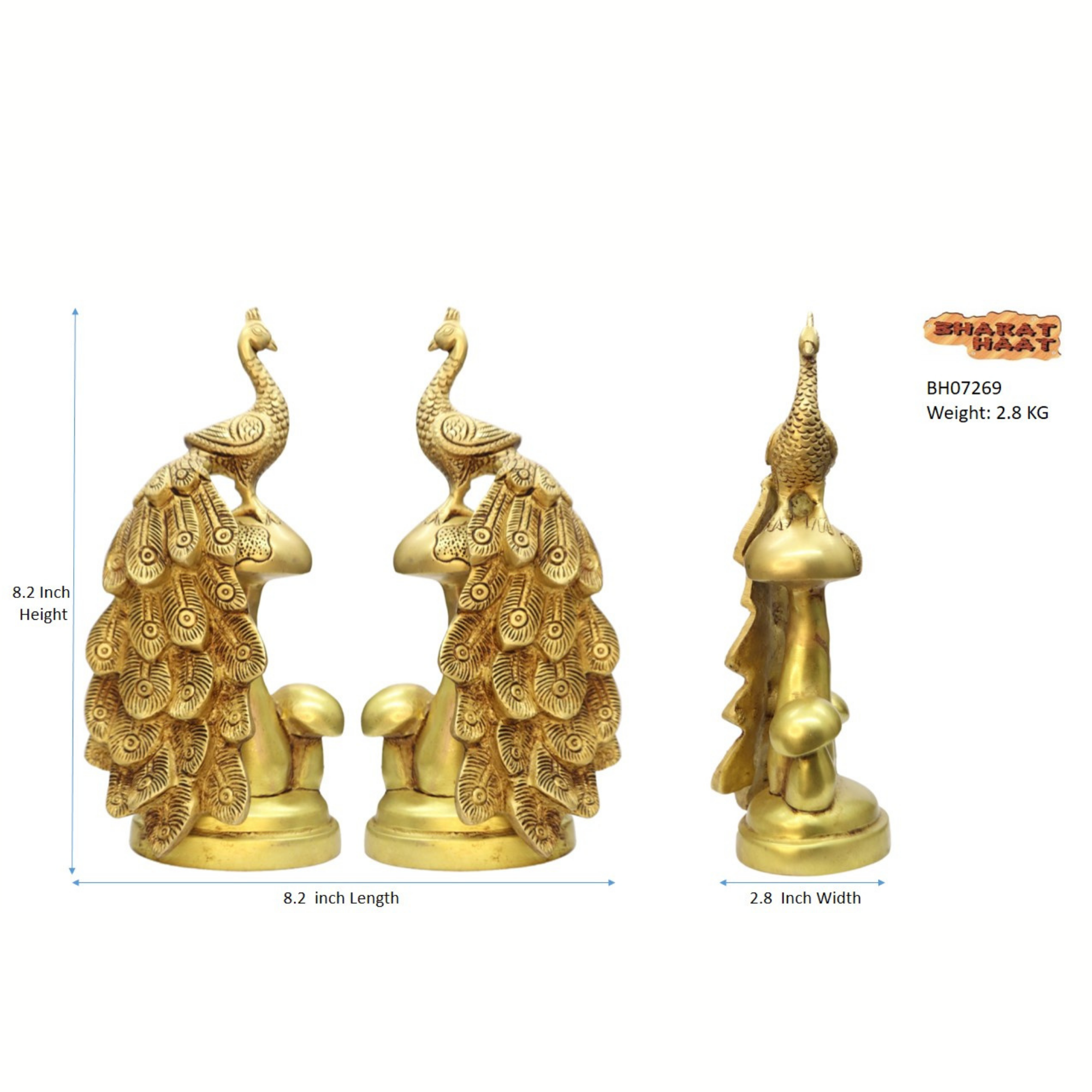 Beautifully crafted Brass Peacock Pair showcasing two peacocks in intricate detail. This 8.2-inch, 2.8-kg decorative piece is perfect for home, office, or as a unique gift, symbolizing beauty, grace, and prosperity.