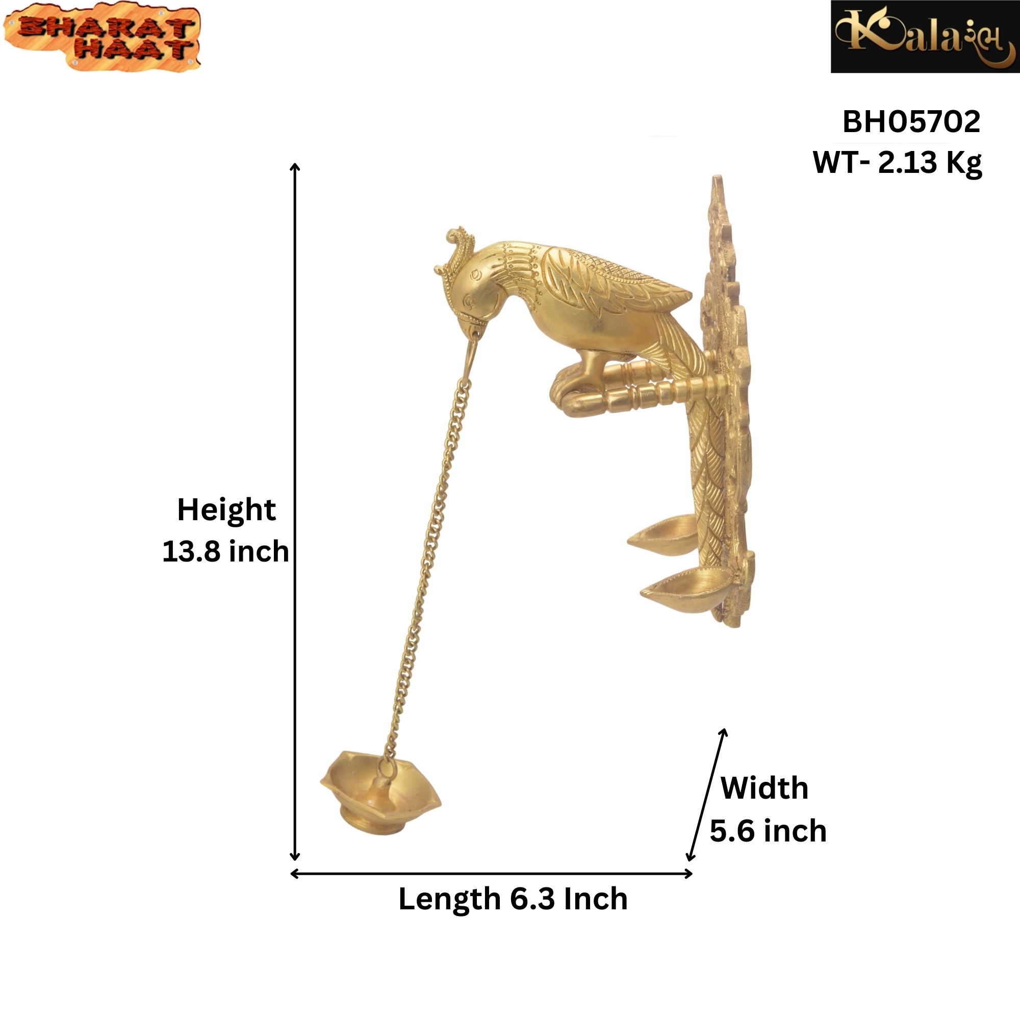 Brass Peacock with Hanging Divi – Handcrafted Brass Hanging Oil Lamp for Home & Temple