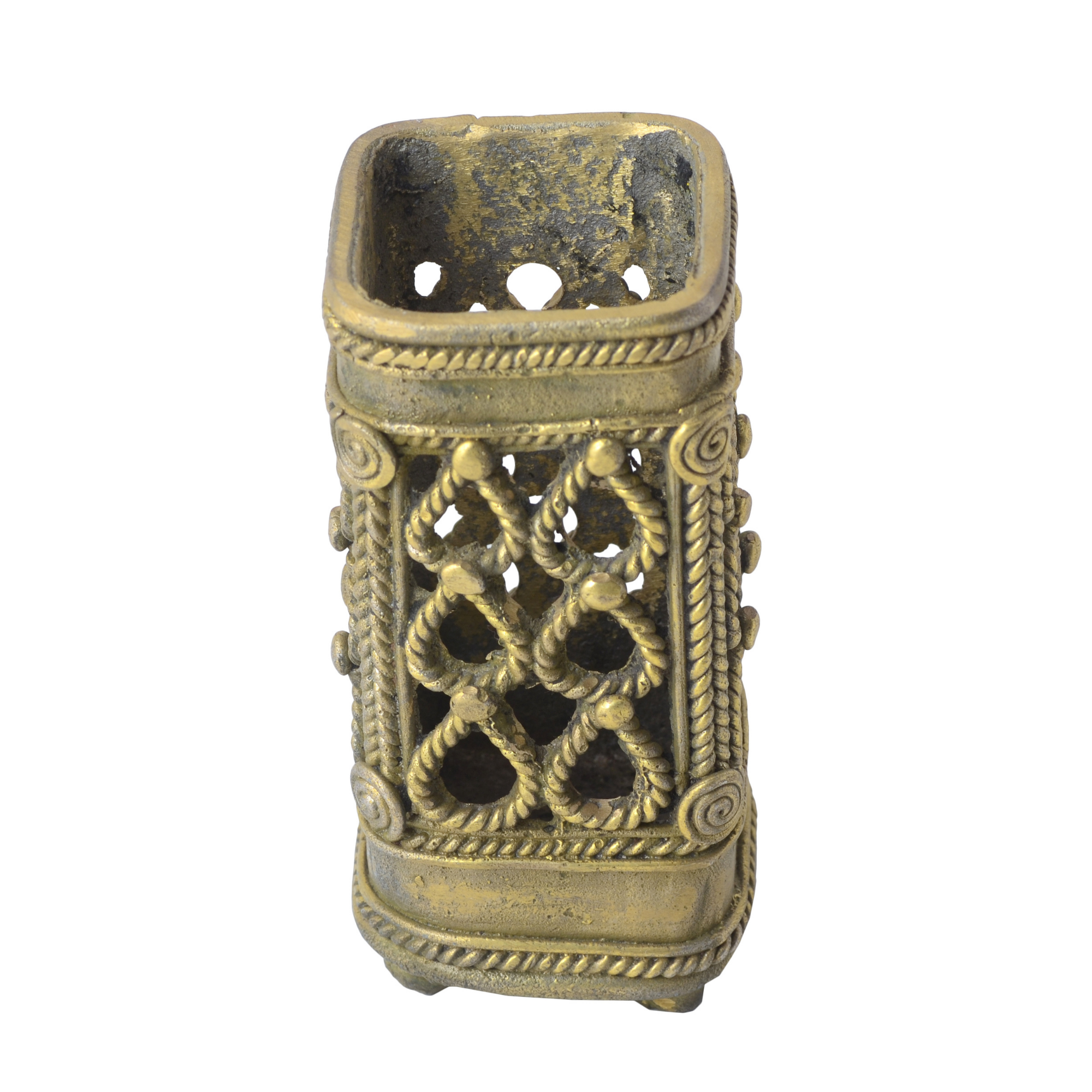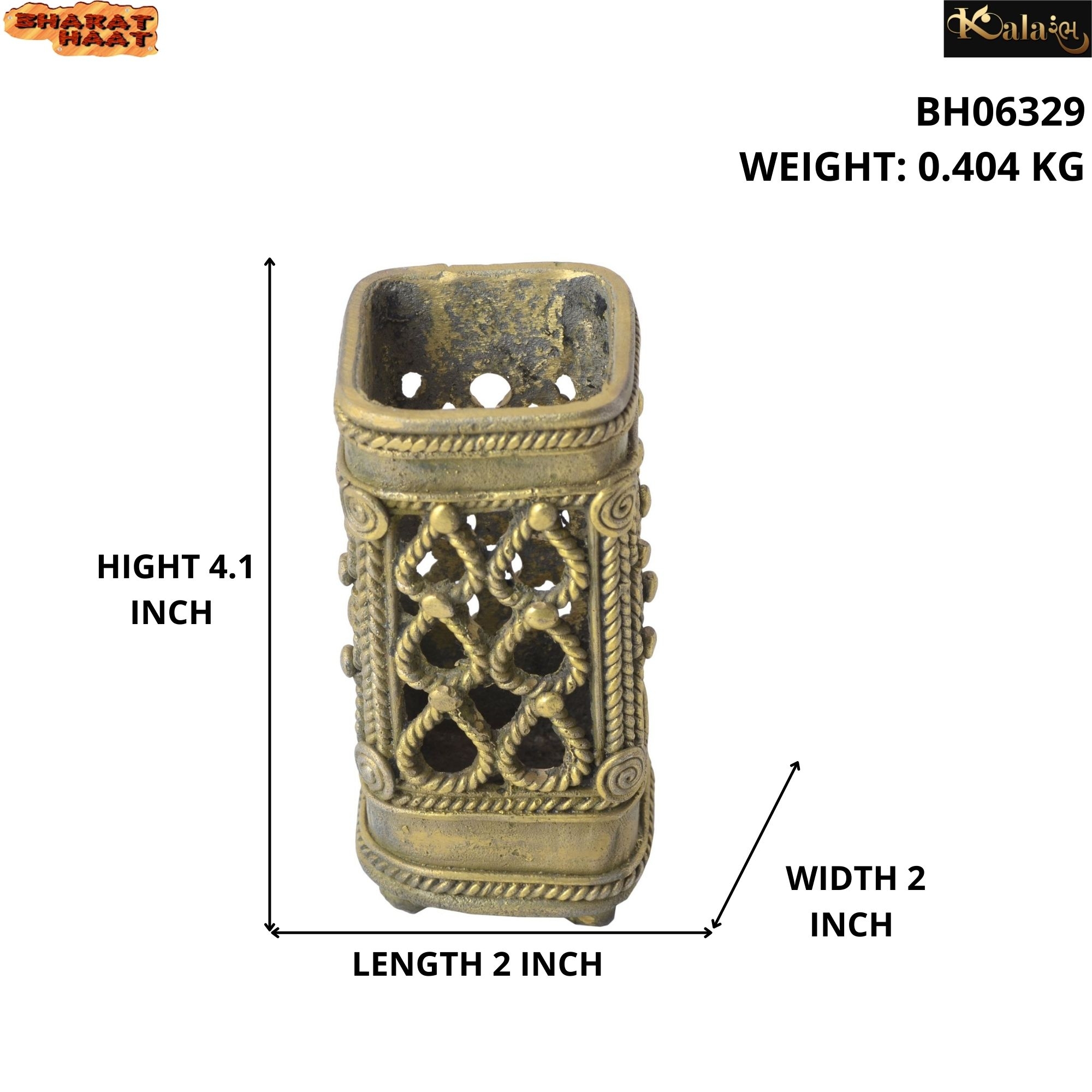 Elegant Brass Pen Stand handcrafted from solid brass for timeless appeal. Ideal for desks, workspaces, or gifting. Size: 2 x 2 x 4.1 Inch, Weight: 404 Gram, 1 Pc.