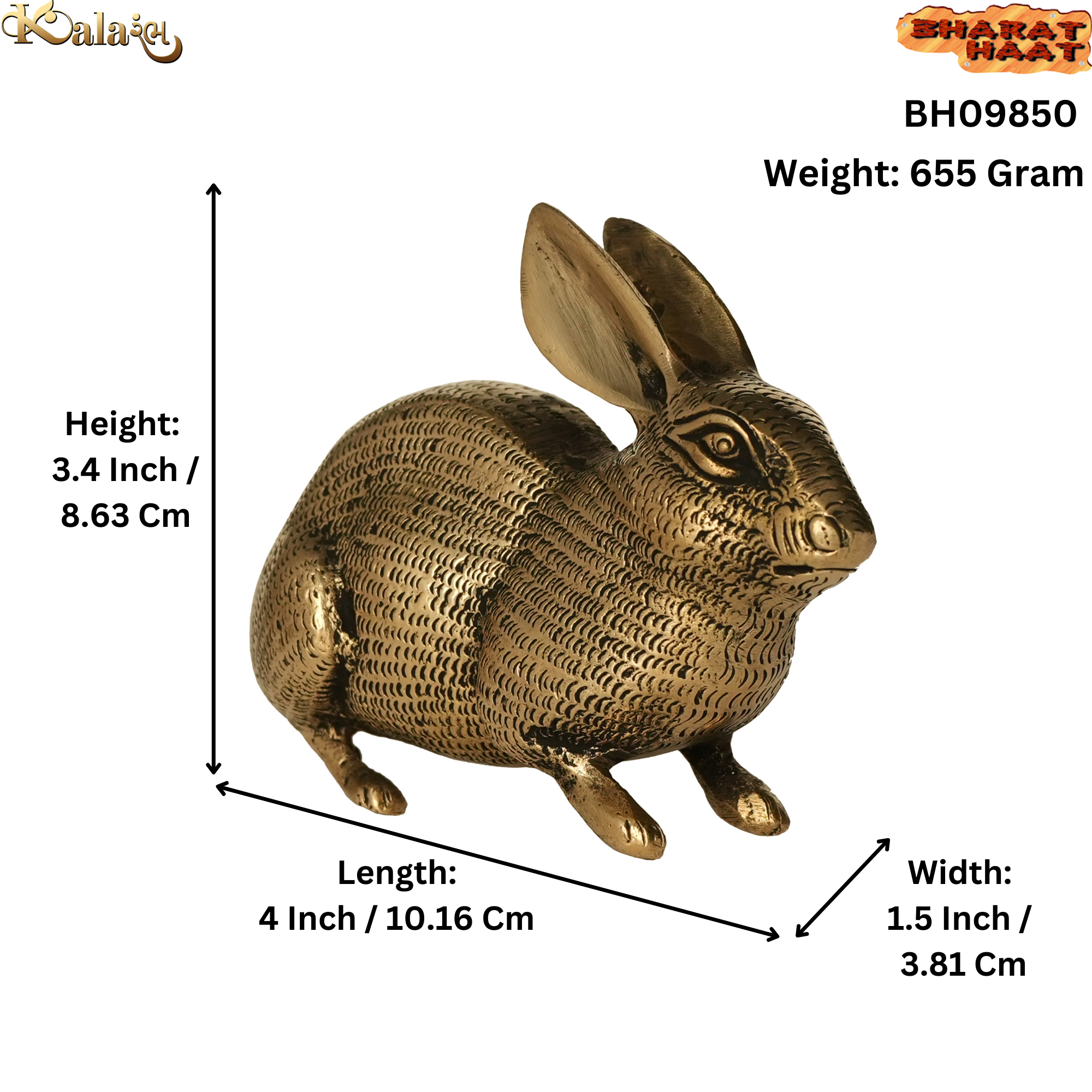Design: Beautifully crafted brass rabbit figurine showcasing lifelike details and fine artistry