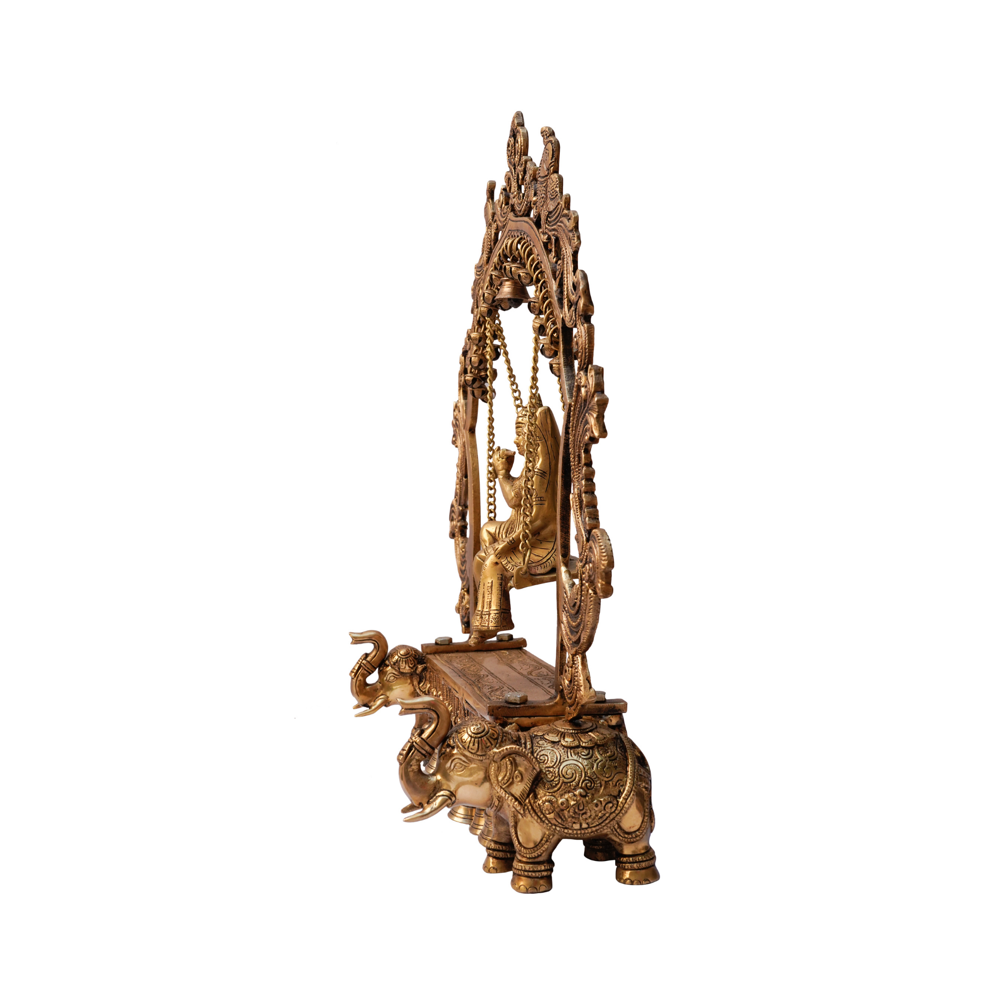 Elegant Brass Radha Krishna Jula, 19 x 6 x 20 inches, 11.48 Kg – a handcrafted swing idol capturing the love and devotion of Radha and Krishna, ideal for temples and home décor.