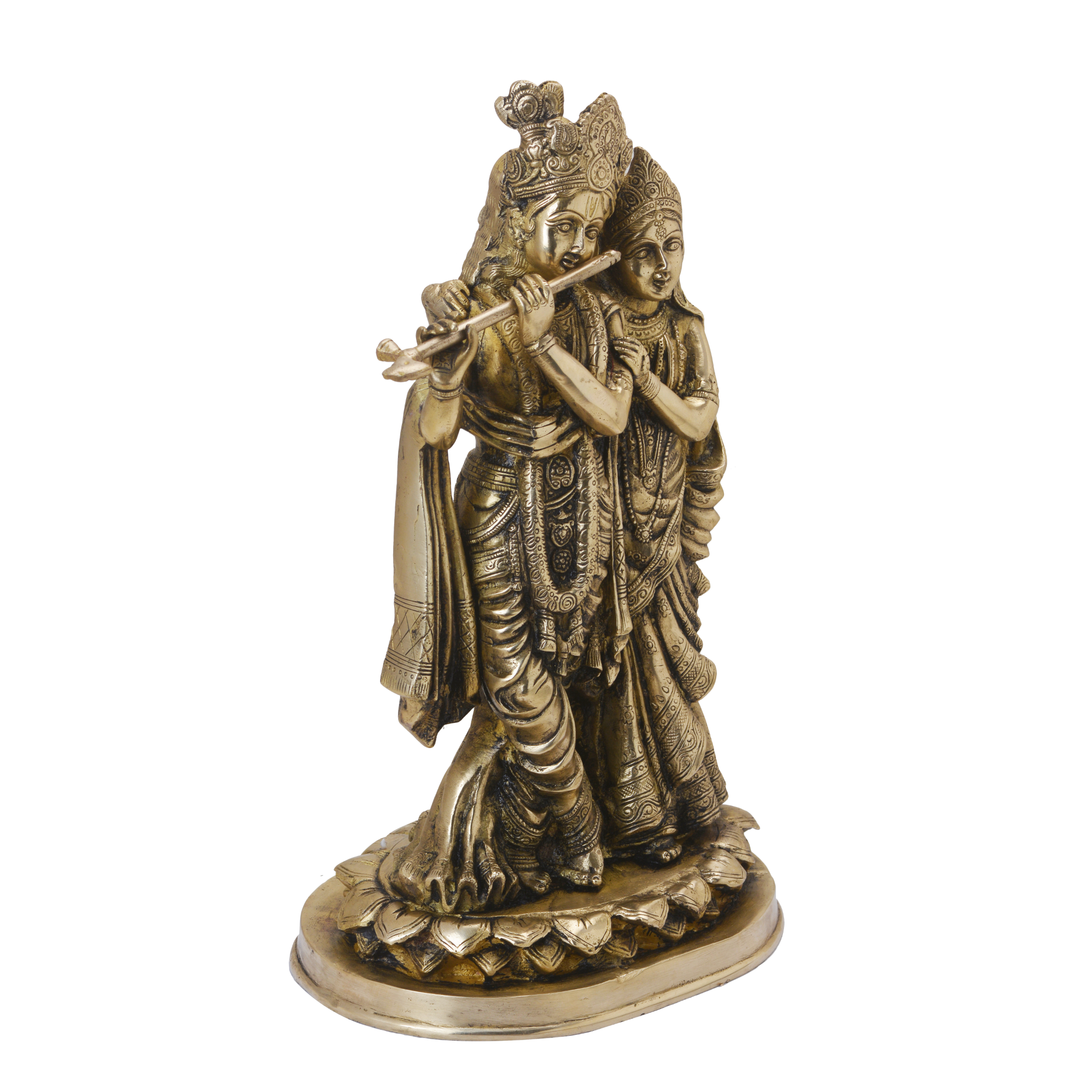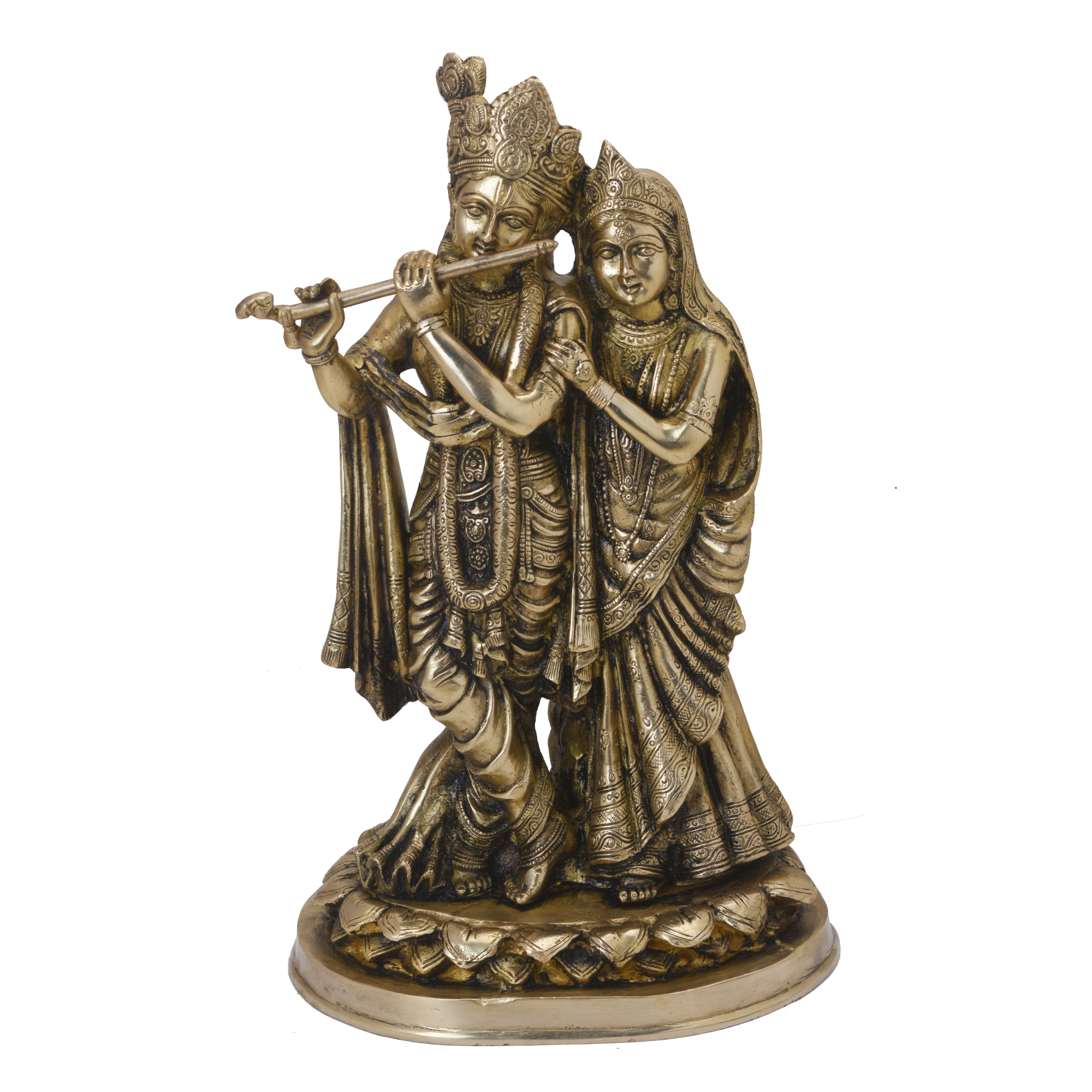 Design: Exquisitely handcrafted Brass Radha Krishna statue, depicting the eternal love and divine bond between Radha and Krishna.