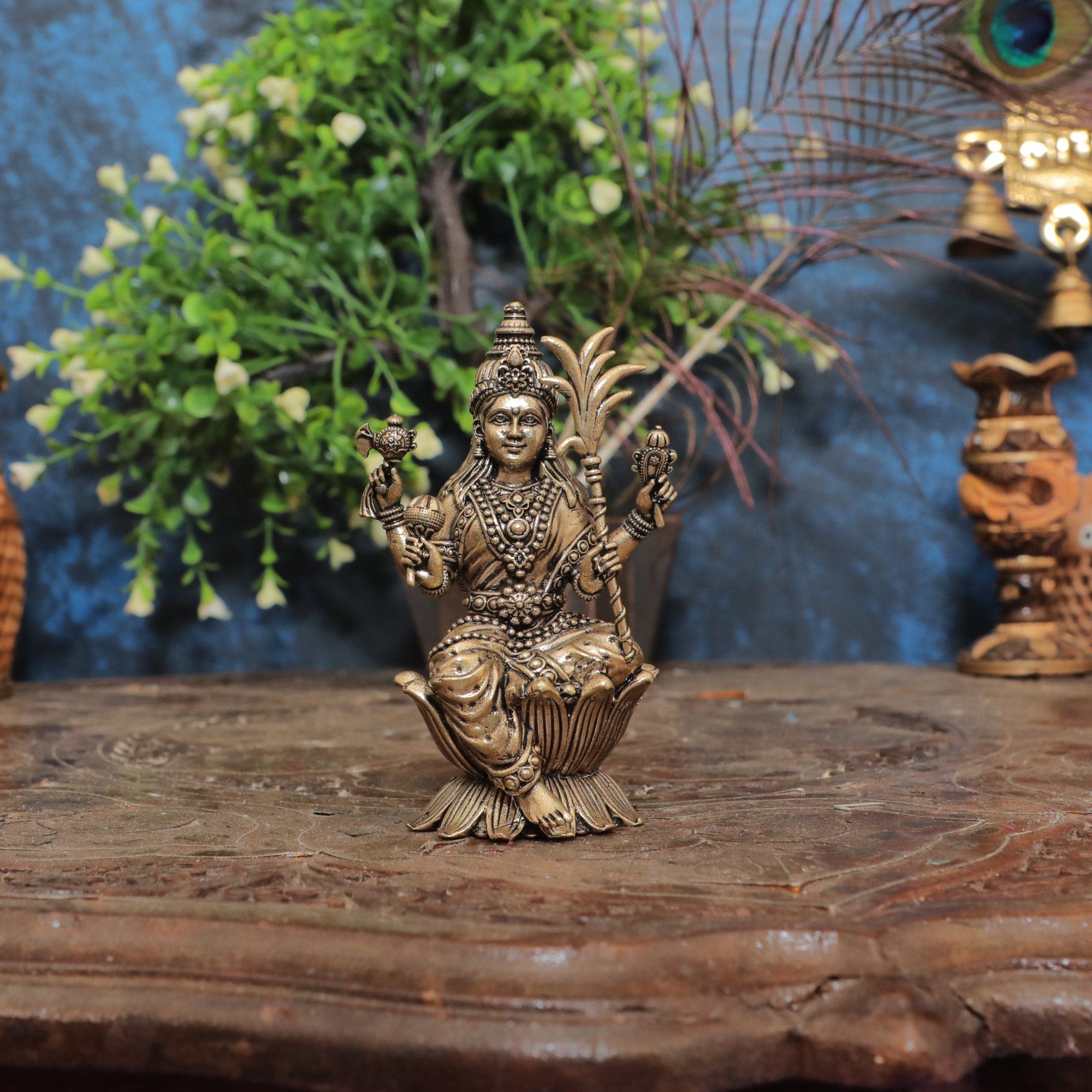Intricate Handcrafted Design – Expertly crafted brass idol with fine detailing showcasing traditional Indian artistry.