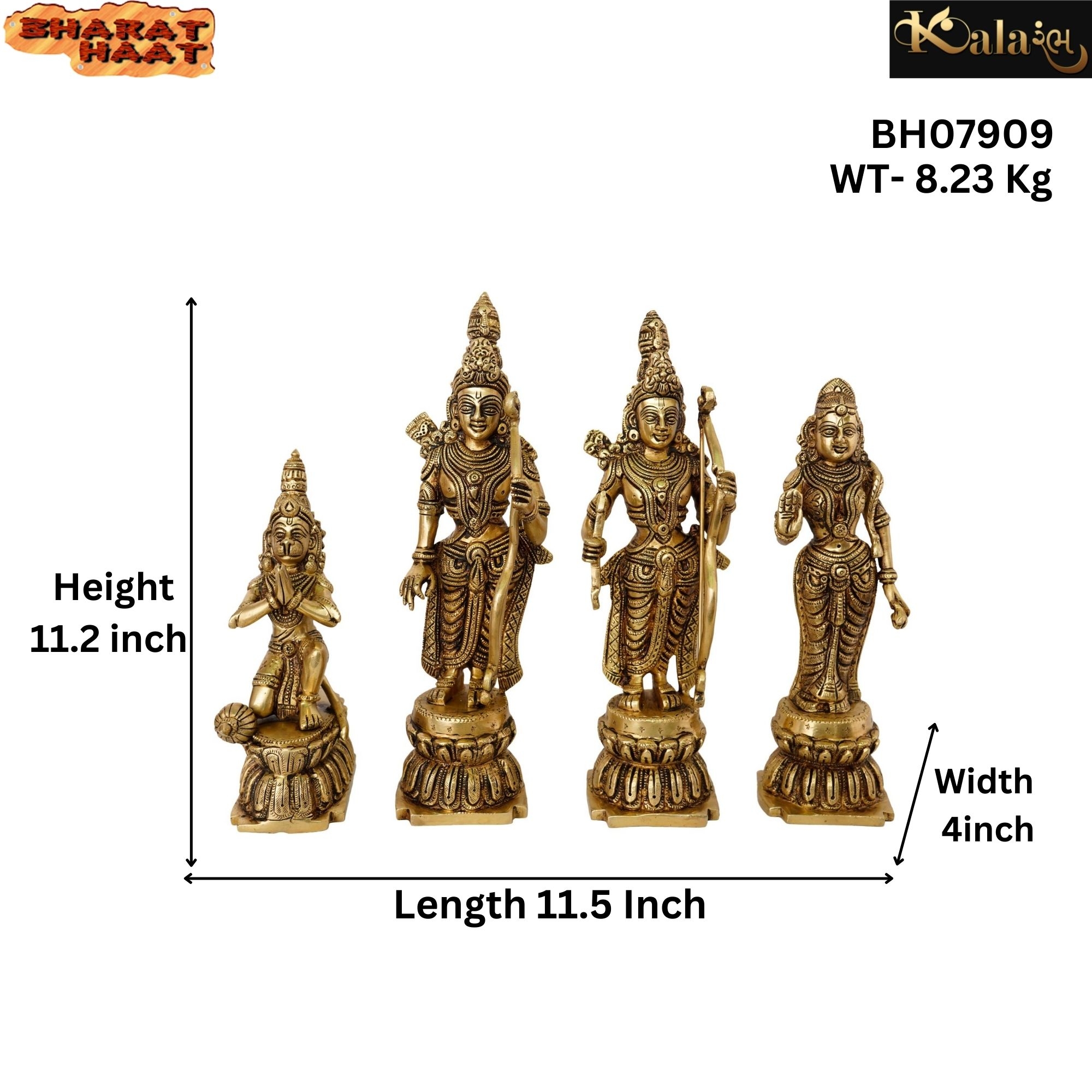 Beautiful handcrafted Brass Ram Darbar showcasing Ram, Sita, Lakshman, and Hanuman. Heavy, detailed, and perfect for home temple or spiritual decor.