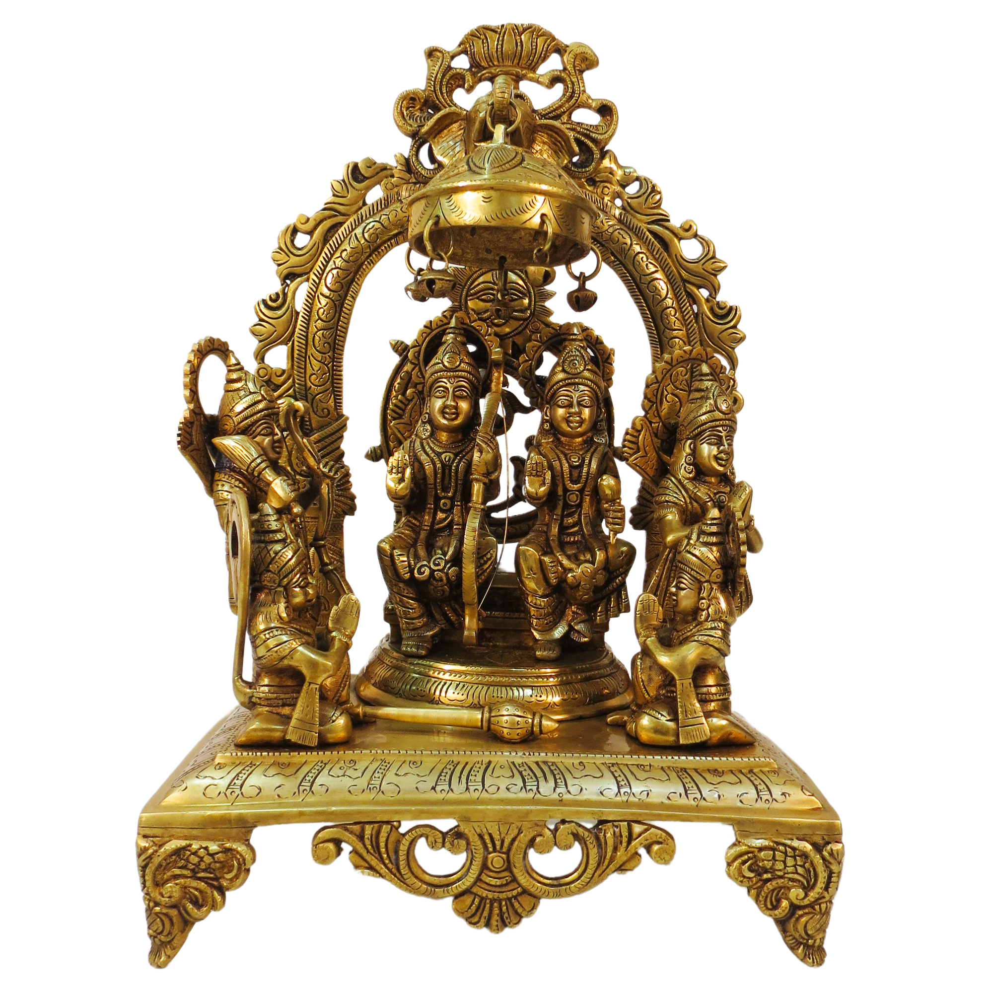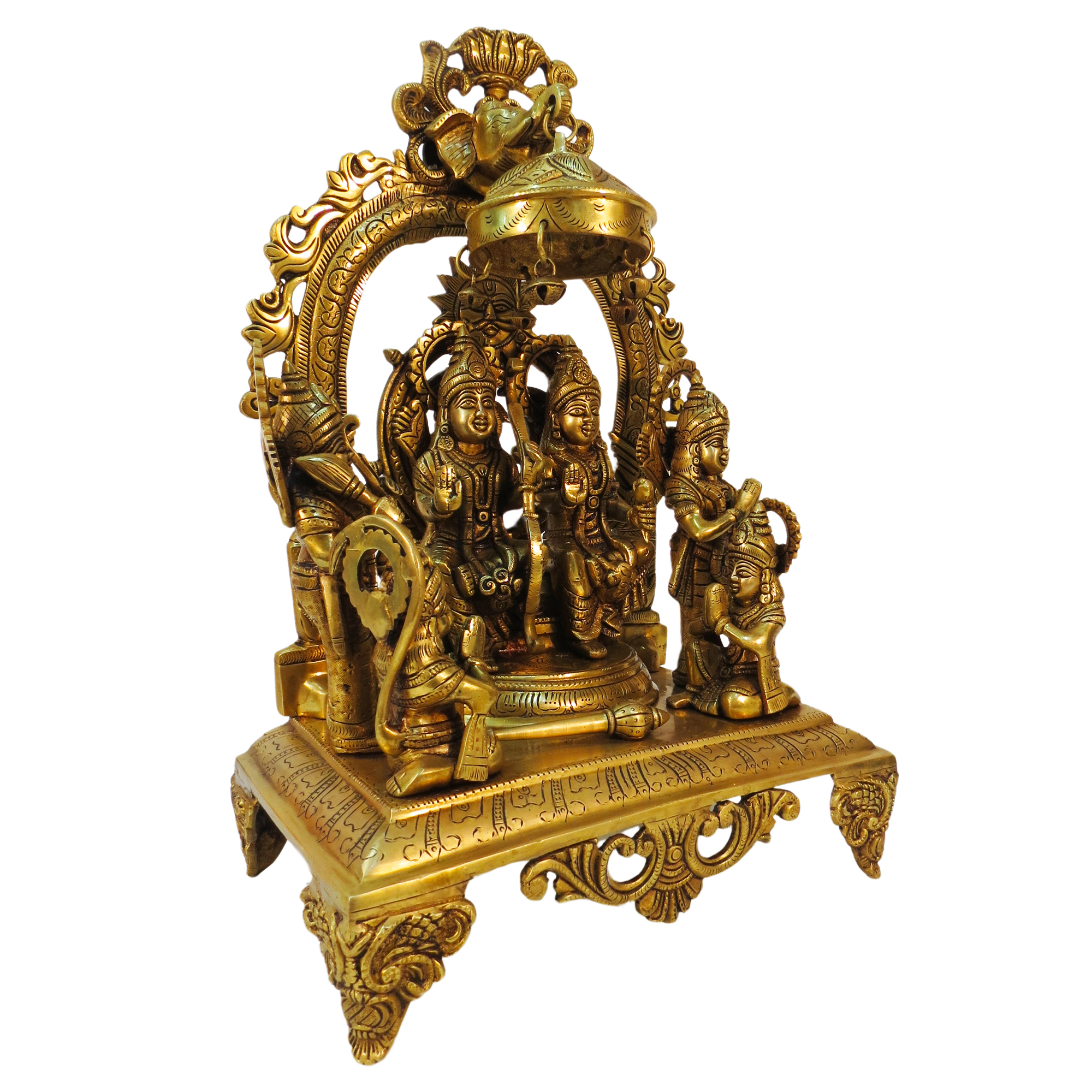 Elevate your spiritual space with this Handcrafted Brass Ram Darbar Statue, a stunning representation of the revered Hindu deities Lord Ram, Sita, Lakshman, and Hanuman. Expertly handcrafted by skilled artisans, this idol is made from premium-quality solid brass, ensuring durability, elegance, and a long-lasting shine.