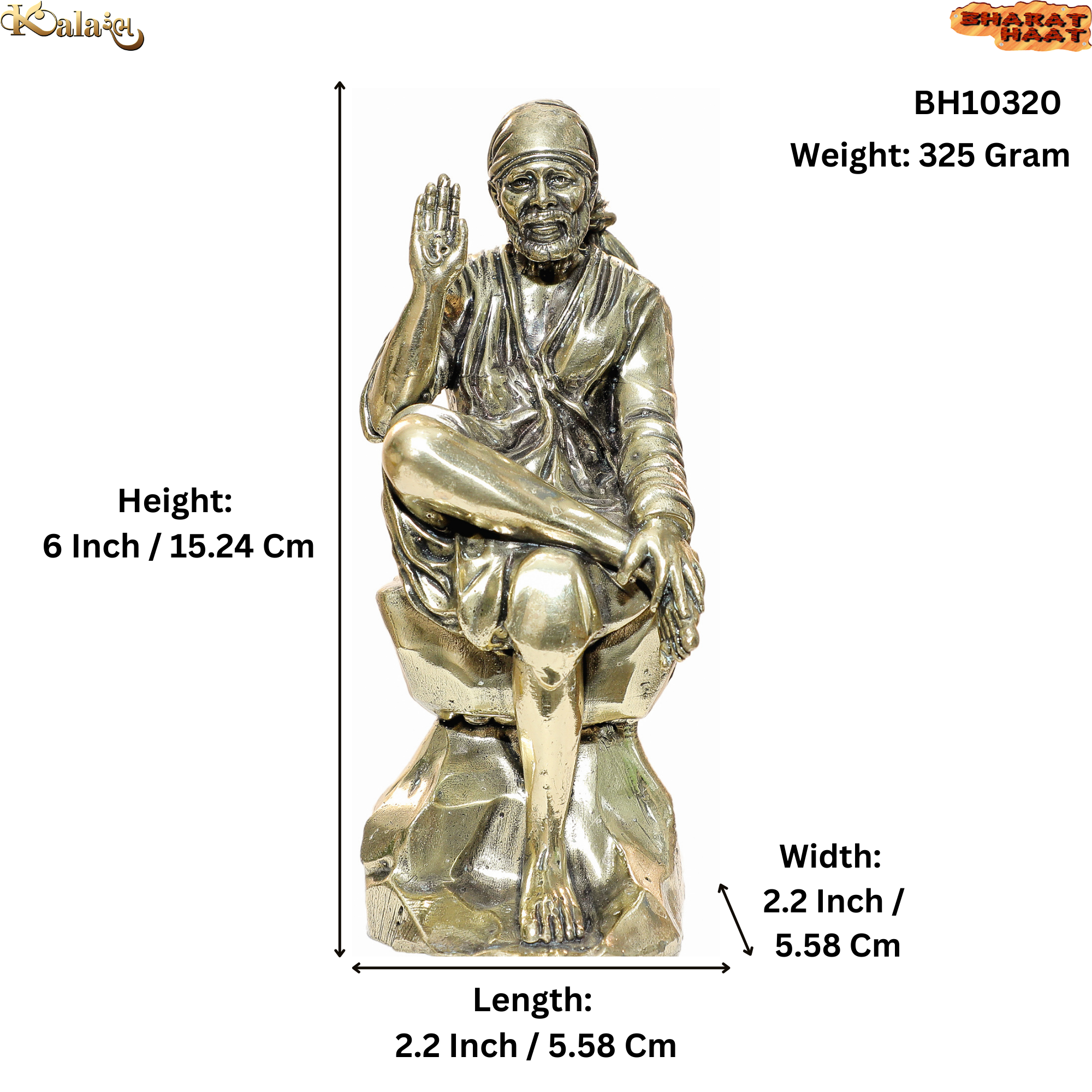Brass Sai Baba 6 Inch KBH10320